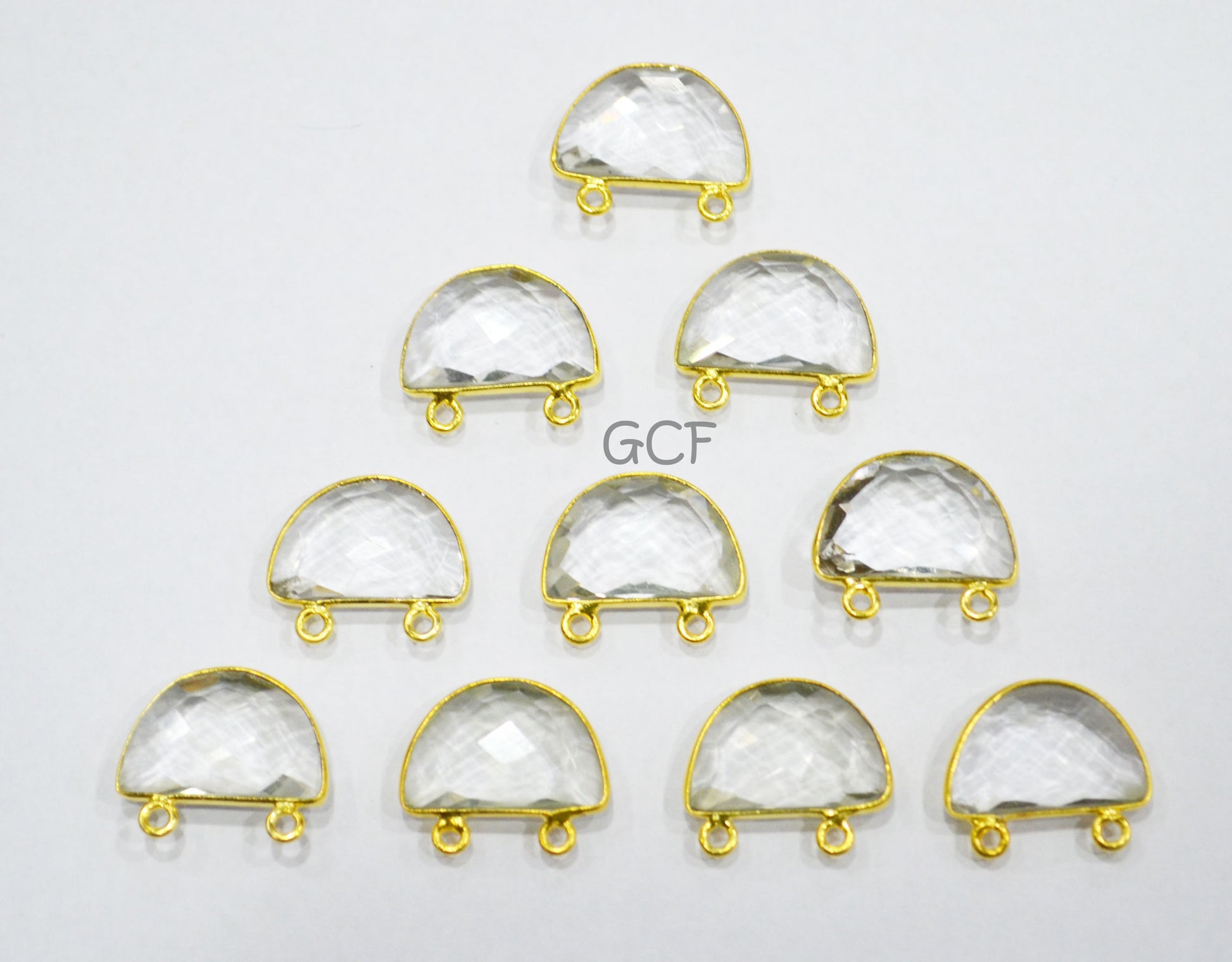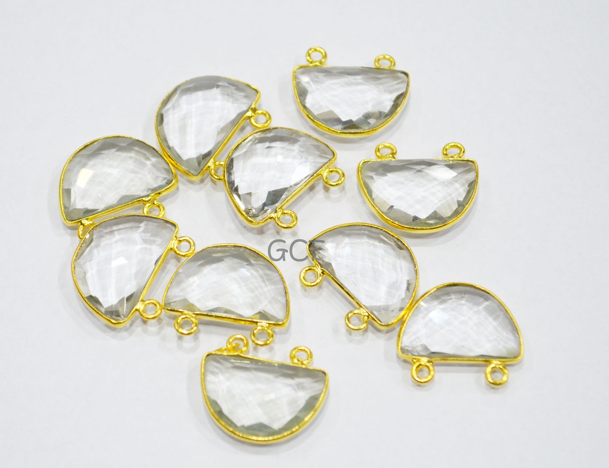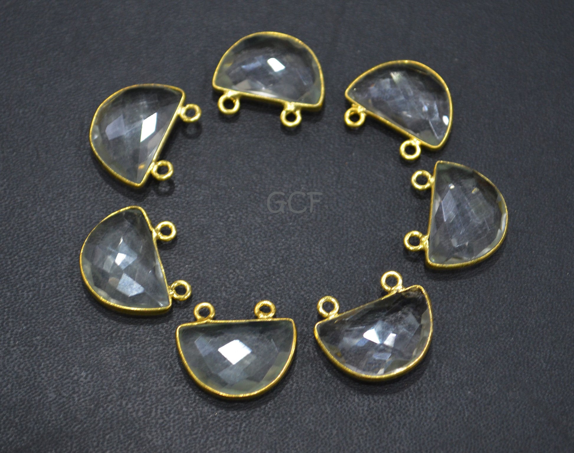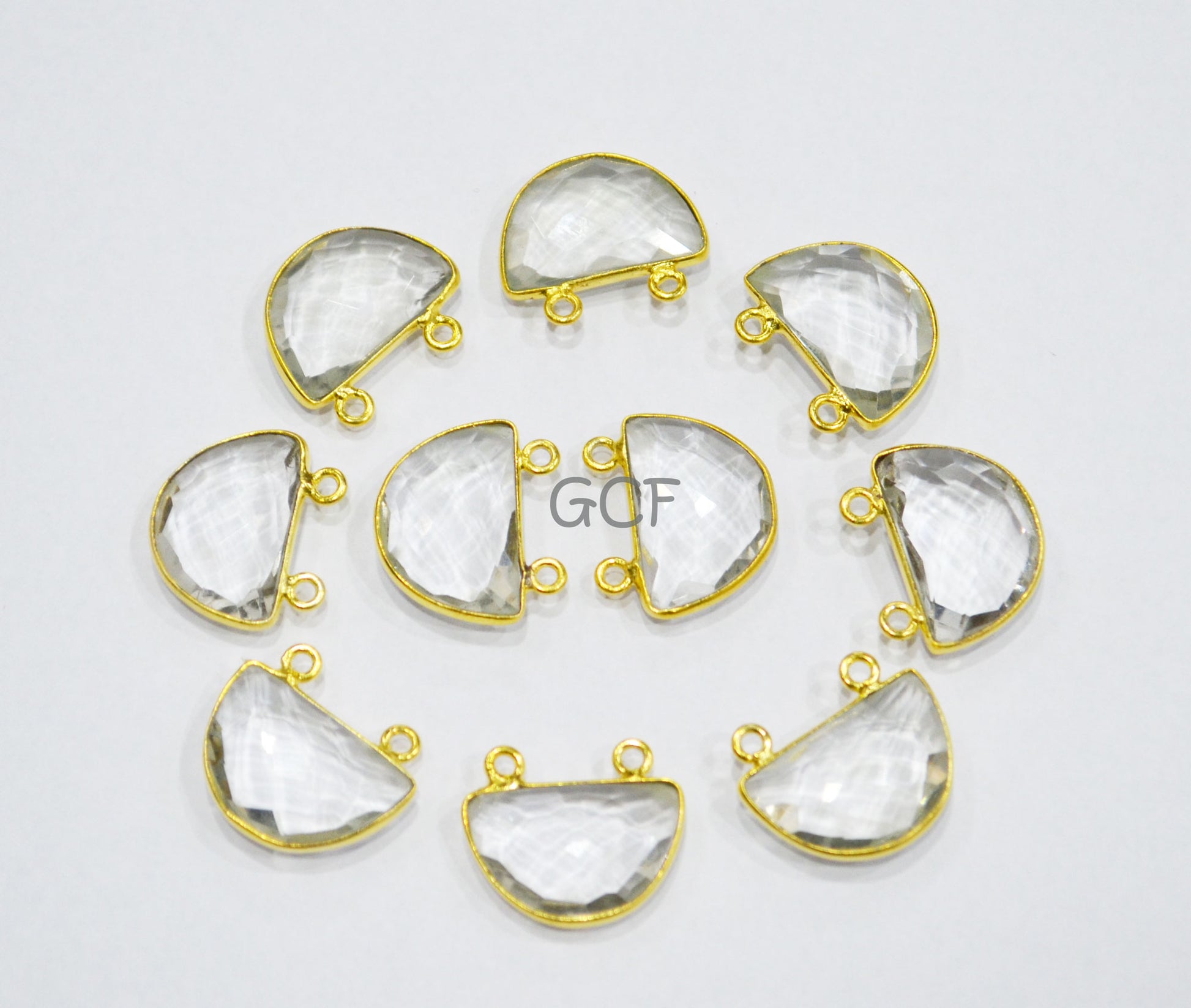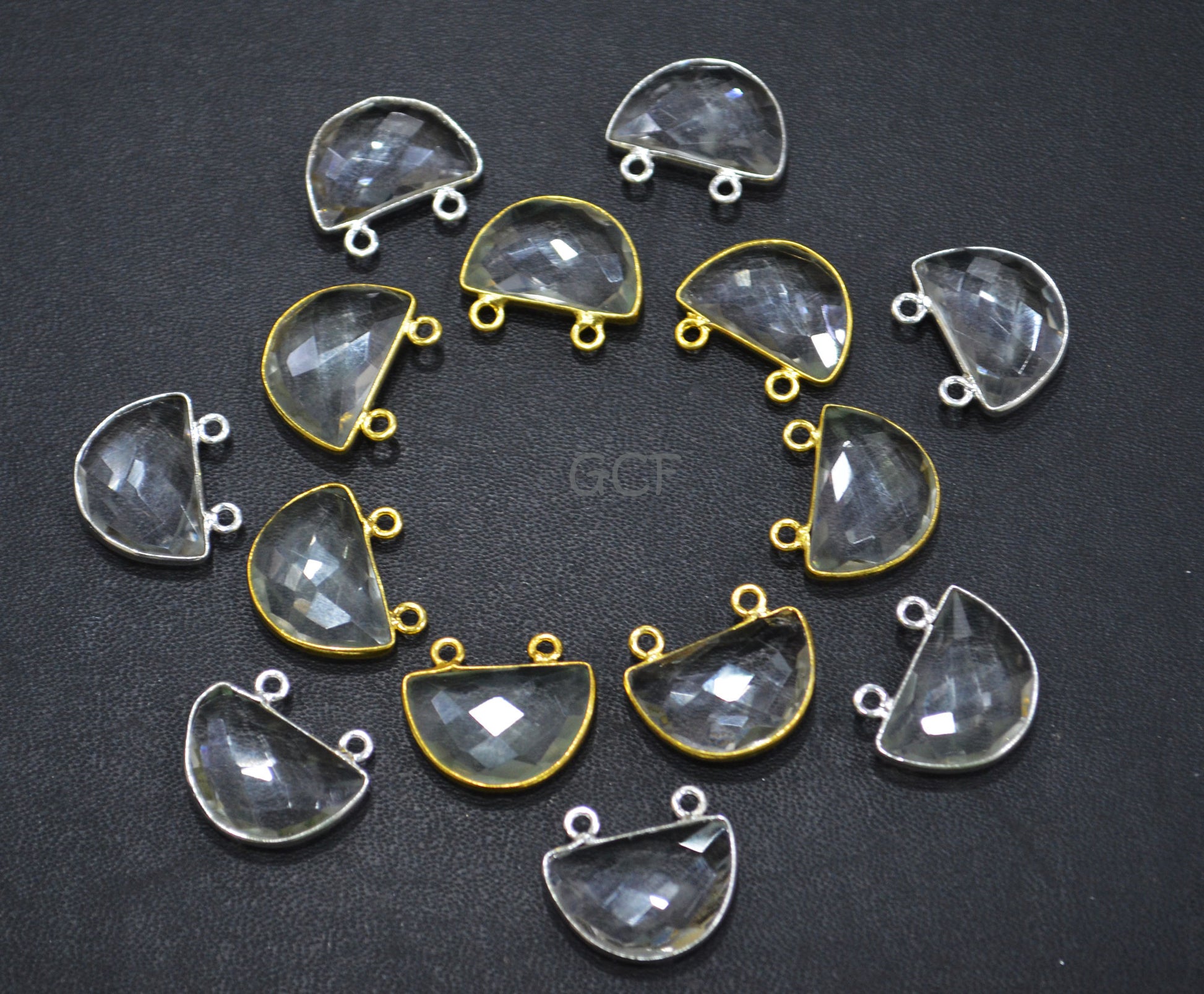Crystal Hydro Quartz Faceted Half Moon Shape Connector ,Crystal Hydro Quartz Double Bail Bezel Connector ,Sold By Piece , 13x19 mm , RB-7094