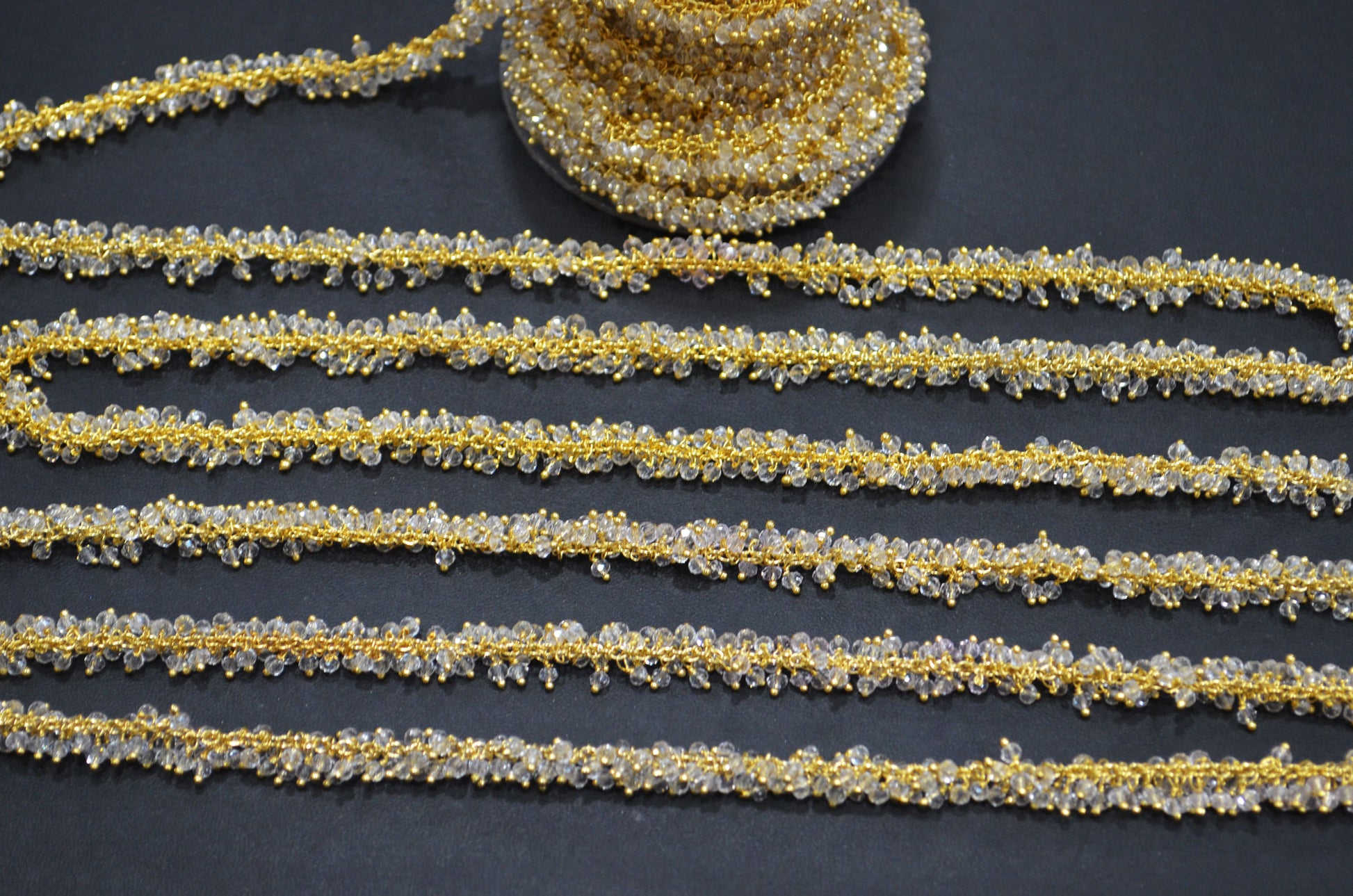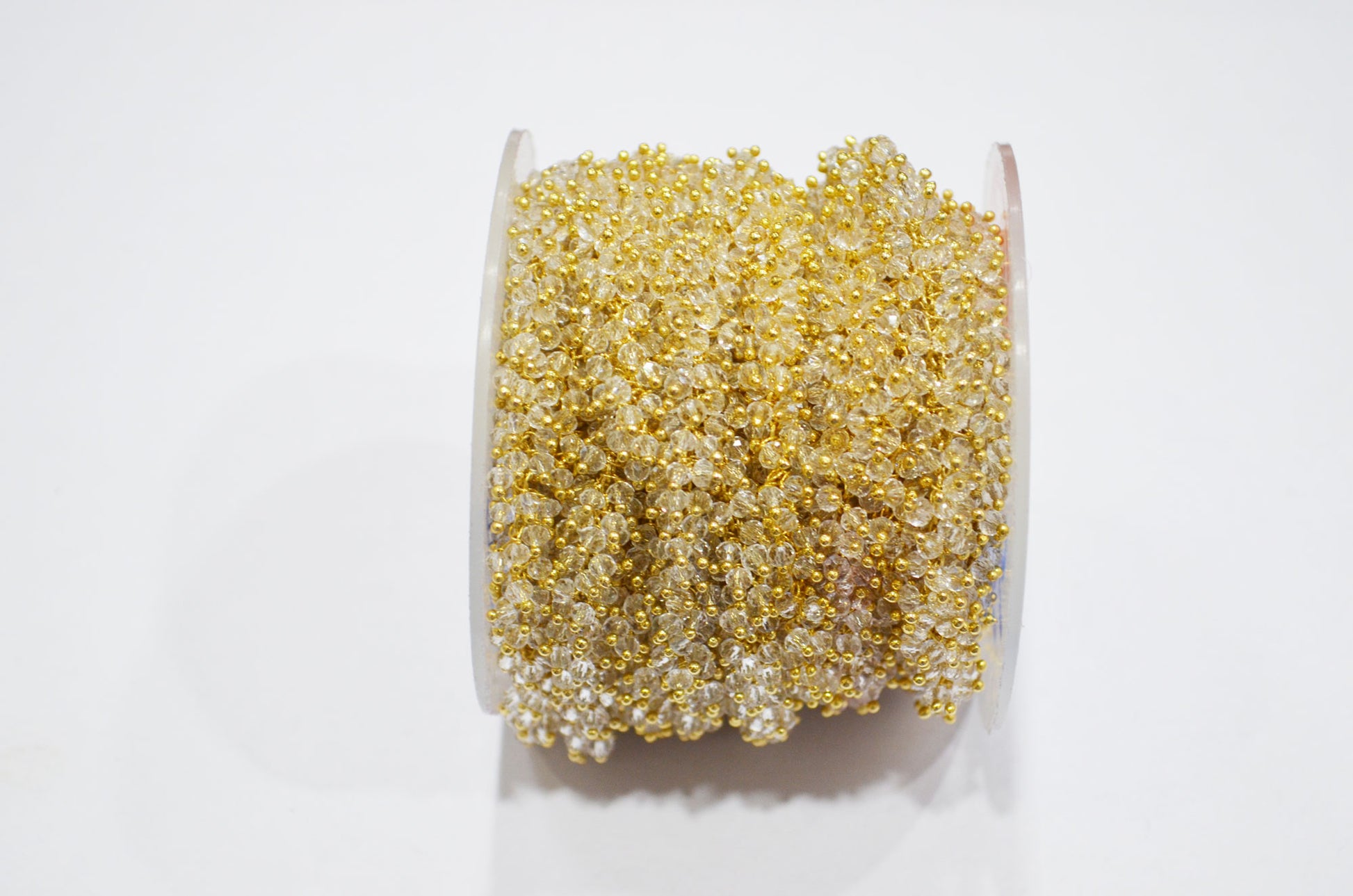 Crystal Hydro Quartz Faceted Rondelle Shape Angoori Cluster Chain , Crystal Hydro Quartz Grape Chain , 2 mm , RB-5356