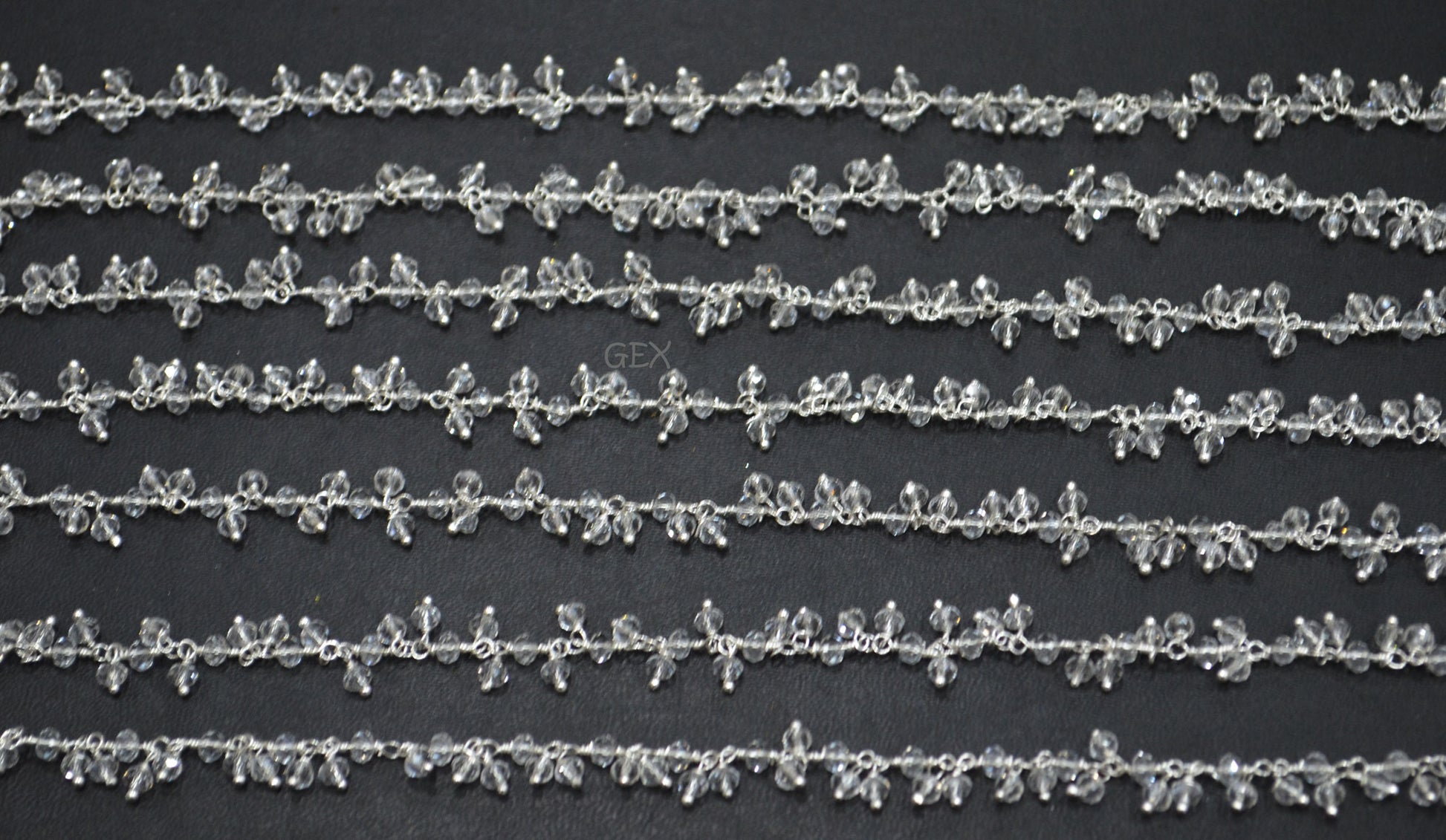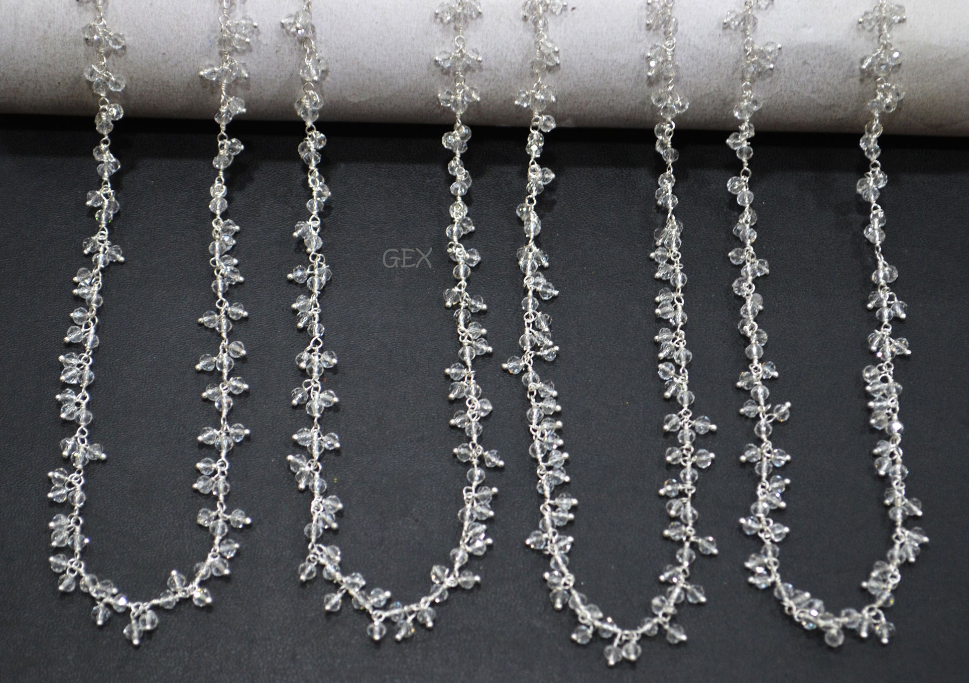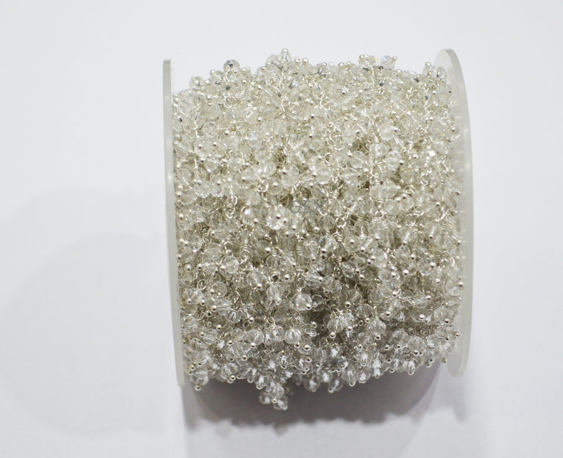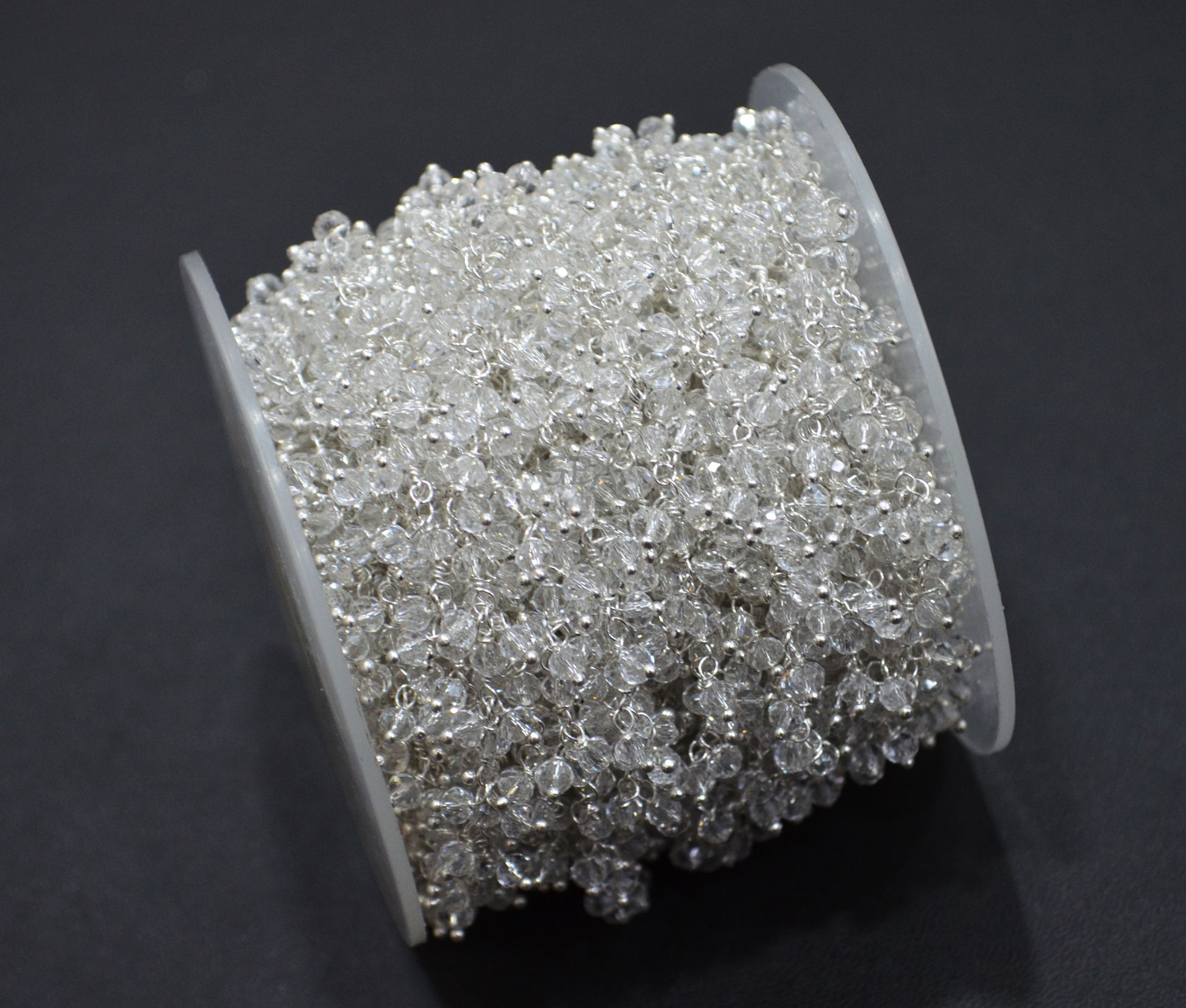 Crystal Hydro Quartz Faceted Rondelle Shape Dangling Chain , Crystal Hydro Quartz Grape Chain , 3 - 3.50 mm , RB-5395A