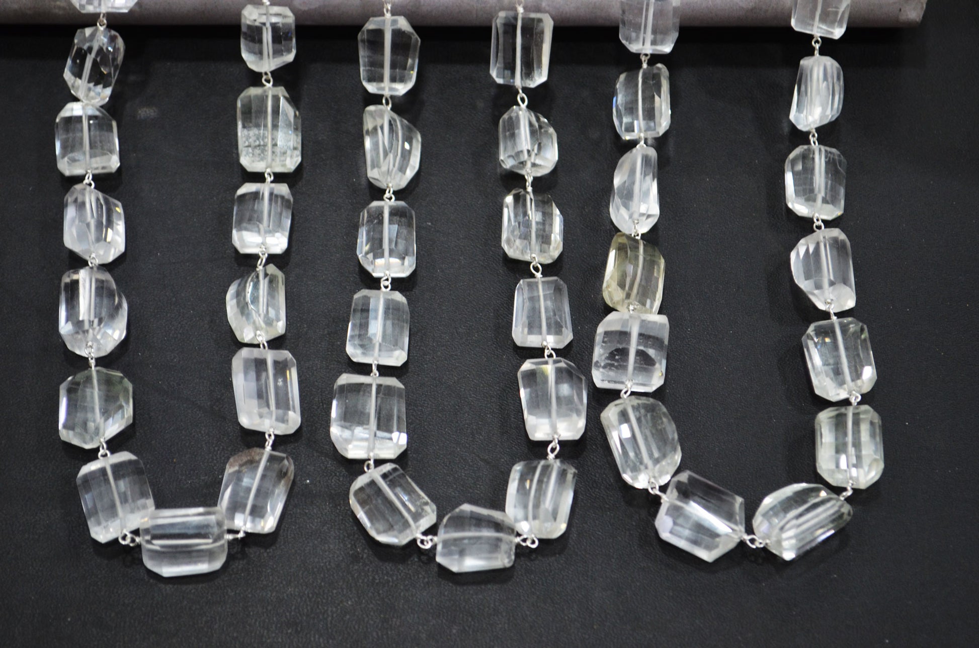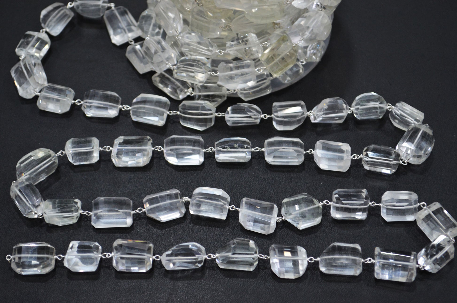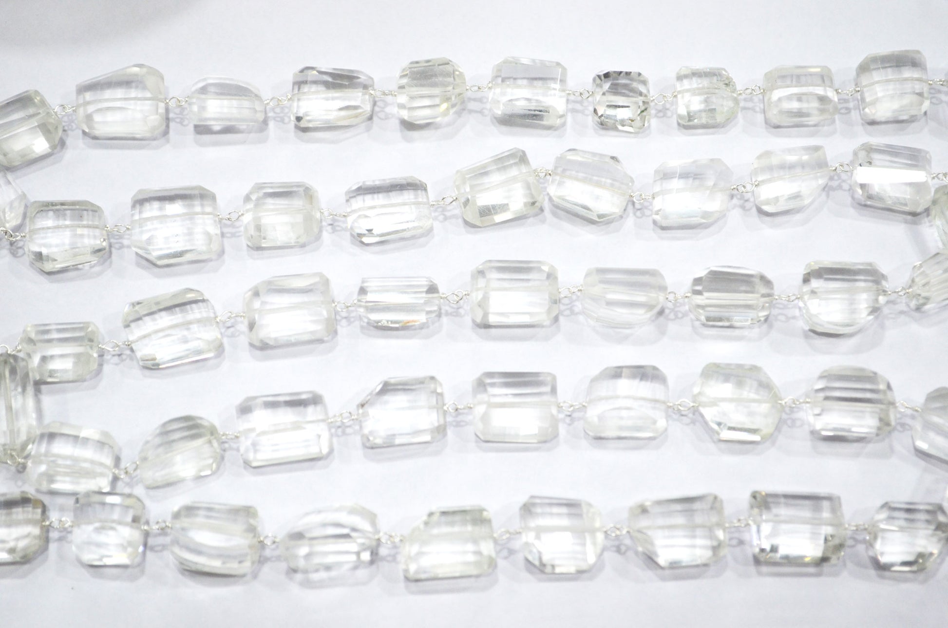 Crystal Laser Cut Nuggets Shape Rosary Beaded Chain , Crystal Tumble Shape Wire Wrapped Chain , 14 - 18 mm , RB-5956