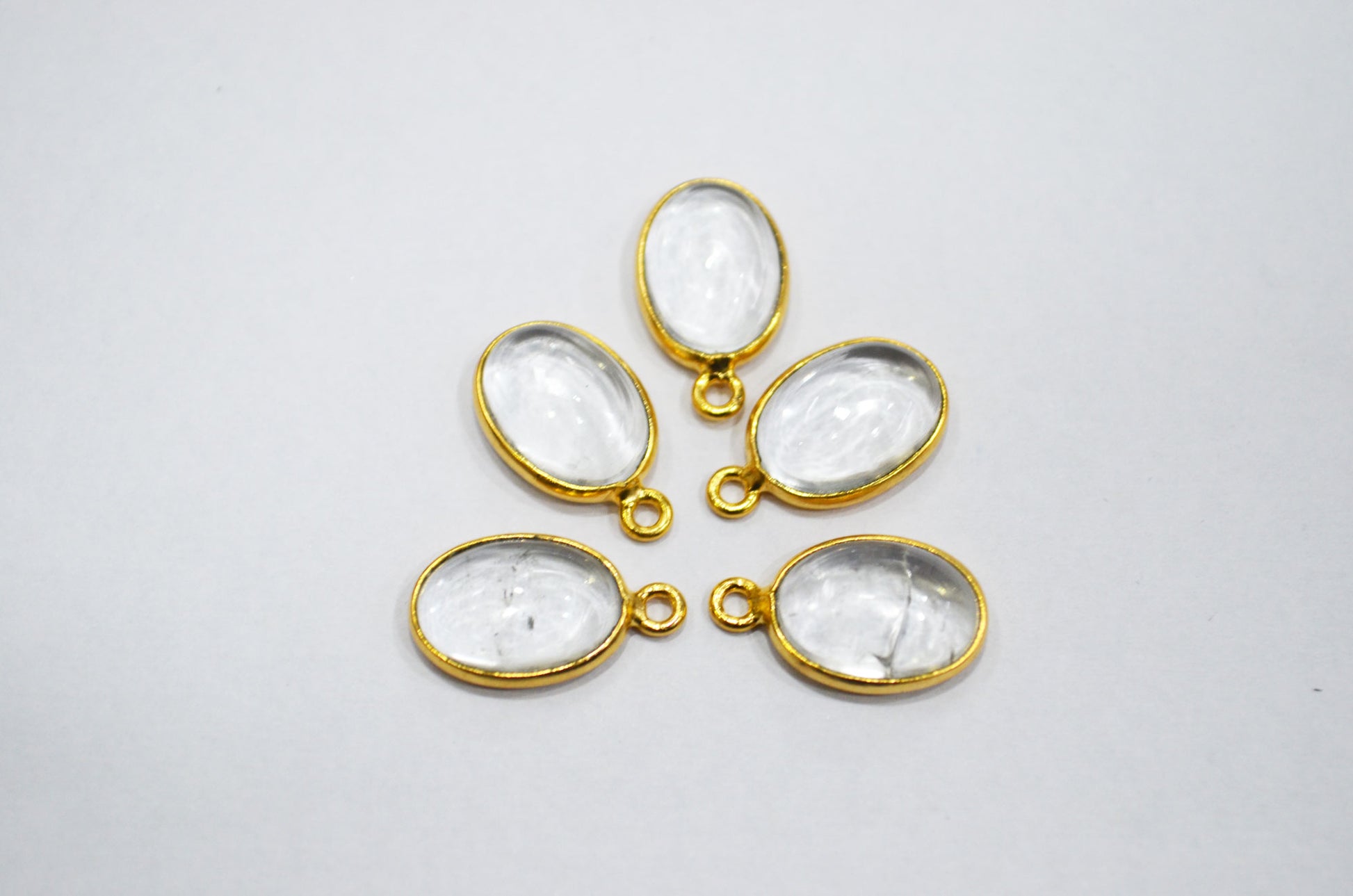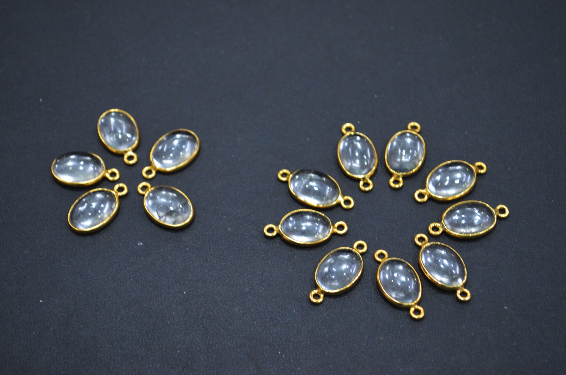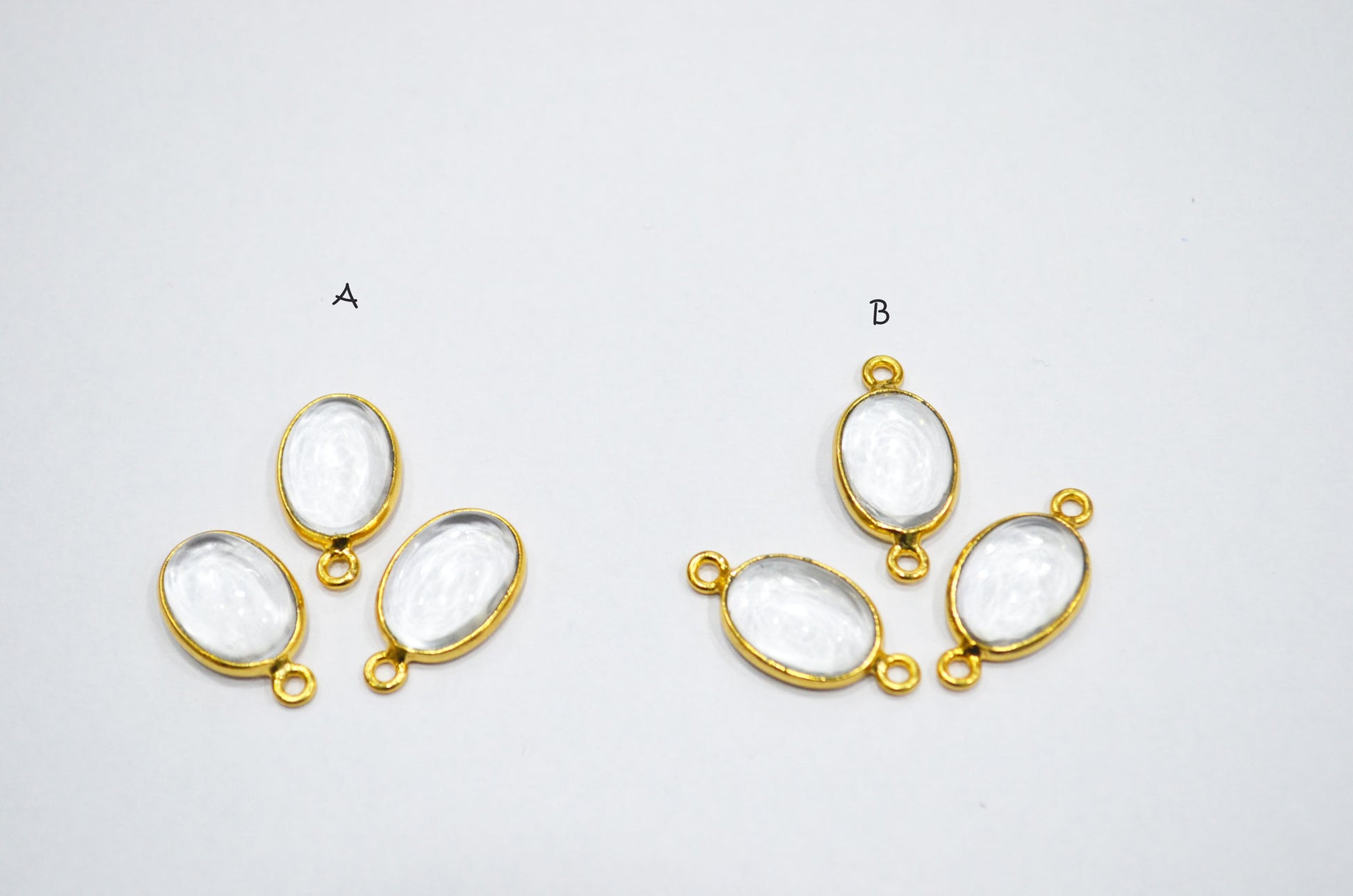 Crystal Smooth Oval Shape Single And Double Bail Connector , Crystal Cabochon Bezel Connector , Sold By Piece , 10x14 mm , RB-6238