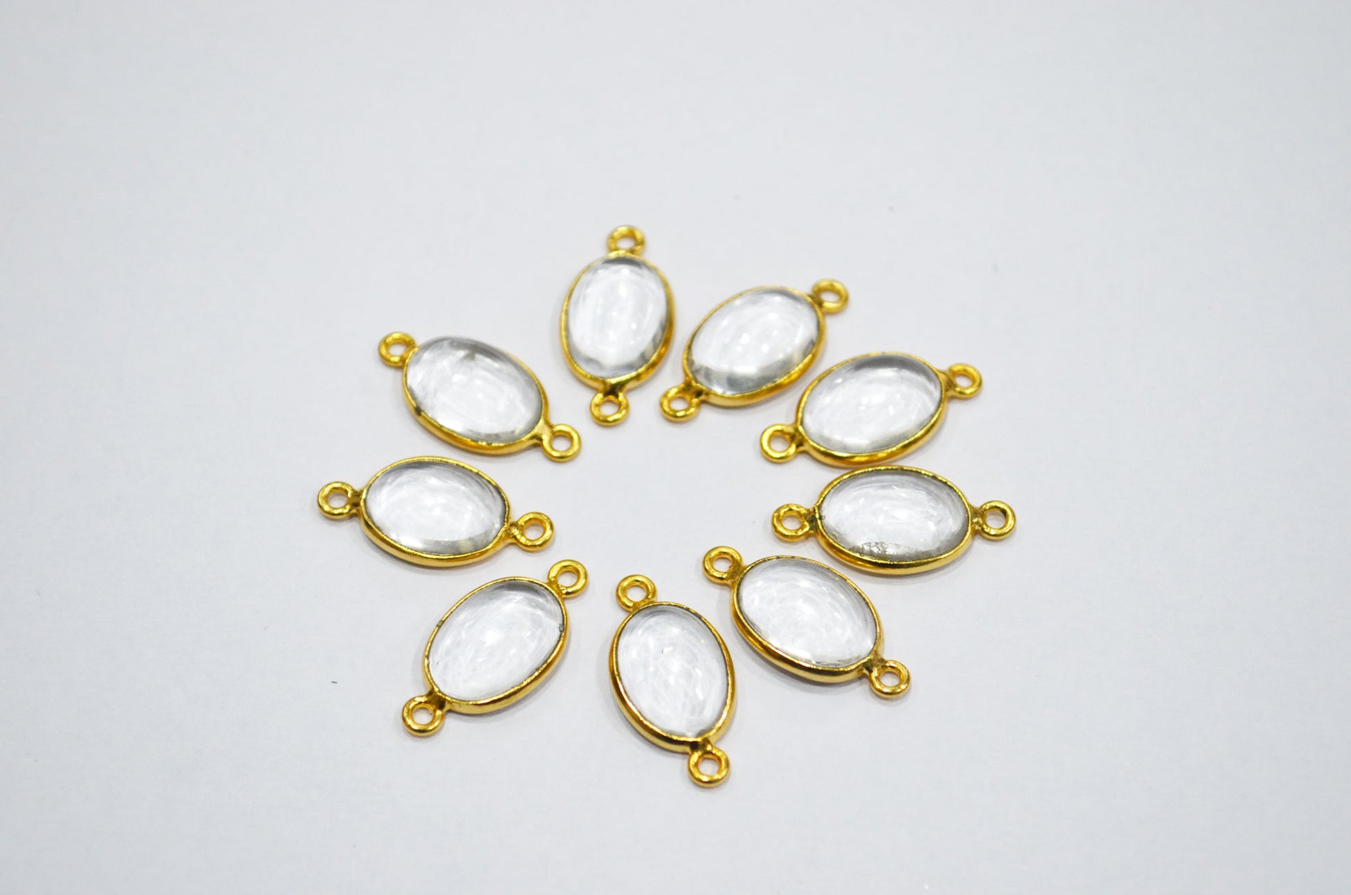 Crystal Smooth Oval Shape Single And Double Bail Connector , Sold By Piece , 10x14 mm , RB-6238