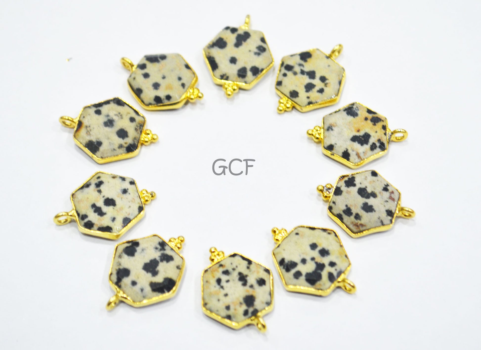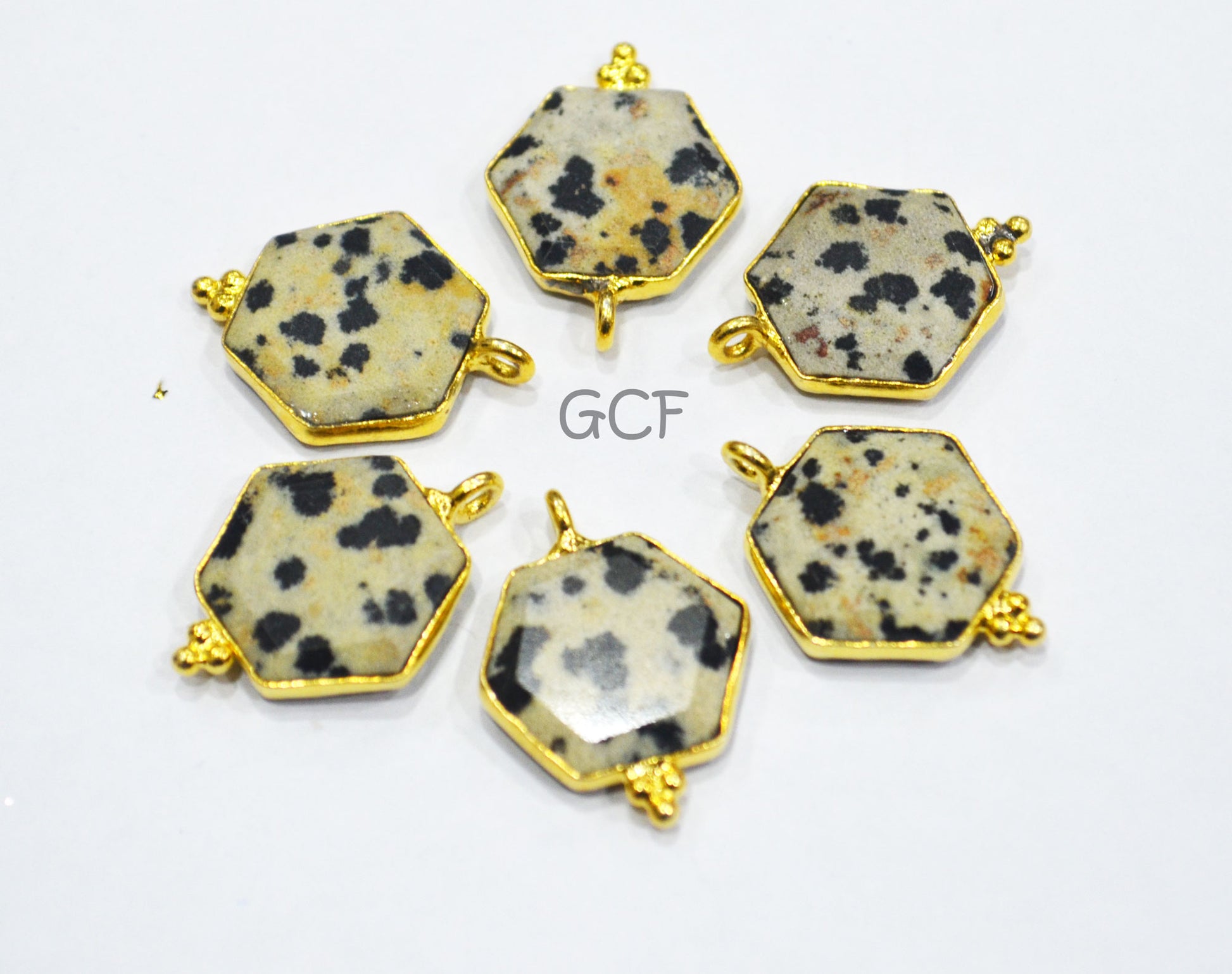 Dalmatian Faceted Hexagon Shape Connector , Dalmatian Hexagon Shape Single Bail Bezel Connector , Sold By Piece , 14 mm , RB-6943