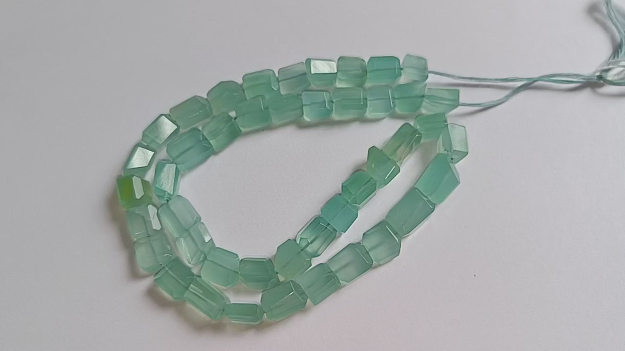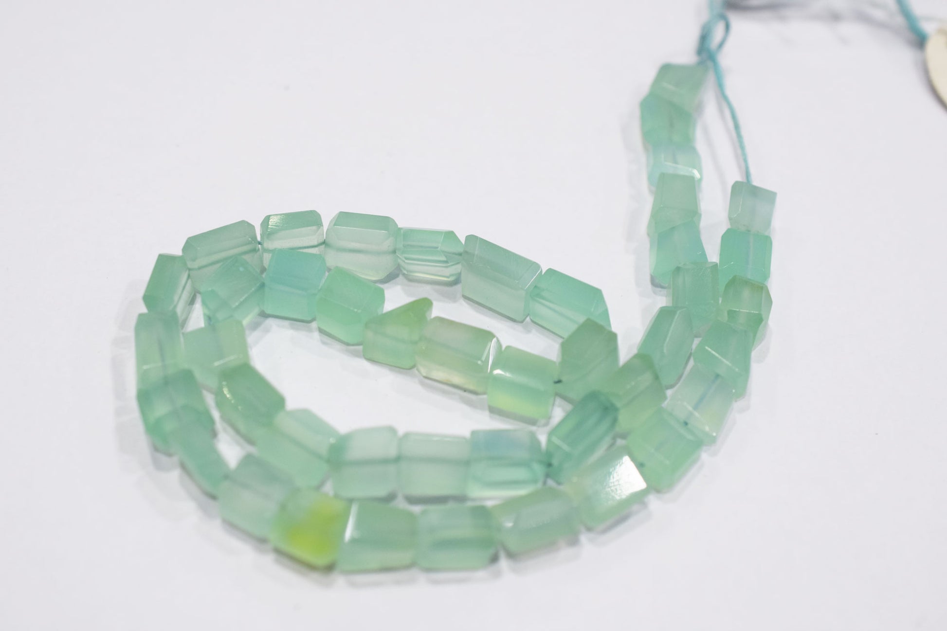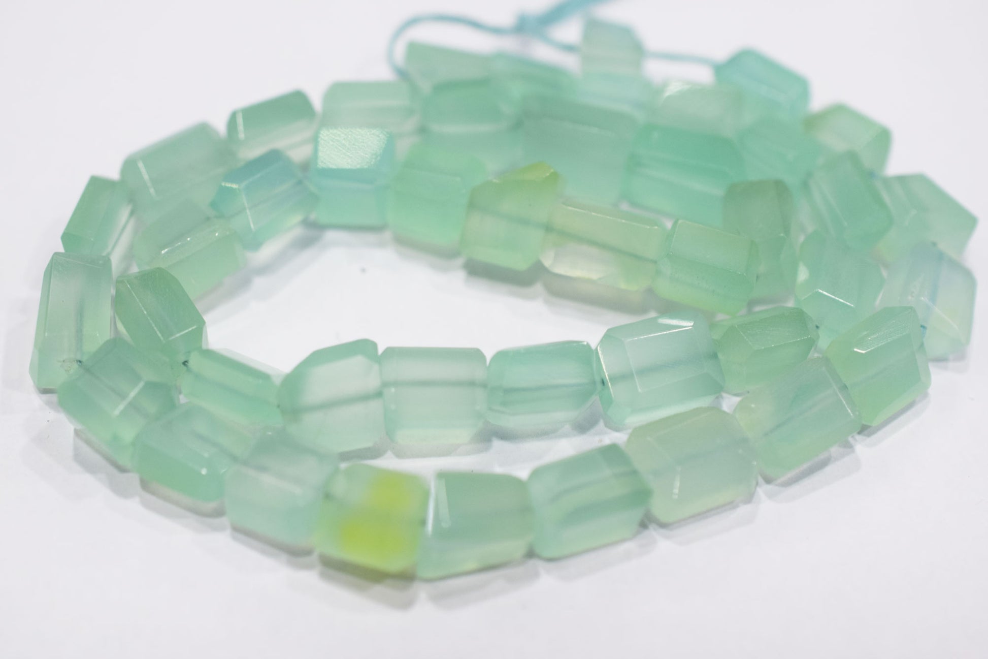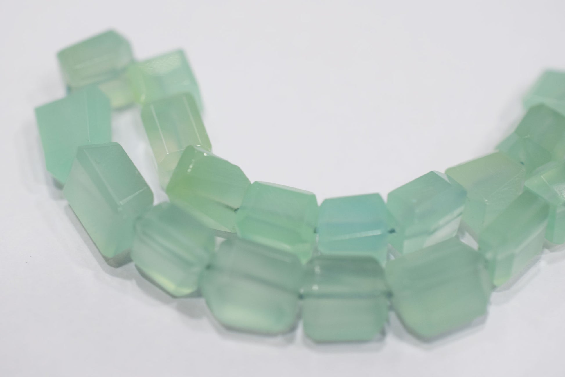 Aqua Chalcedony Step Cut Faceted Laser Nuggets Shape Beads , 8x8 - 9x12 mm , 16", 32097