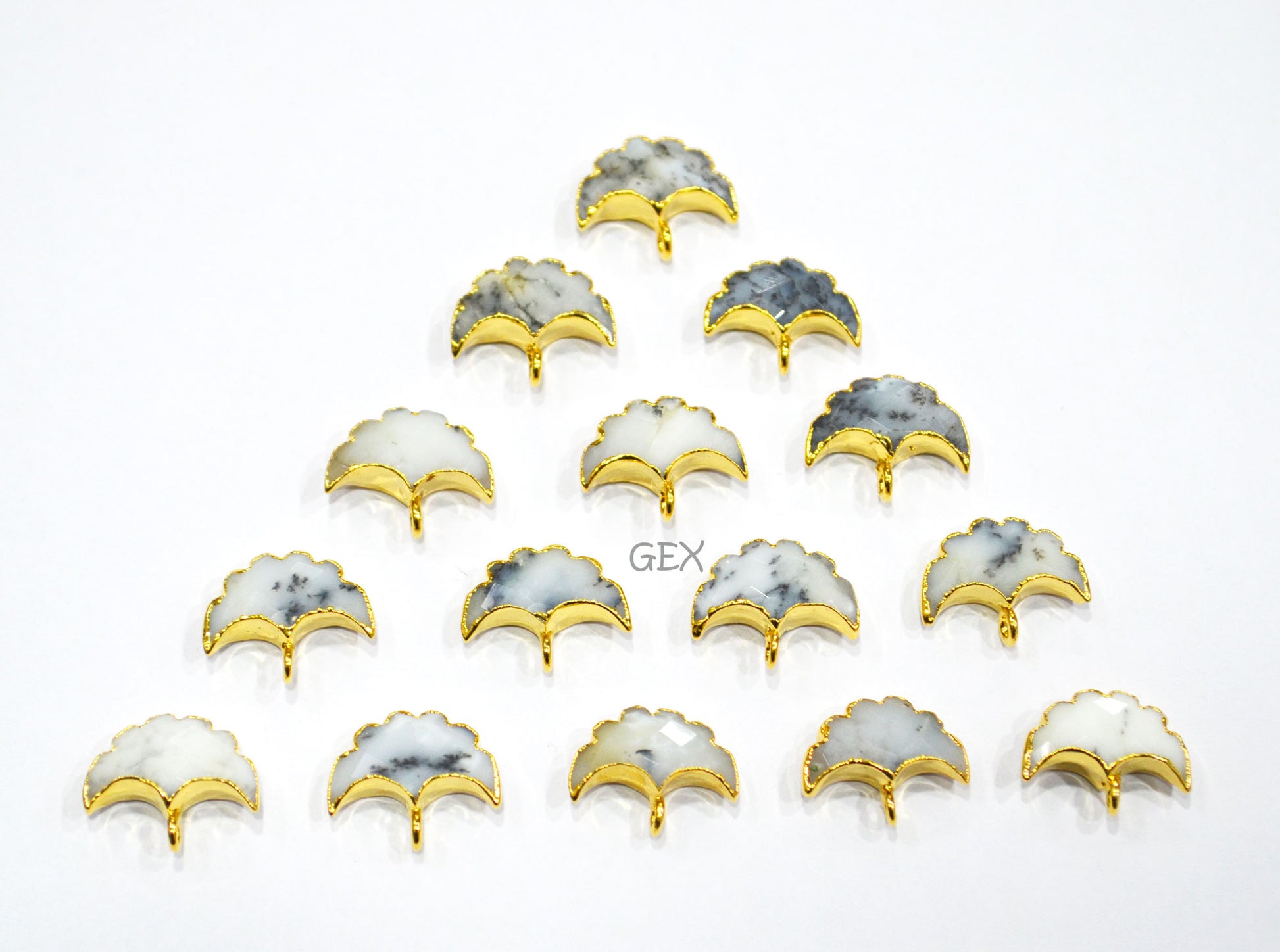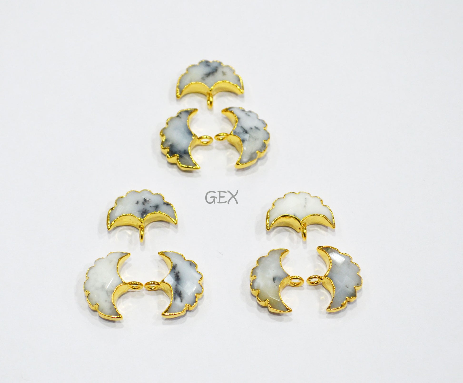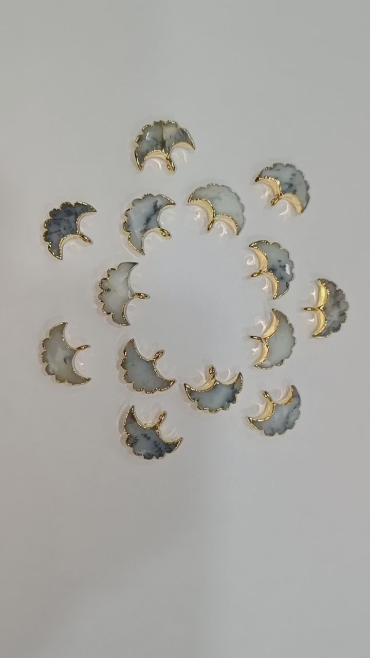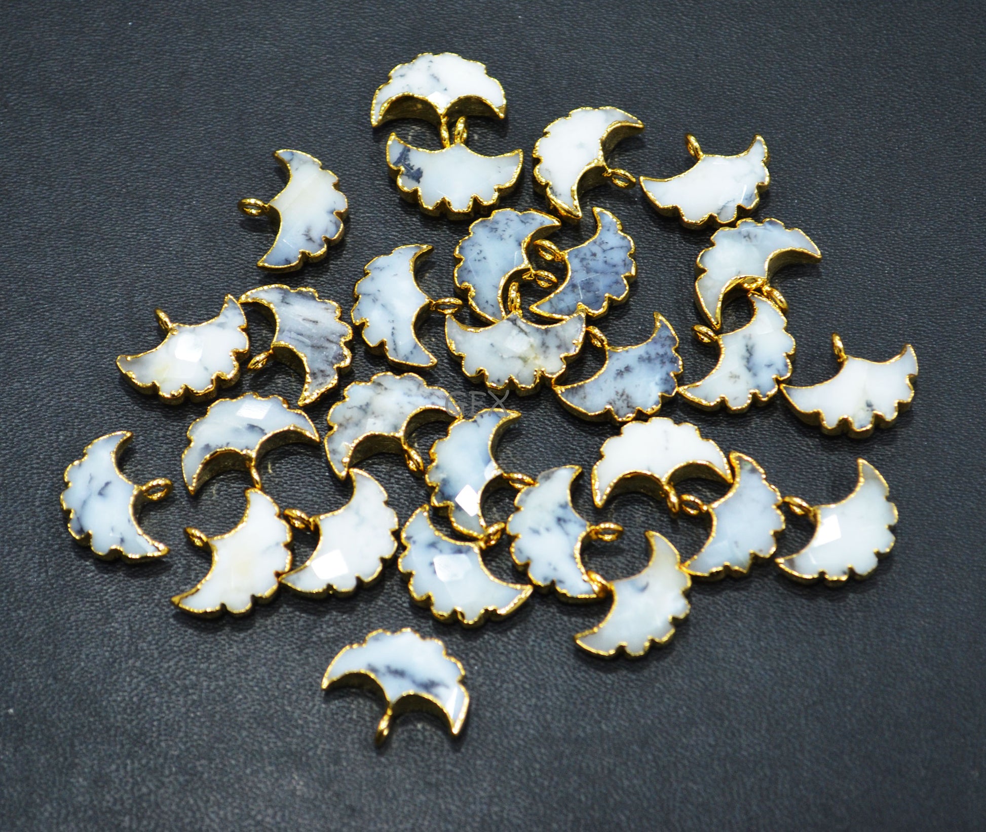 Dendrite Opal Electroplated Half Moon Shape Connector , Dendrite Opal Single Bail Faceted Connector Charm , Sold By Piece , 15 - 16 mm , 31929