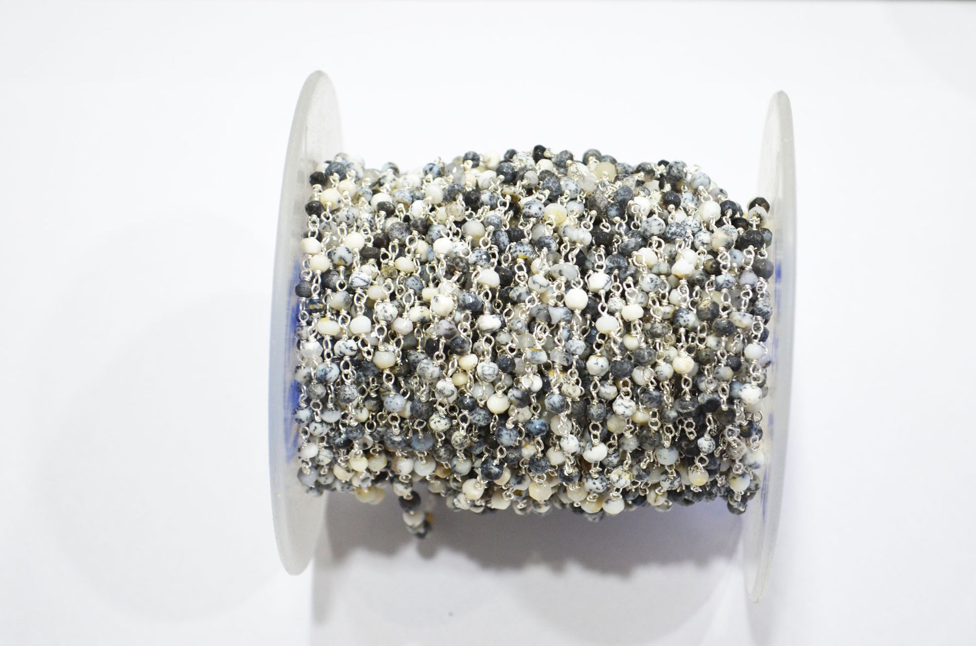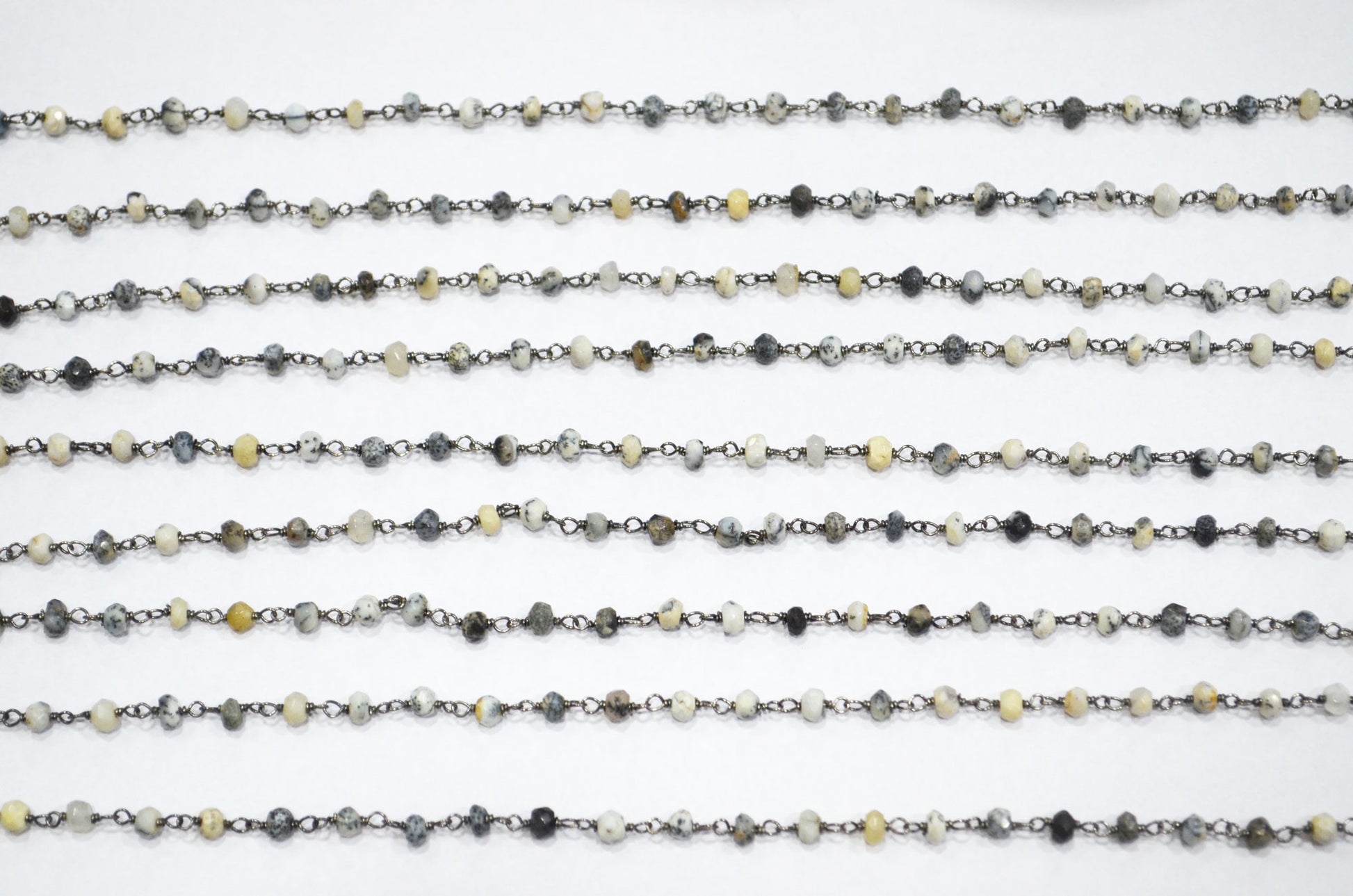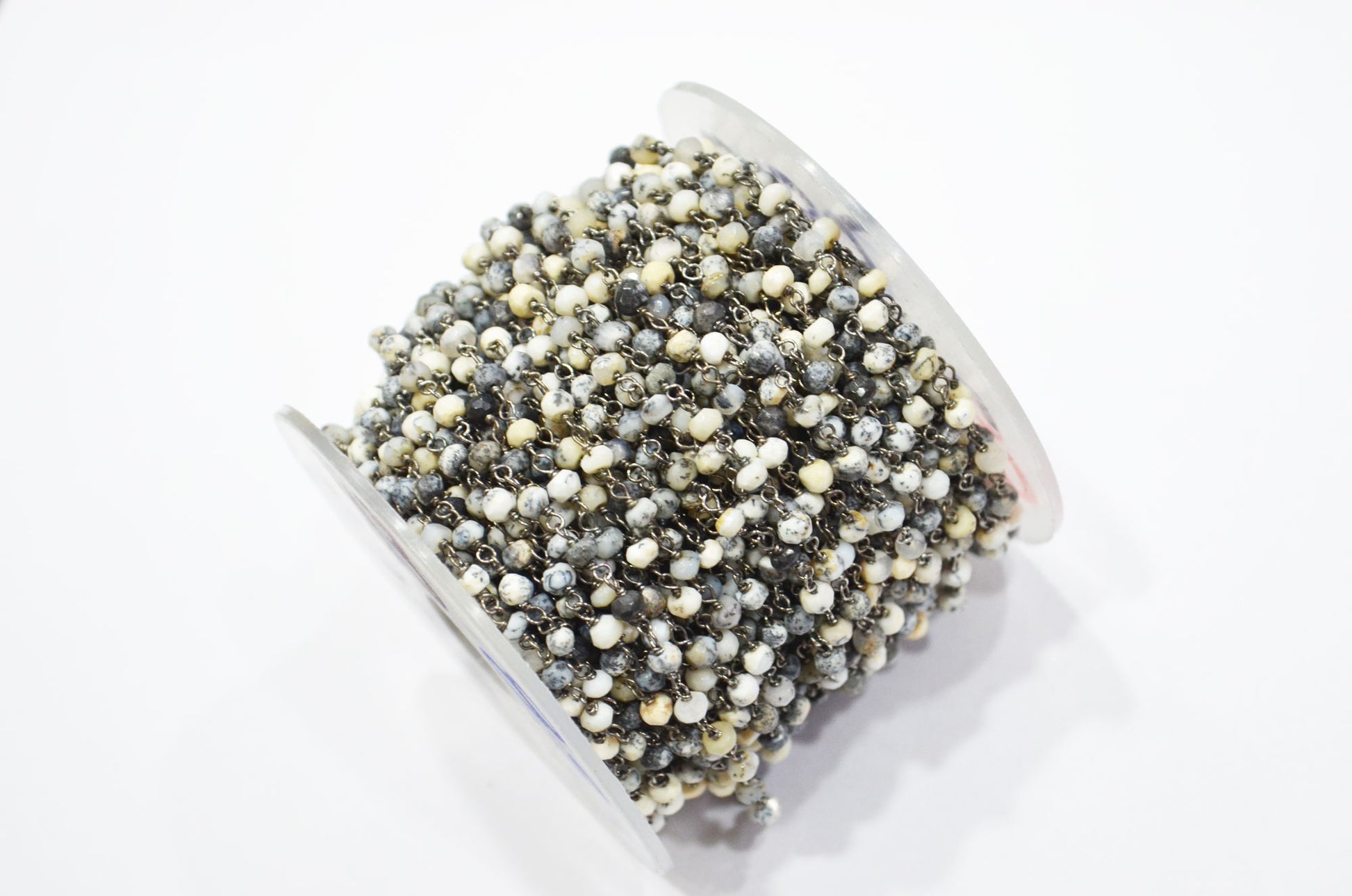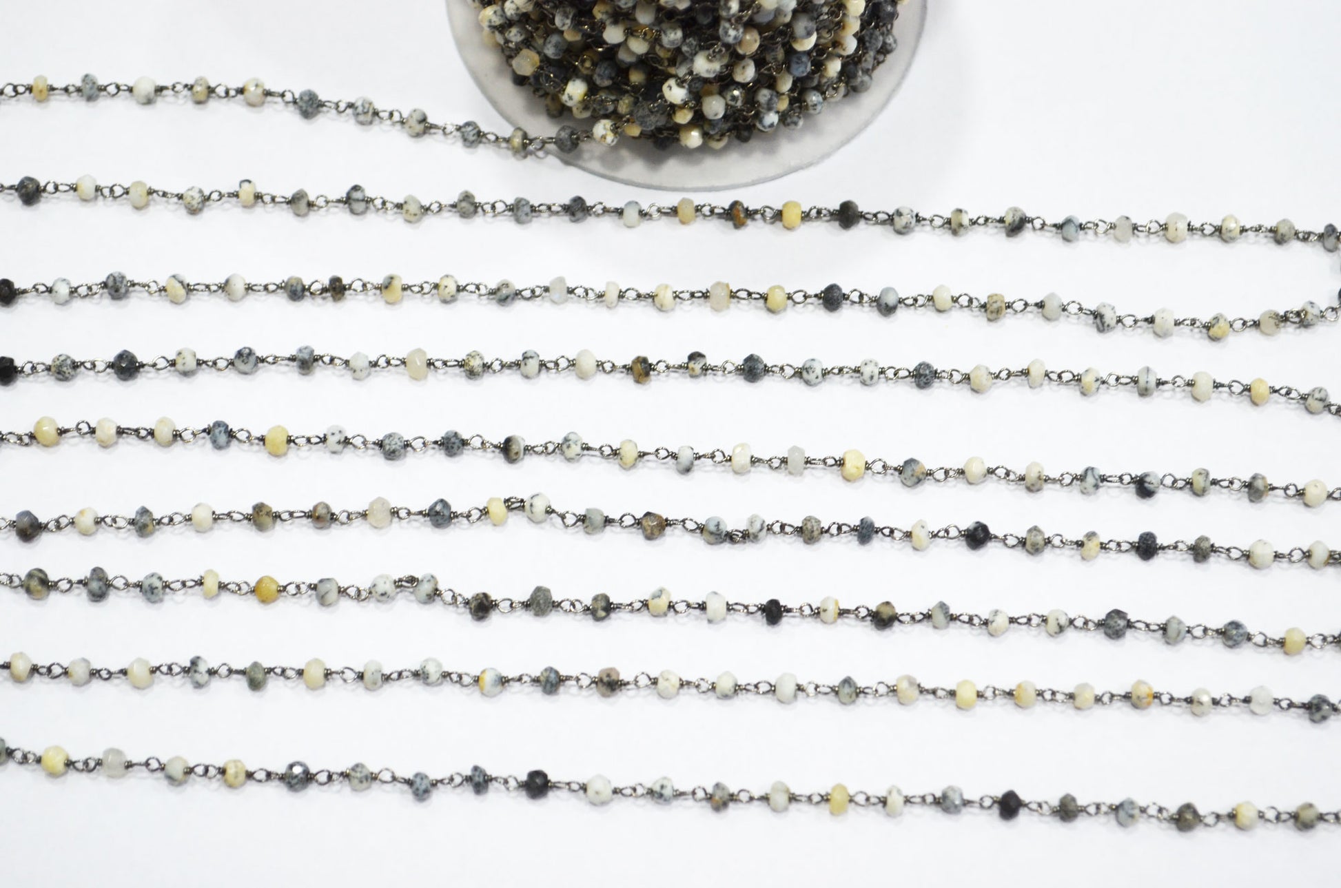 Dendrite Opal Faceted Rondelle Shape Rosary Beaded Chain , Dendrite Opal Wire Wrapped Chain , 3.50 - 4 mm , RB-5732