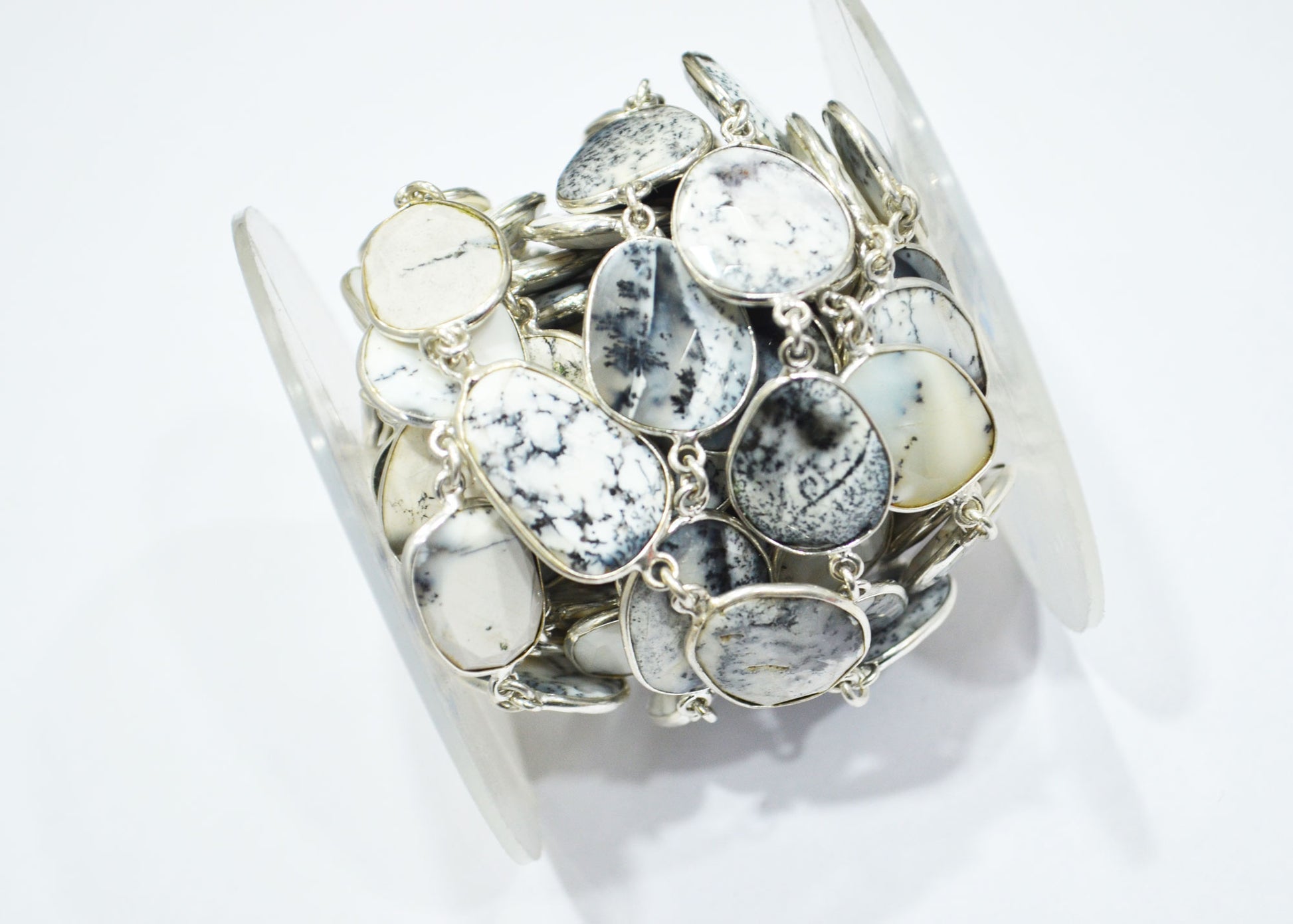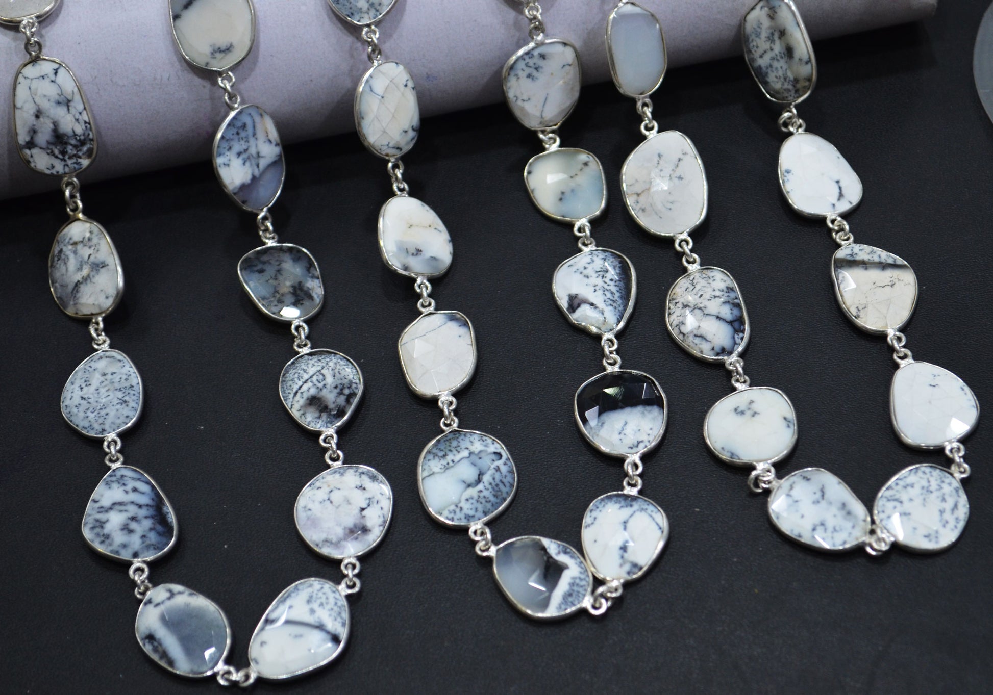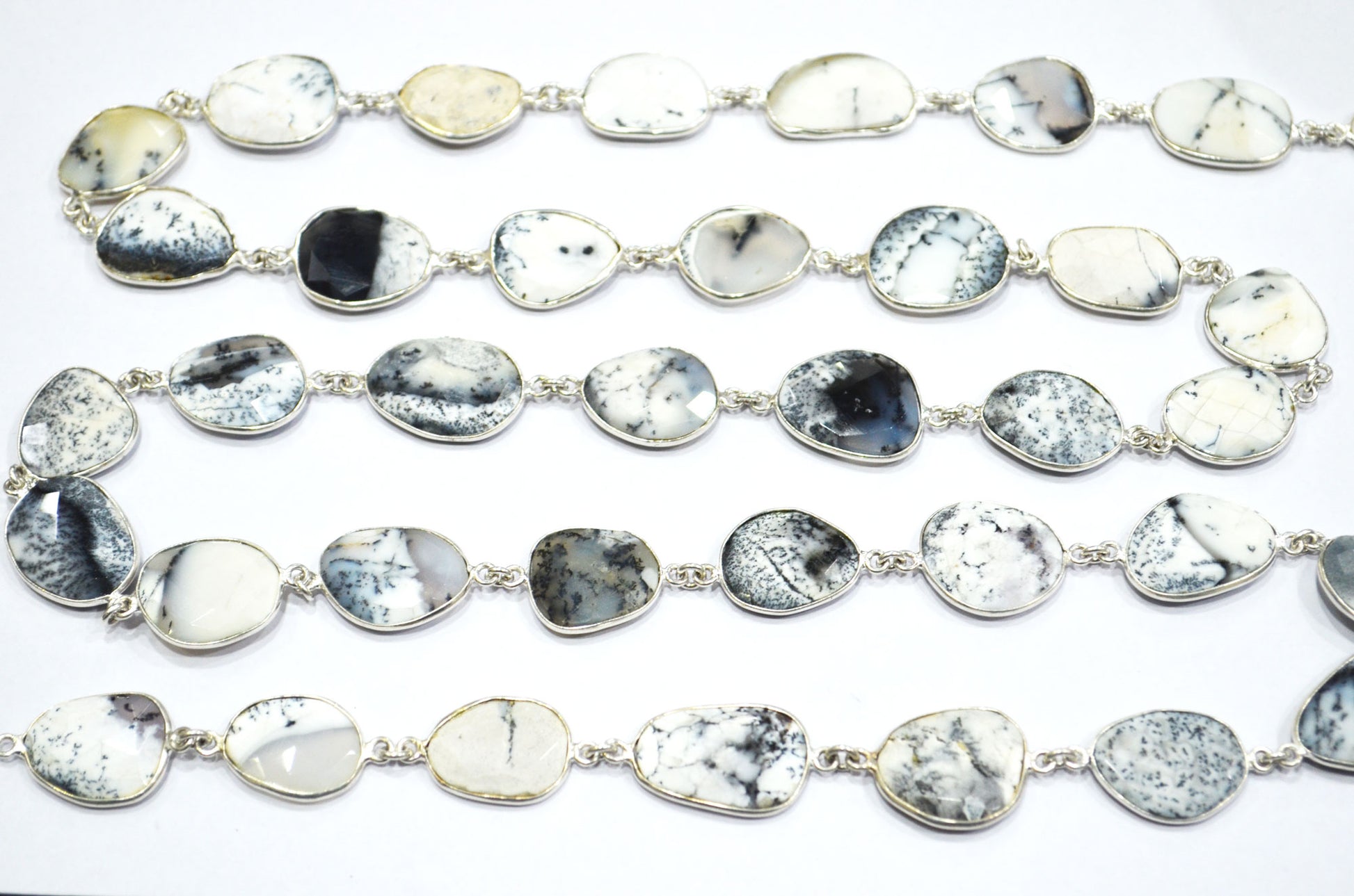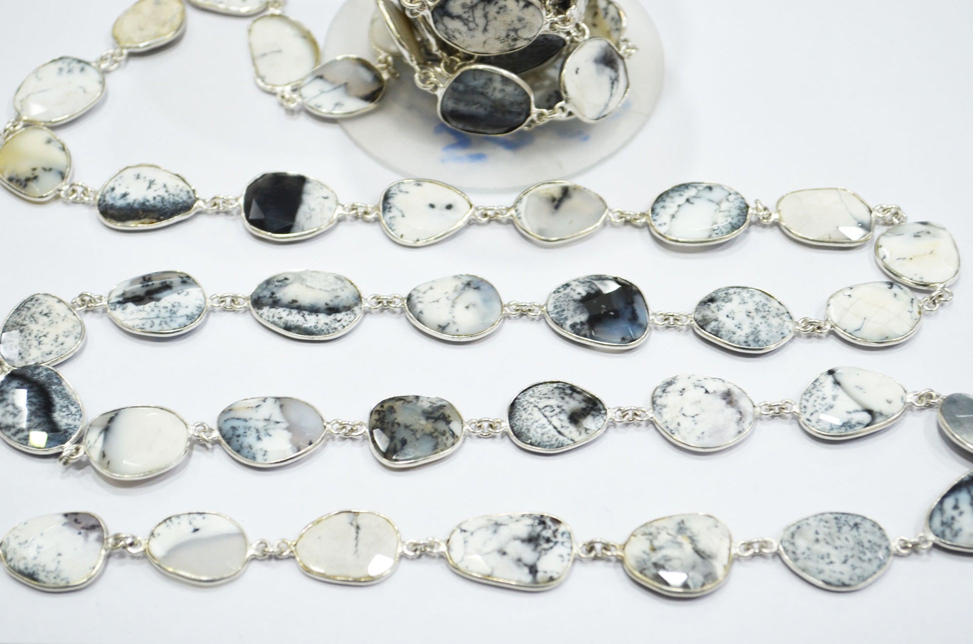 Dendrite Opal Slice Shape Connector Chain , Dendrite Opal Faceted Free Form Shape Bezel Link Chain , 16 - 19 mm , RB-6082