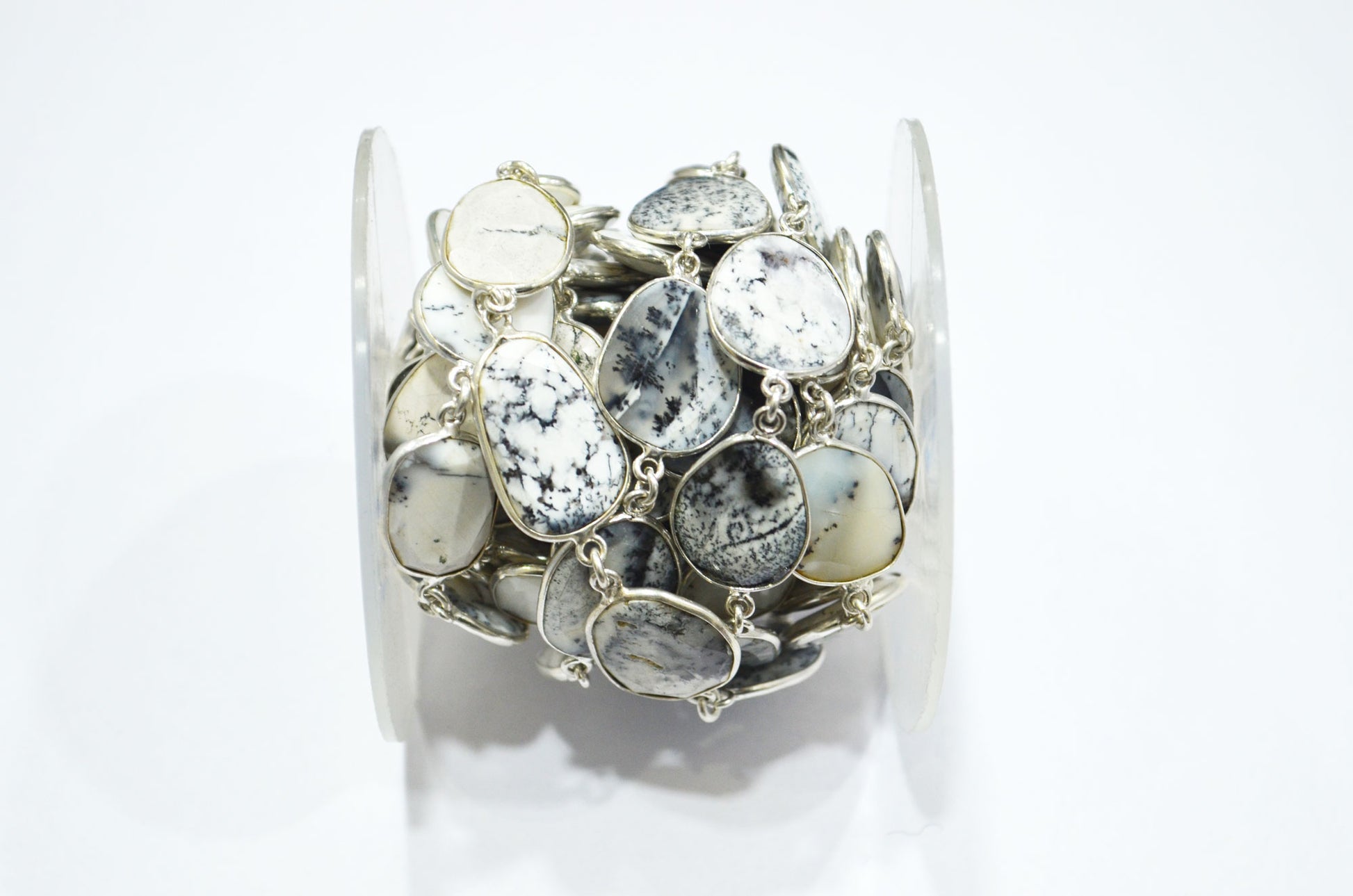Dendrite Opal Faceted Slice Shape Connector Chain , 16 - 19 mm , RB-6082