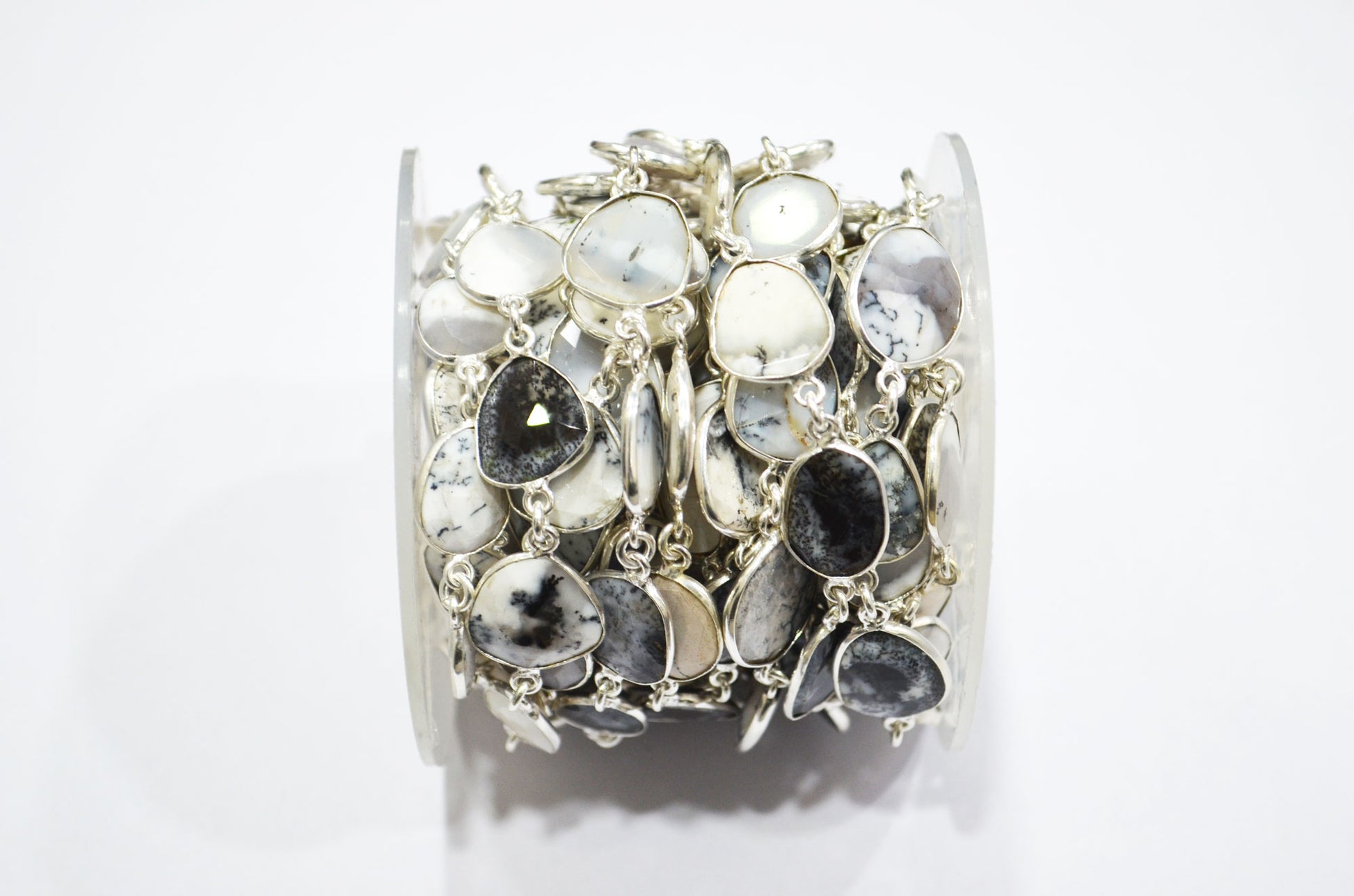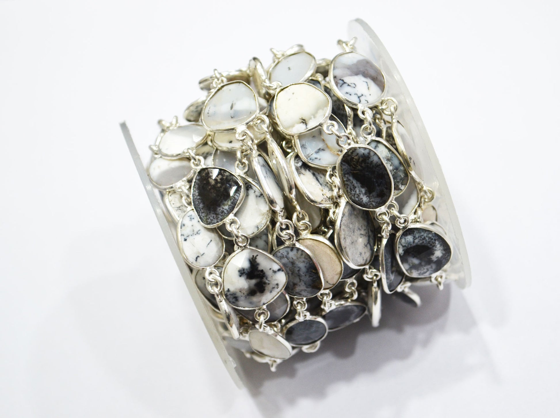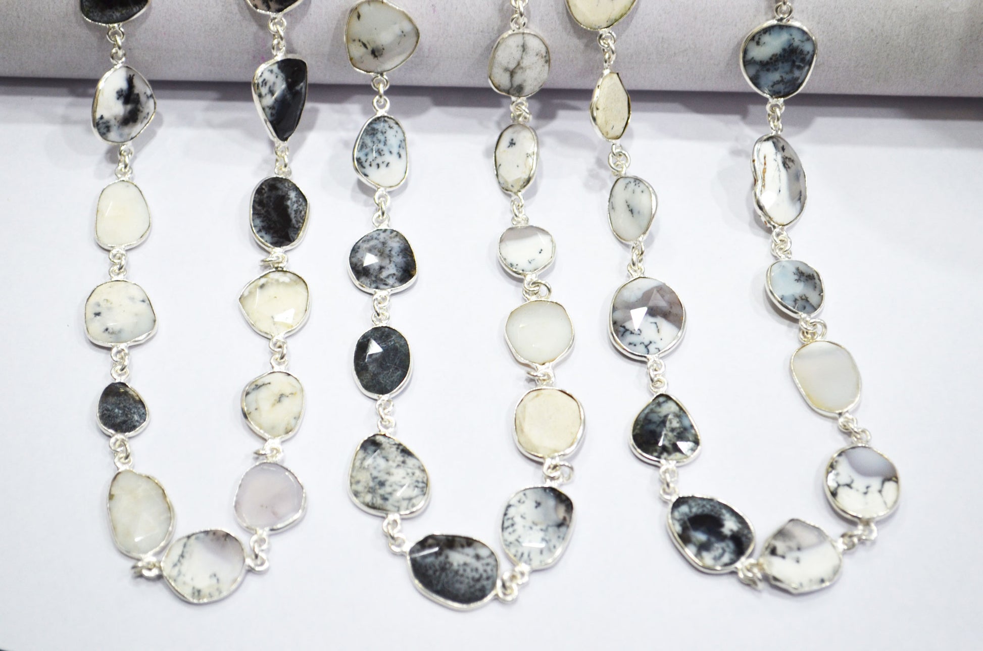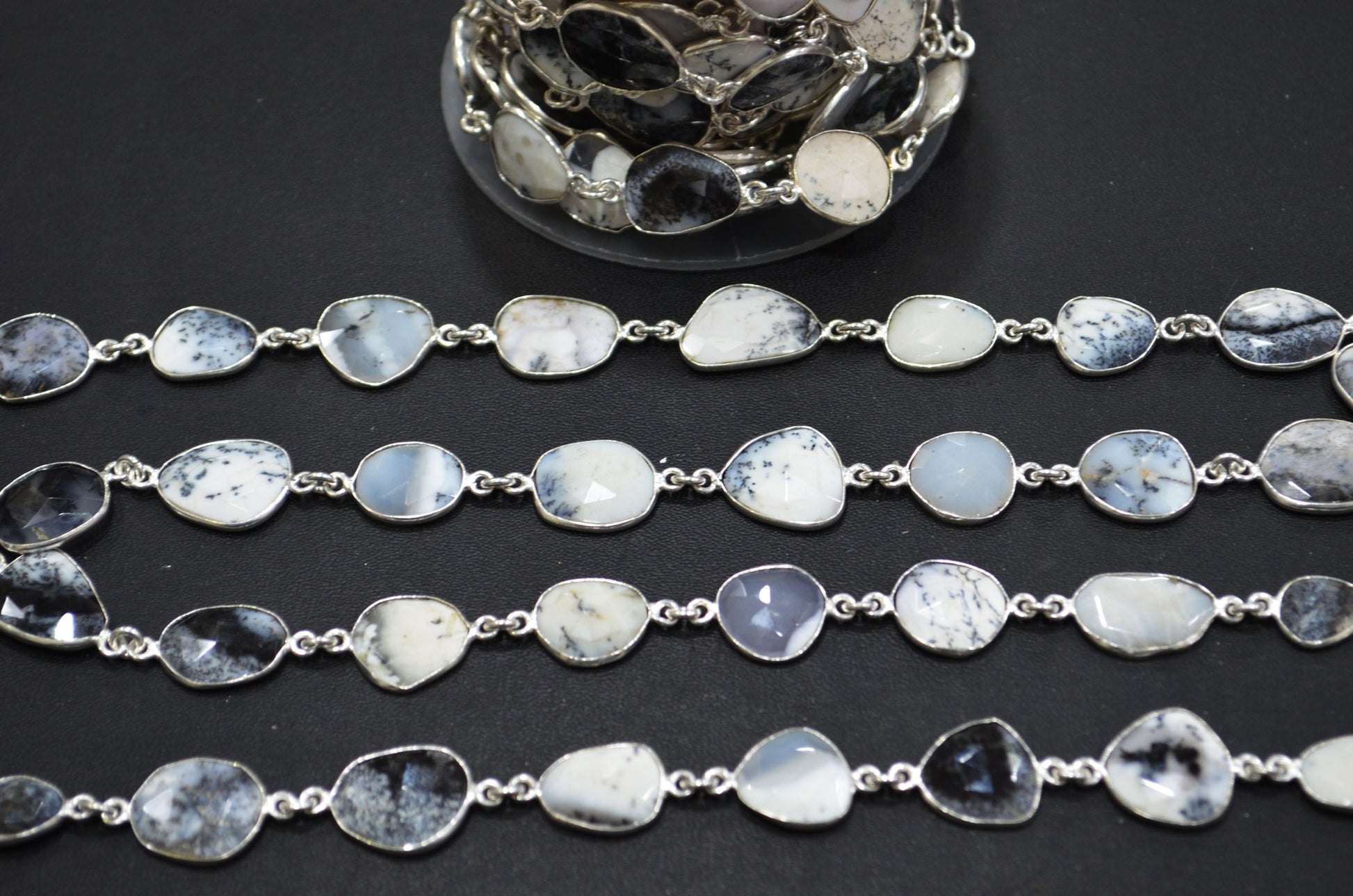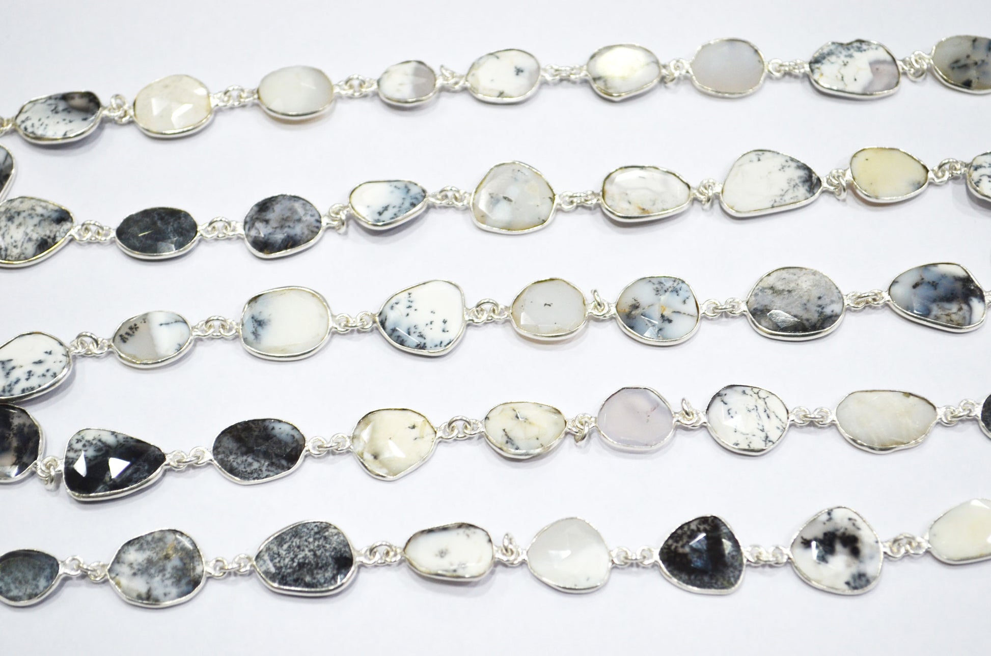 Dendrite Opal Slice Shape Connector Chain , Dendrite Opal Faceted Free Form Shape Bezel Link Chain , 8 - 12 mm , RB-6083