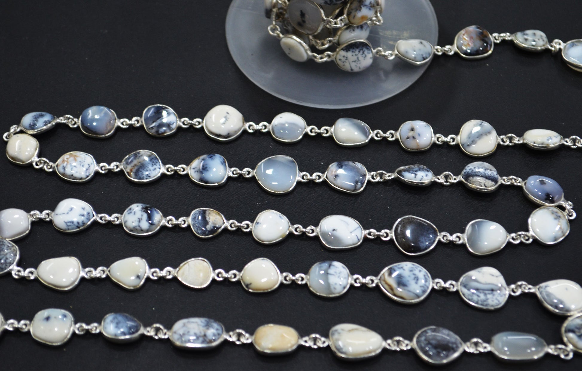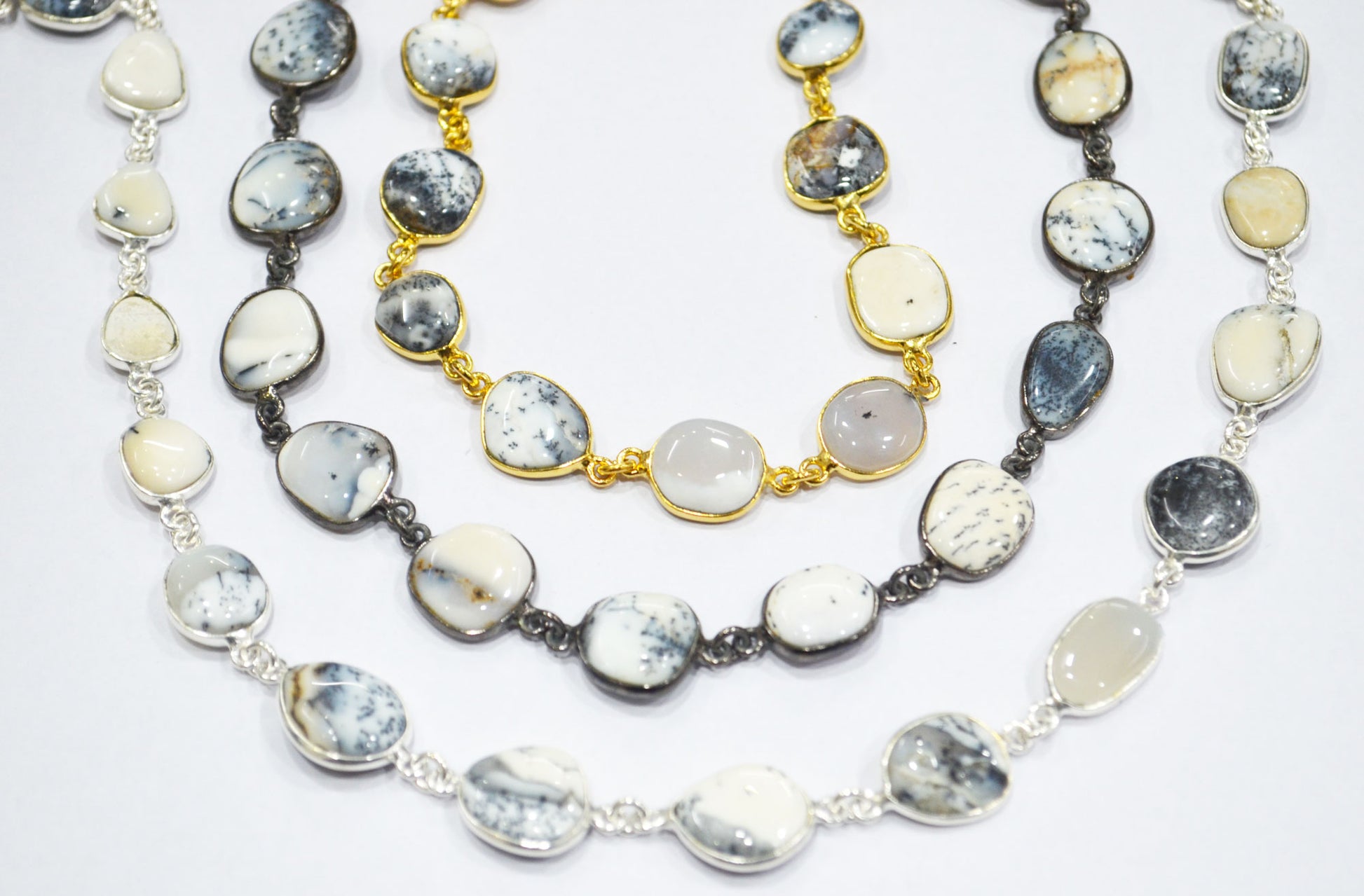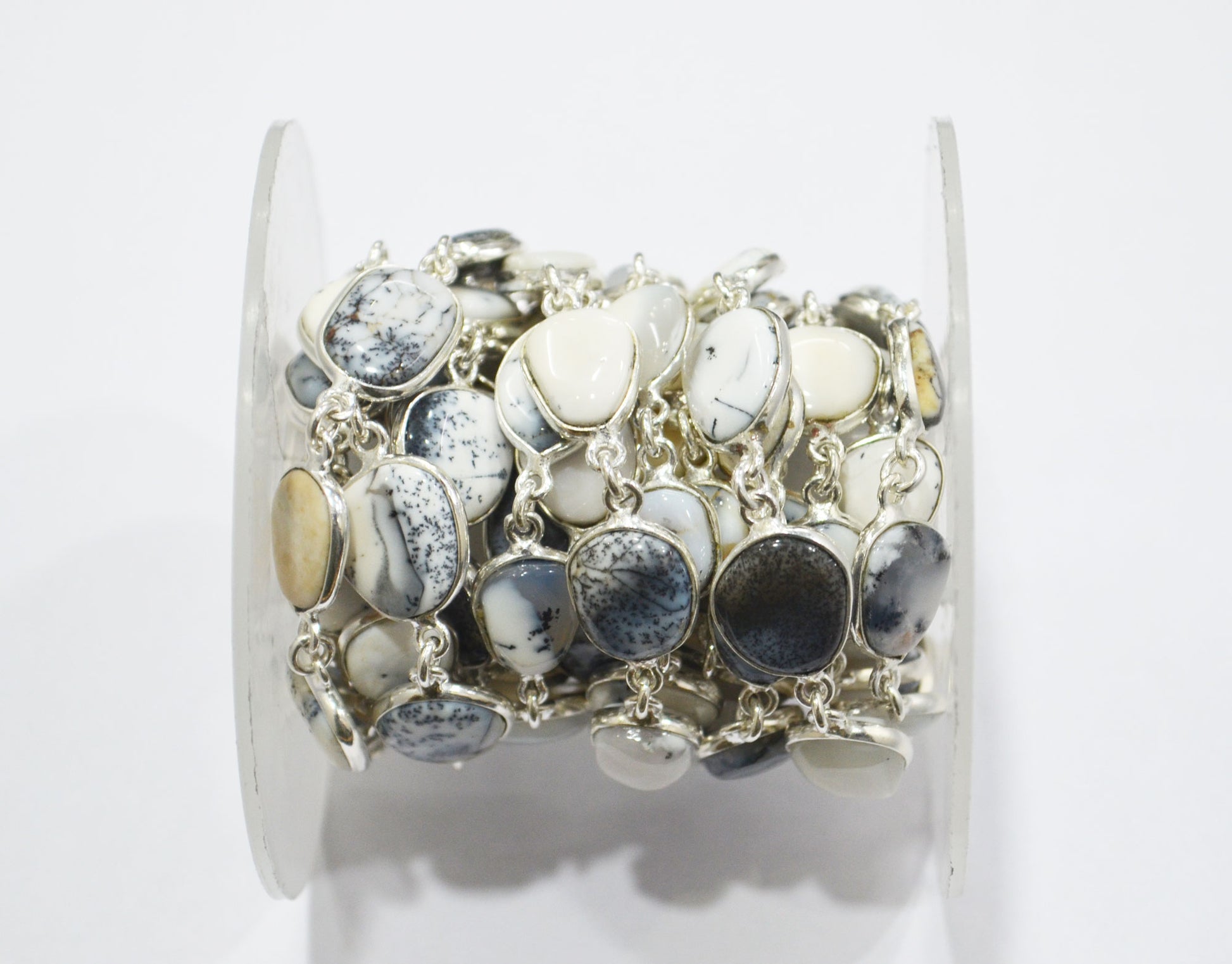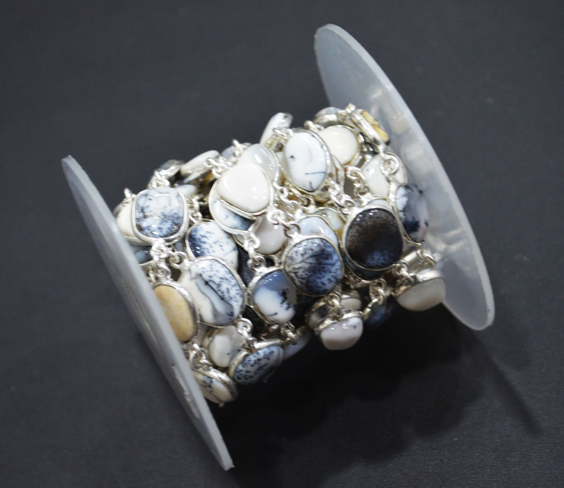 Dendrite Opal Smooth Slice Shape Connector Chain , Dendrite Opal Free Form Shape Bezel Link Chain , 9 - 13 mm , RB-6287