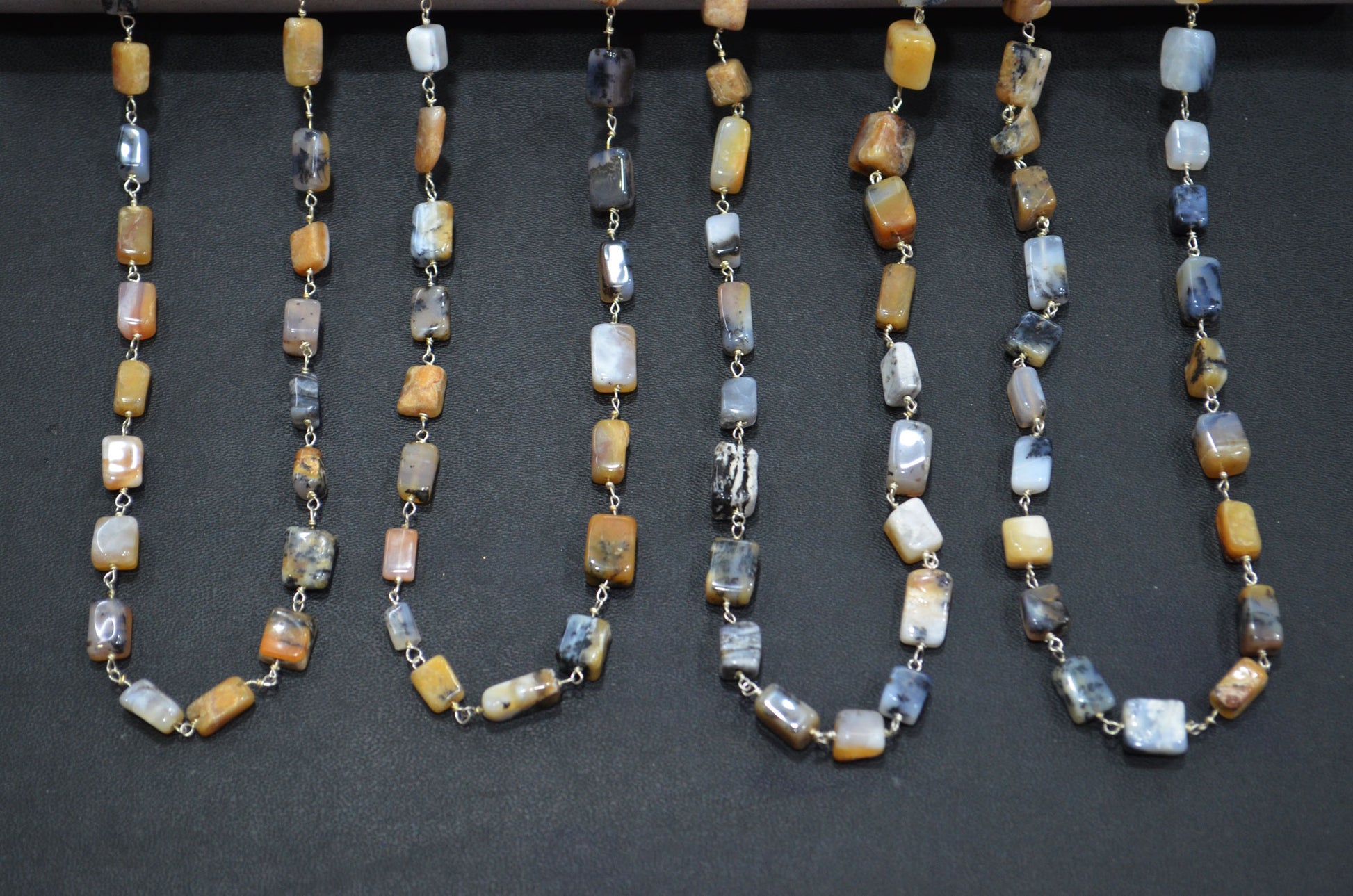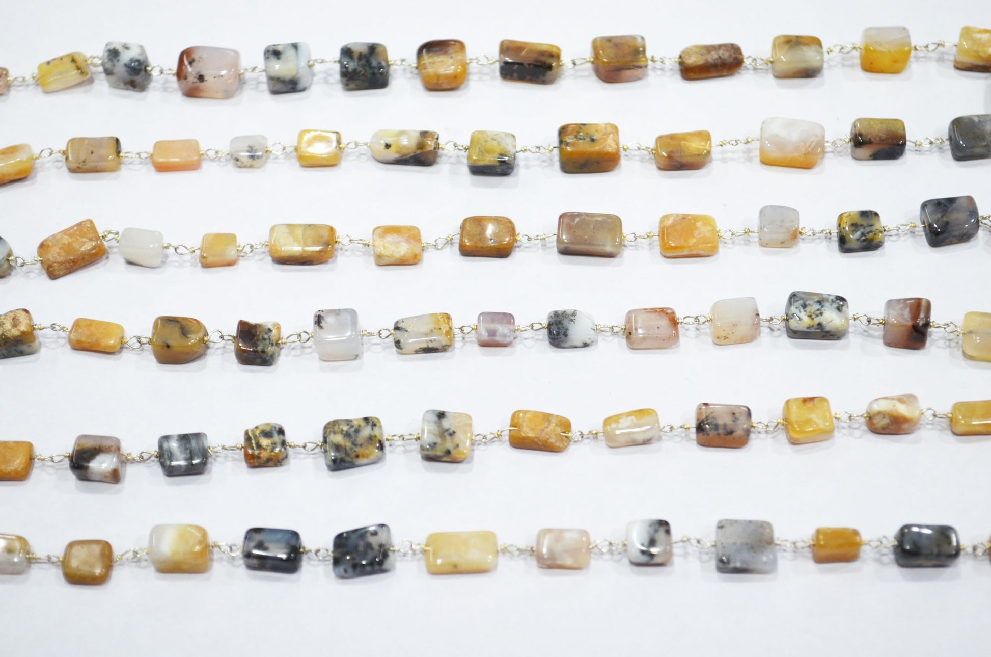 Dendrite Opal Smooth Square Shape Rosary Beaded Chain , Dendrite Opal Wire Wrapped Chain , 5 - 11 mm , RB-6024
