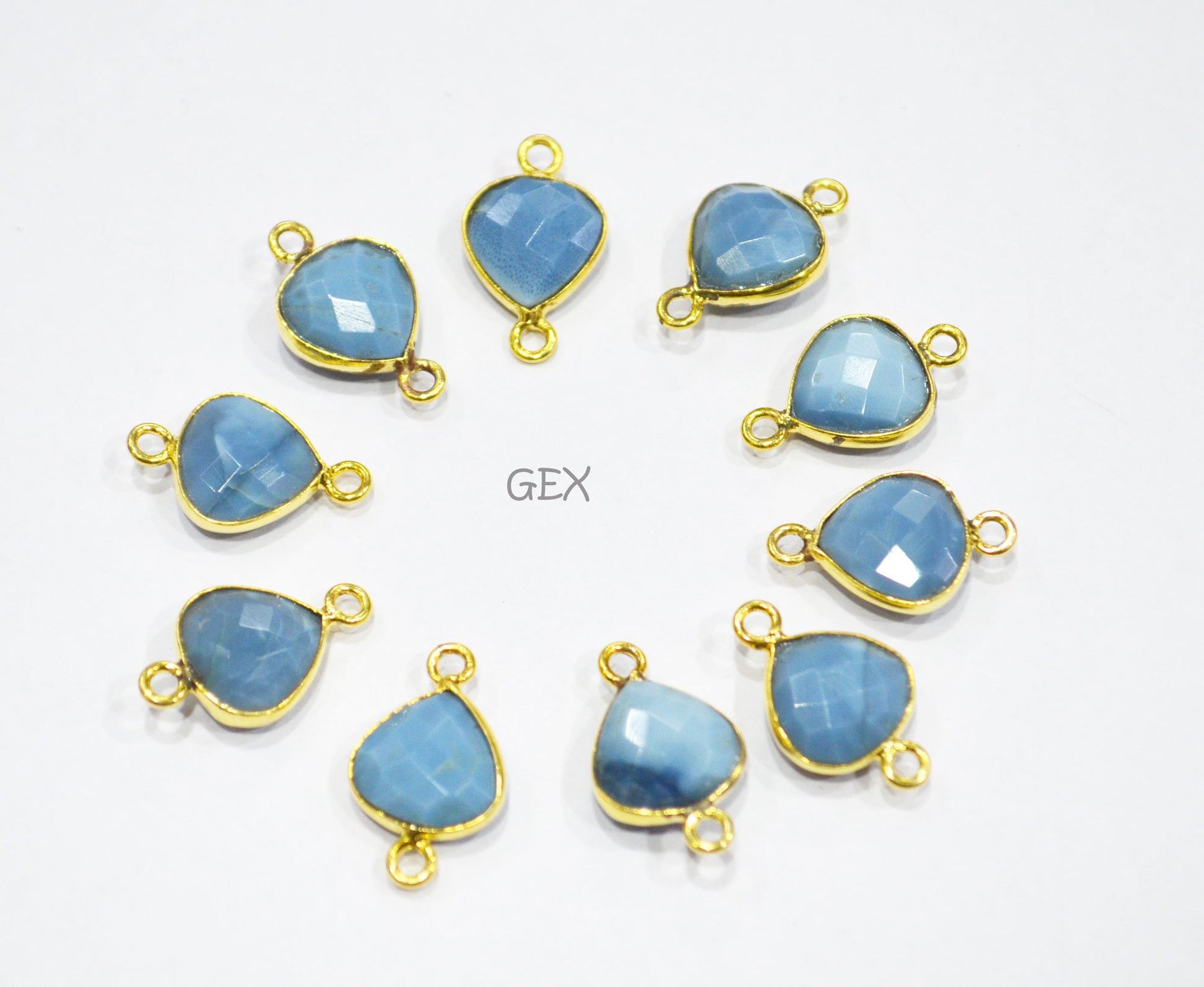 Denim Opal Faceted Heart Shape Connector , Denim Opal Double Bail Bezel Connector , Sold By Piece , 11 mm , RB-7179