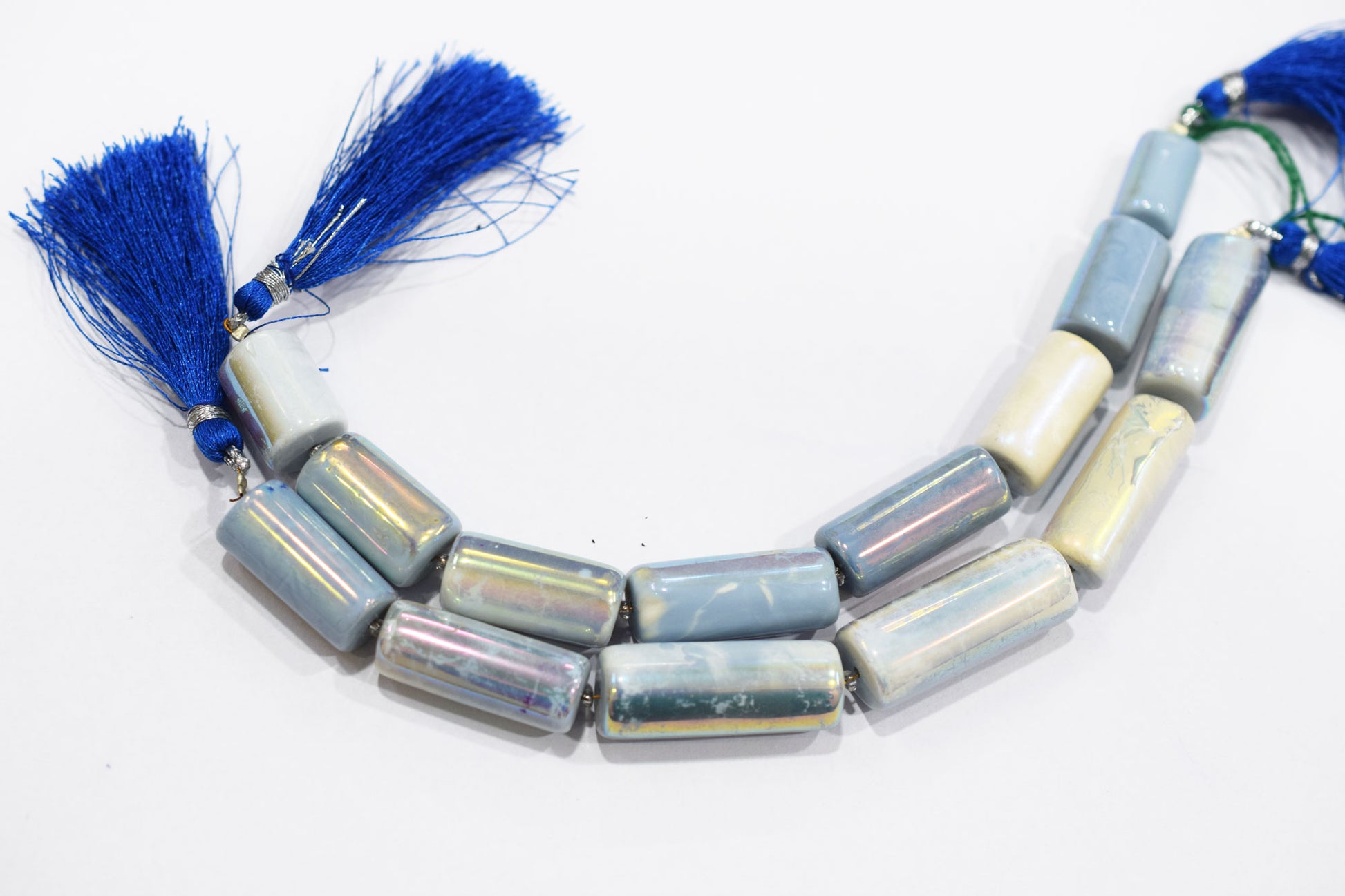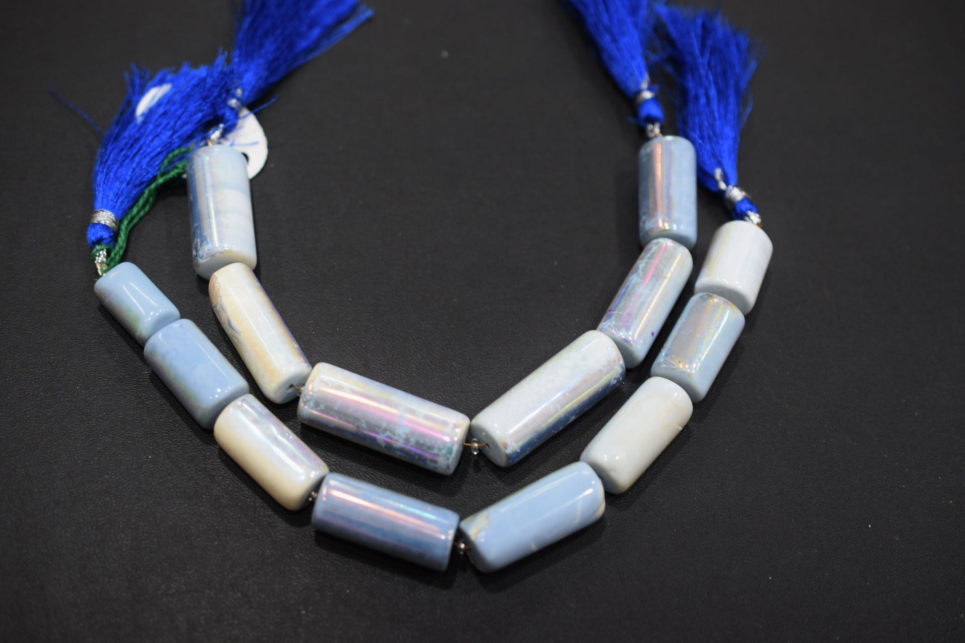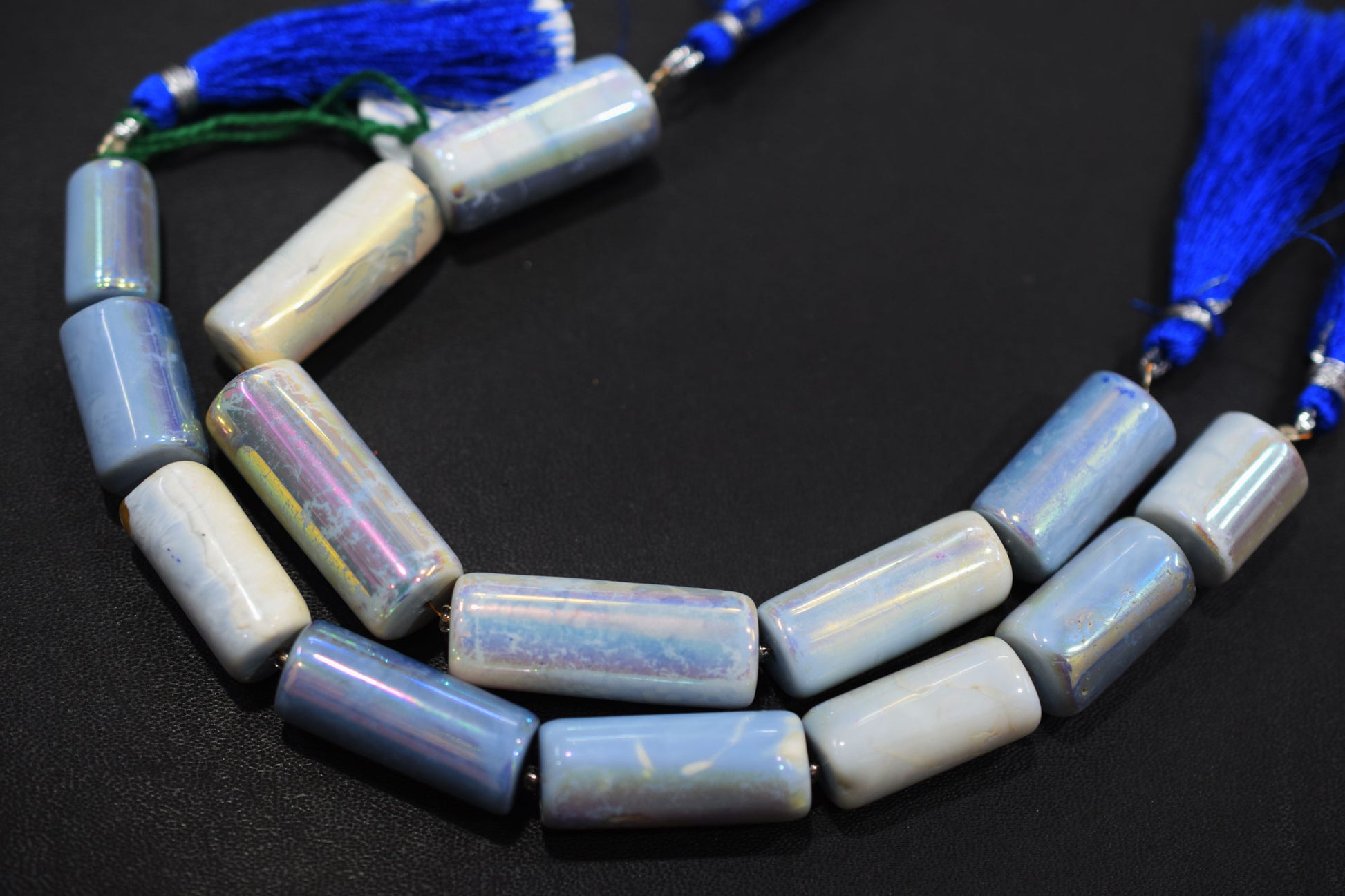 Denim Opal Rustic Style Titanium Coated Drums Shape Beads , Denim Opal Smooth Briolettes , Sold By Strand , 10x18 - 13x32 mm , 7" , 20401