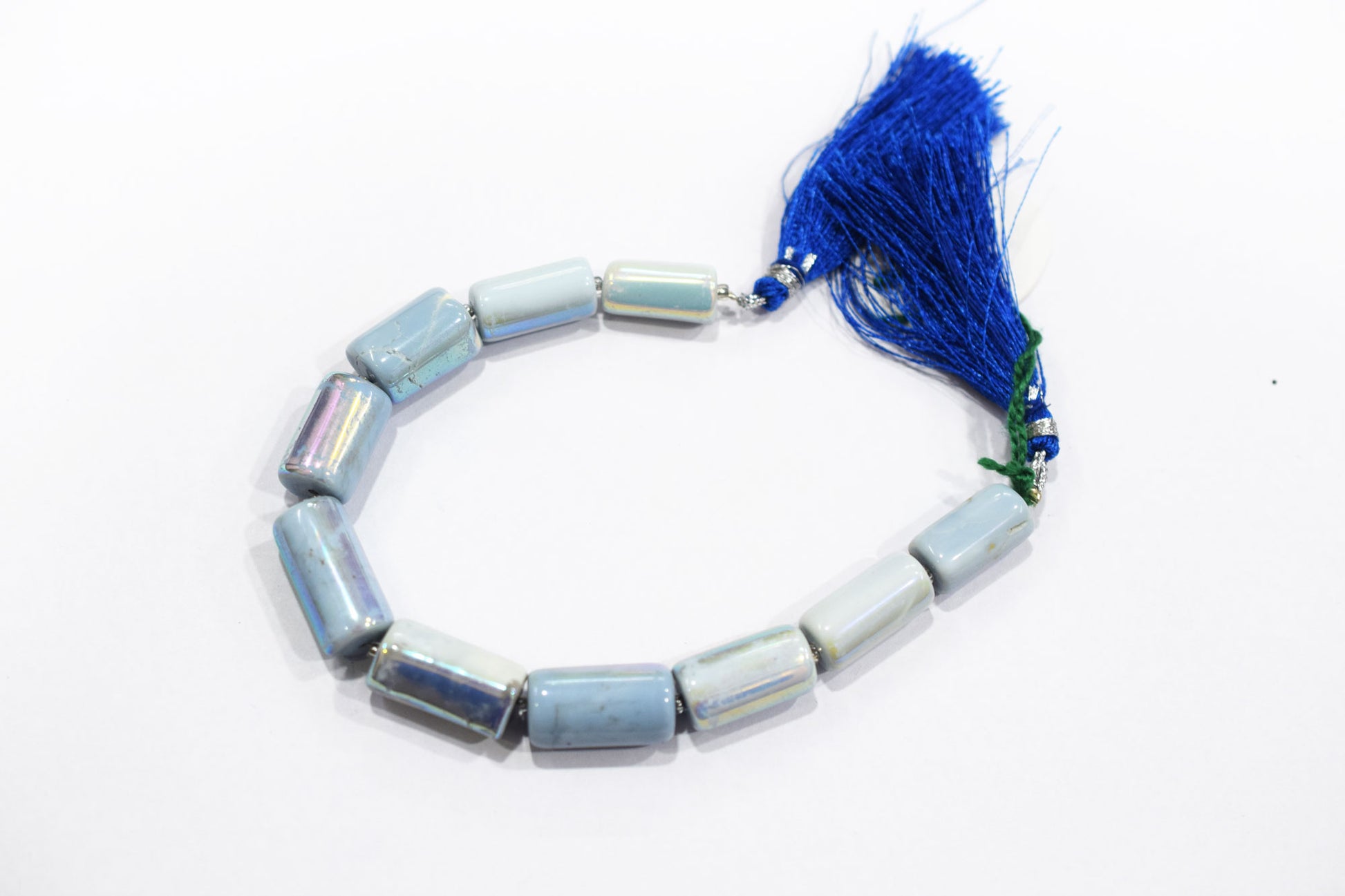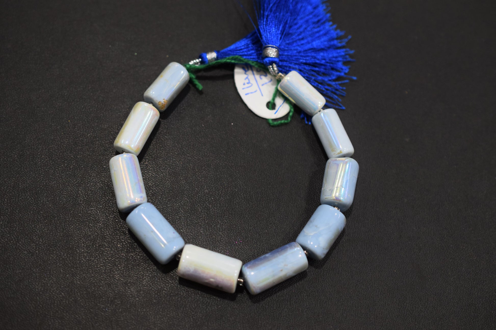 Denim Opal Rustic Style Titanium Coated Drums Shape Beads , Denim Opal Smooth Briolettes , Sold By Strand , 8x16 - 10x20 mm , 7" , 20407