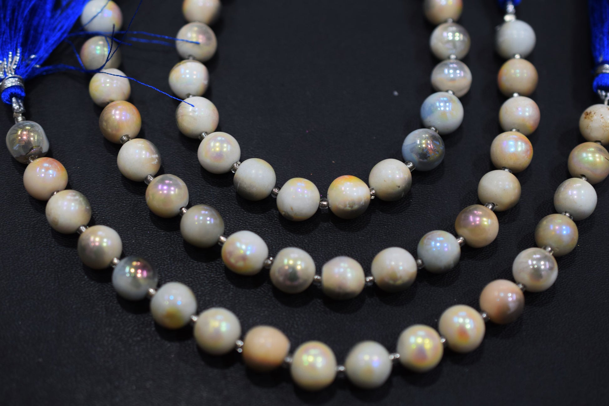 Denim Opal Rustic Style Titanium Coated Round Shape Beads , Rustic Denim Opal Smooth Briolettes , Sold By Strand , 9 mm , 7" , 20398