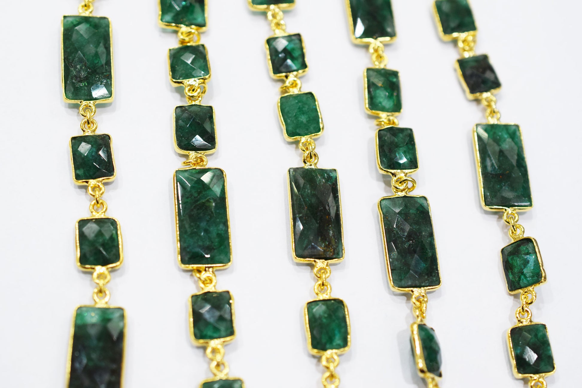 Dyed Emerald Faceted Baguette Shape Alternate Connector Chain Β , Dyed Emerald Bezel Link Chain , 11 - 22 mm , RB-6532