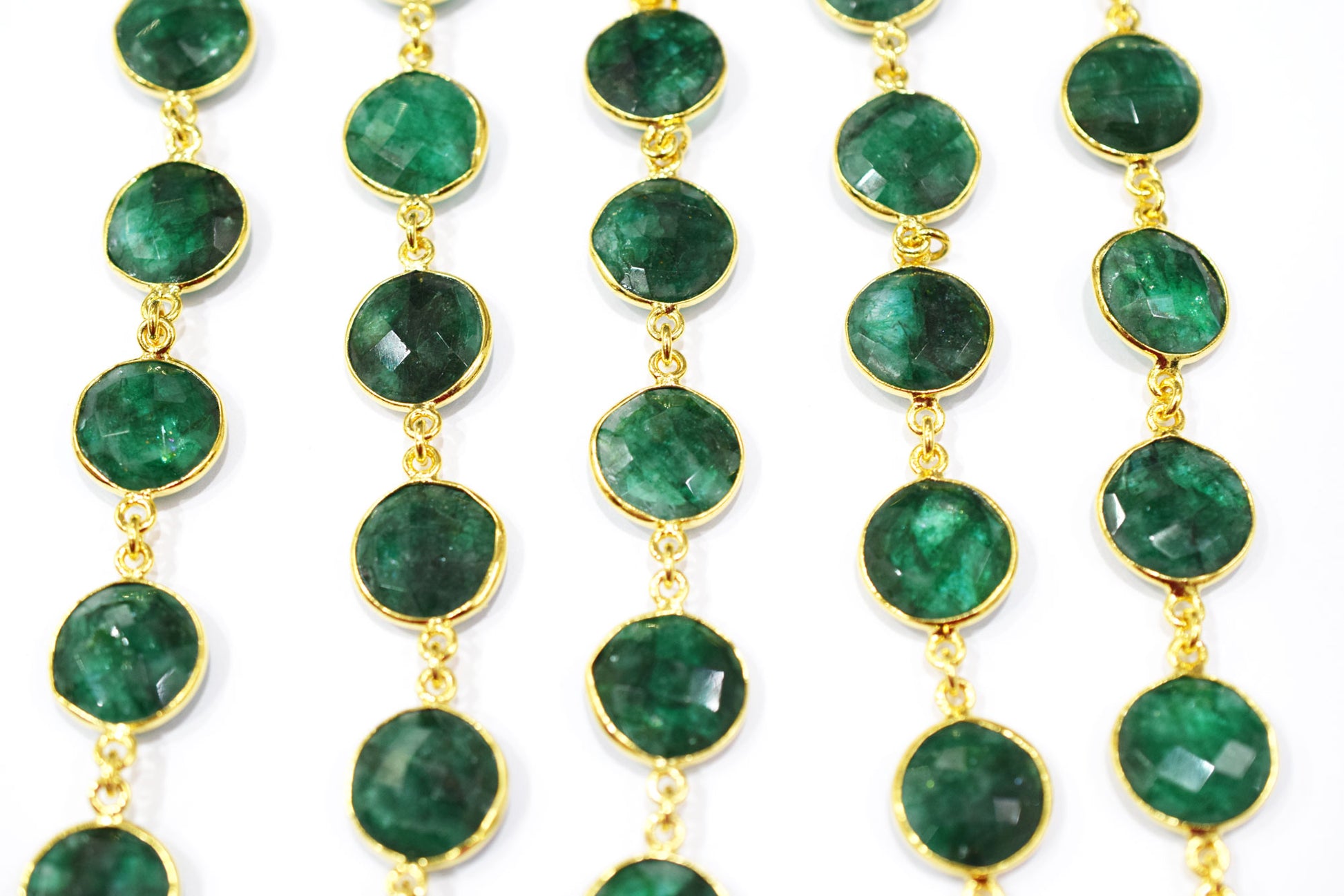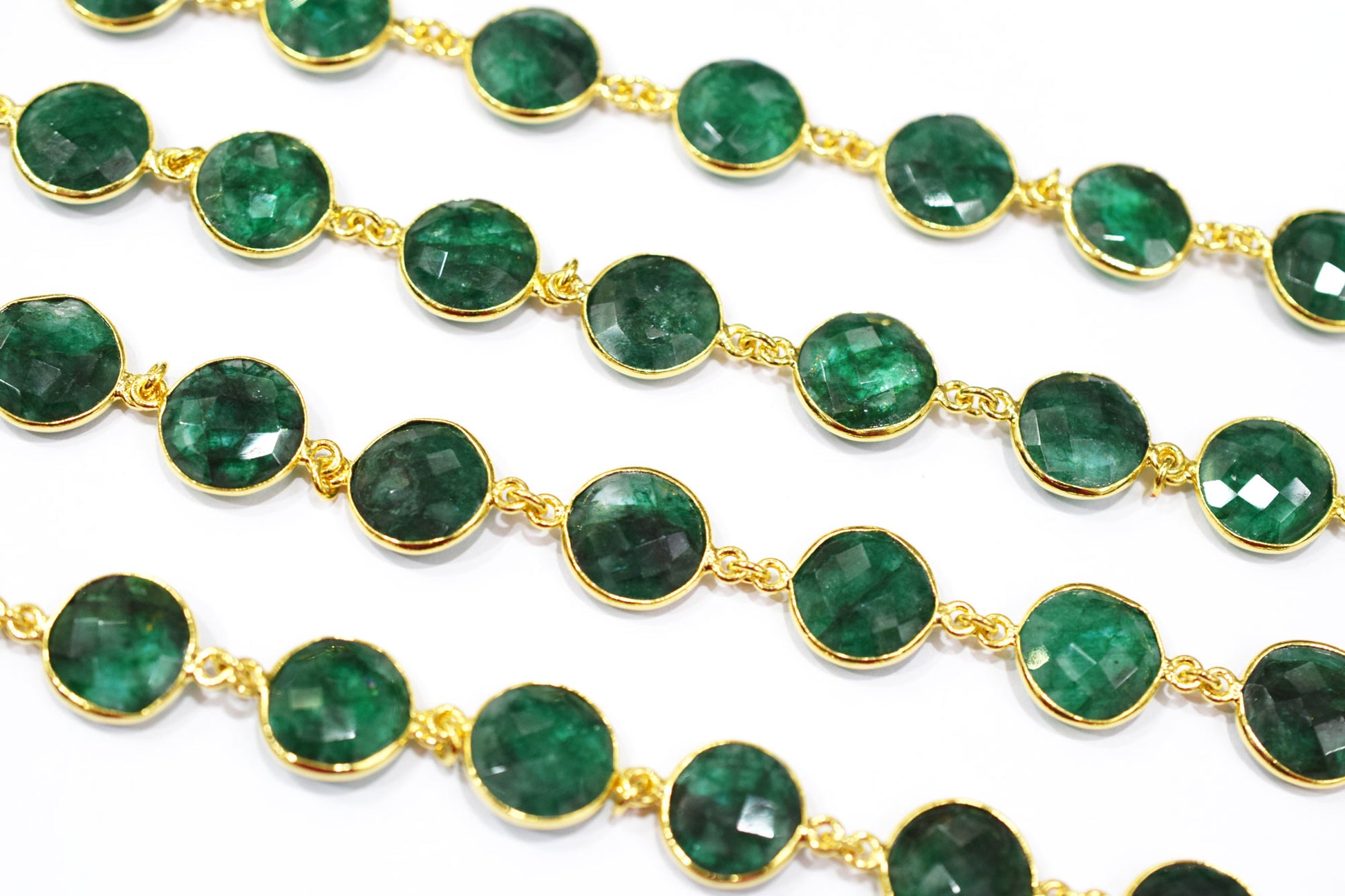 Dyed Emerald Faceted Coin Shape Connector Chain , Dyed Emerald Bezel Link Chain , 14 mm , RB-6544