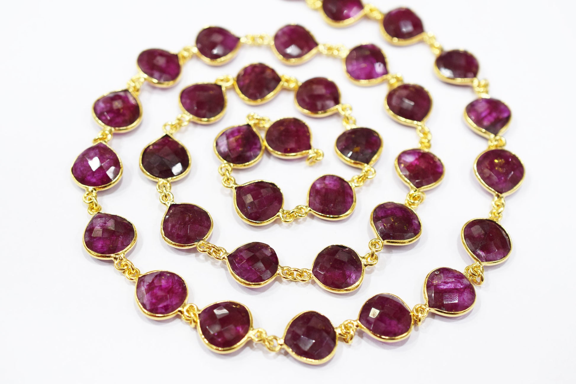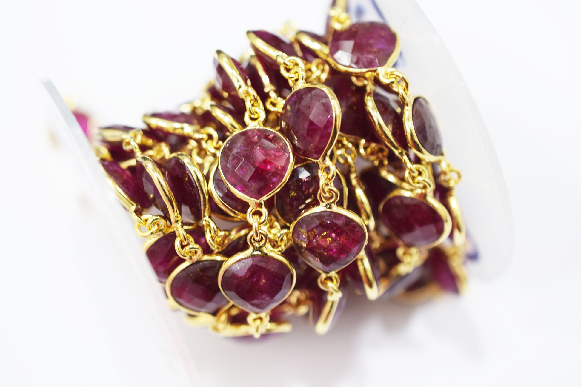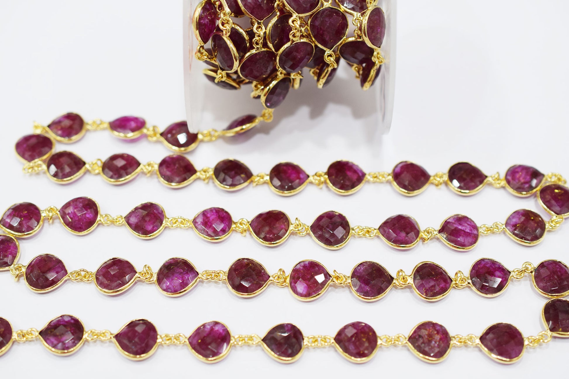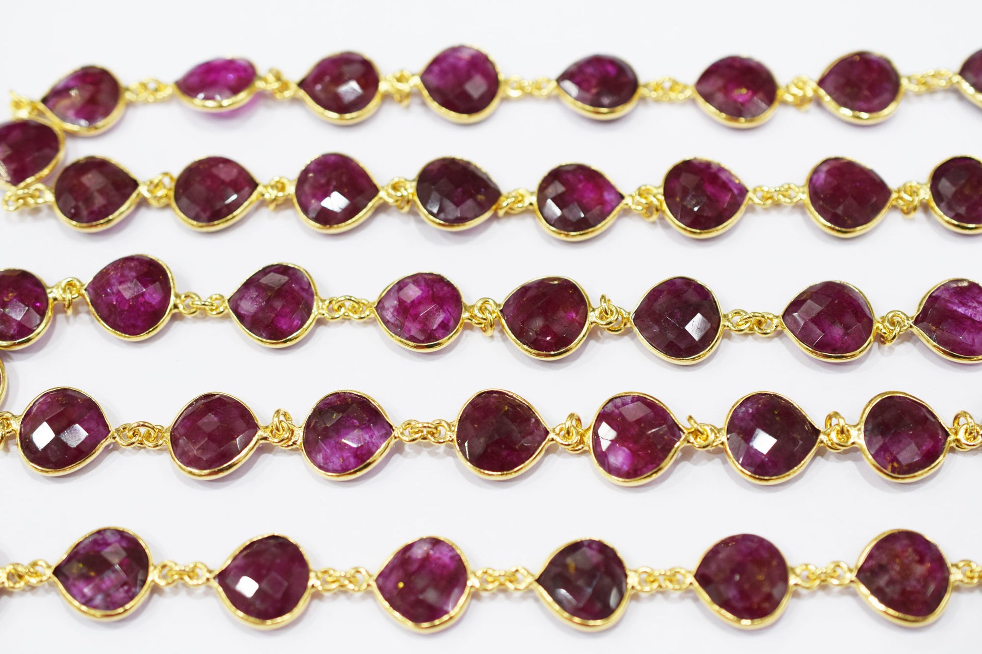 Dyed Ruby Beryl Faceted Heart Shape Connector Chain , Dyed Ruby Beryl Heart Shape Bezel Link Chain , 14 mm , RB-6537