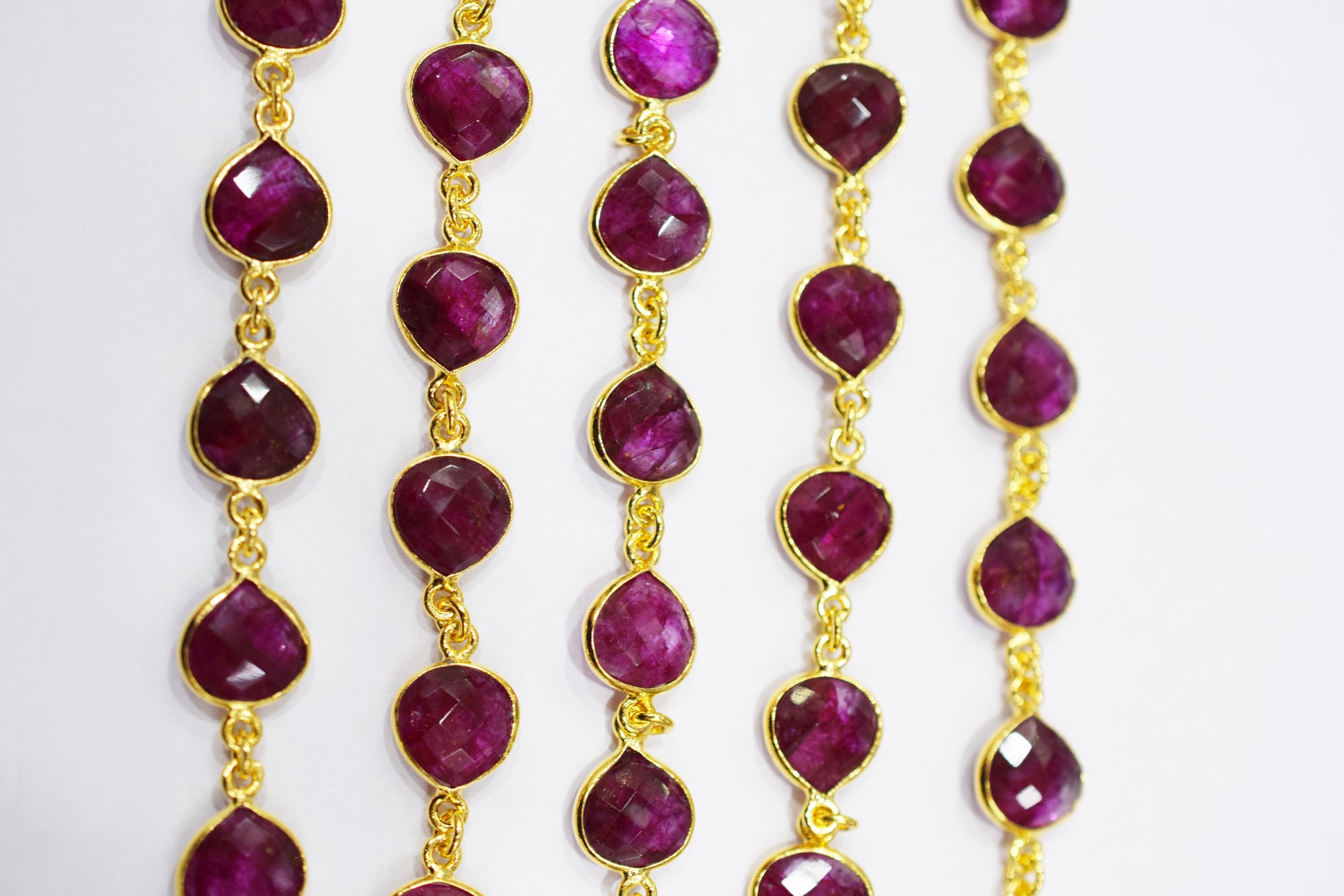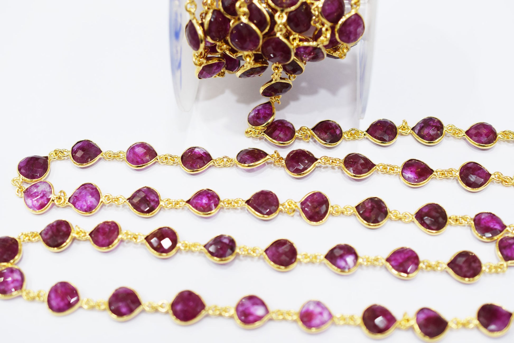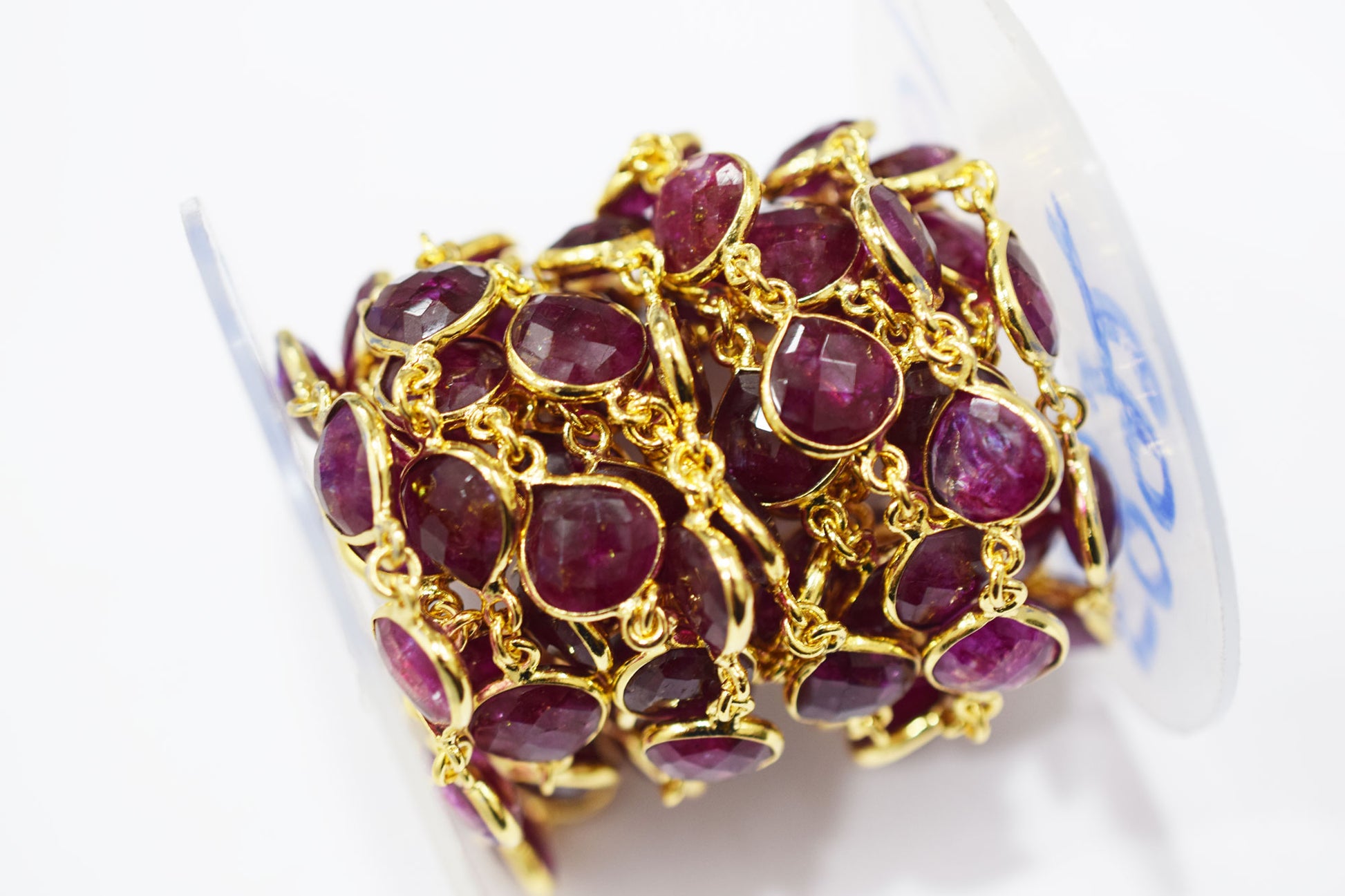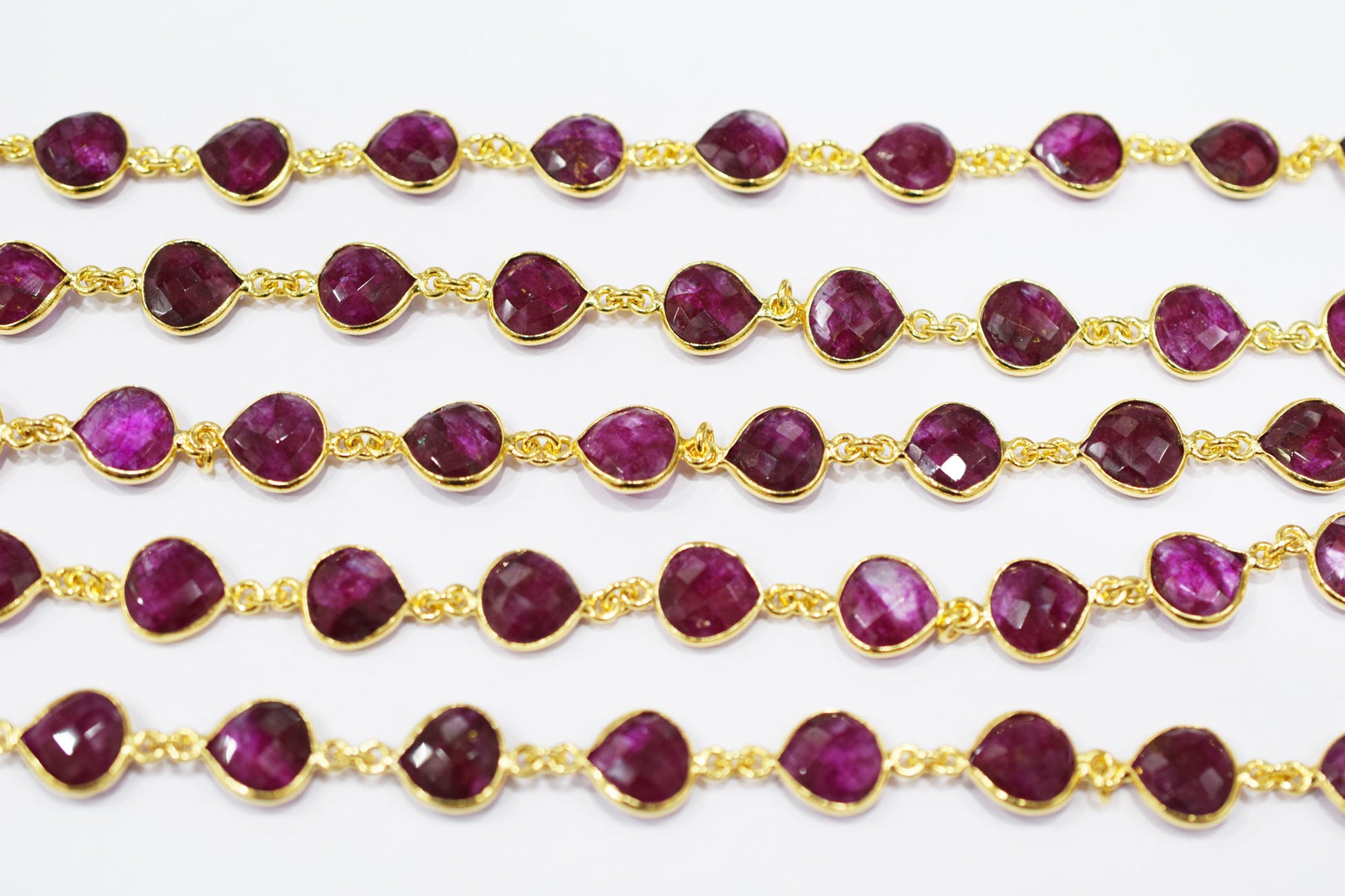 Dyed Ruby Beryl Faceted Heart Shape Connector Chain , Dyed Ruby Beryl Heart Shape Bezel Link Chain , 9 mm , RB-6527