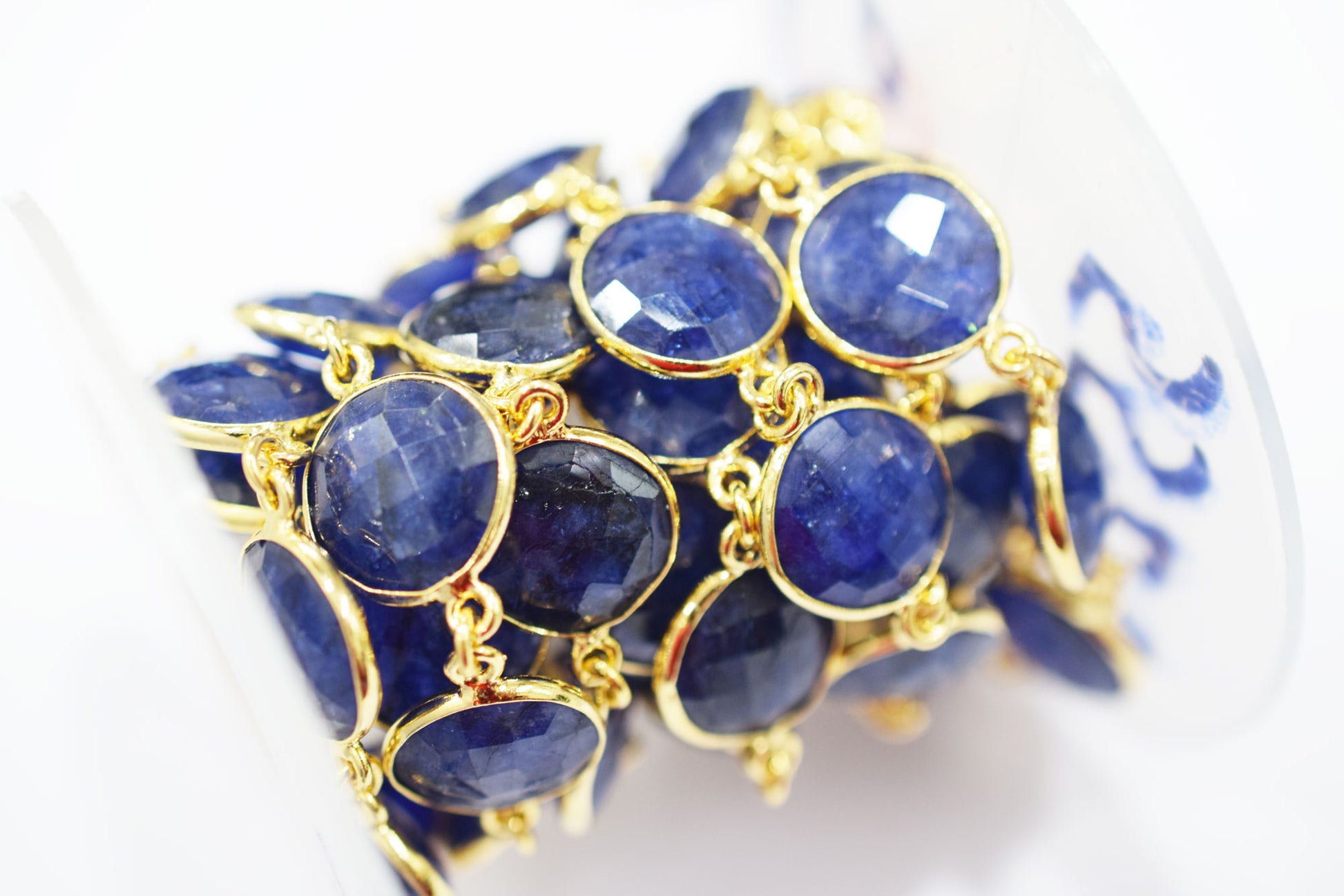 Dyed Sapphire Beryl Faceted Coin Shape Connector Chain , Dyed Sapphire Beryl Coin Shape Bezel Link Chain , 12 mm , RB-6543