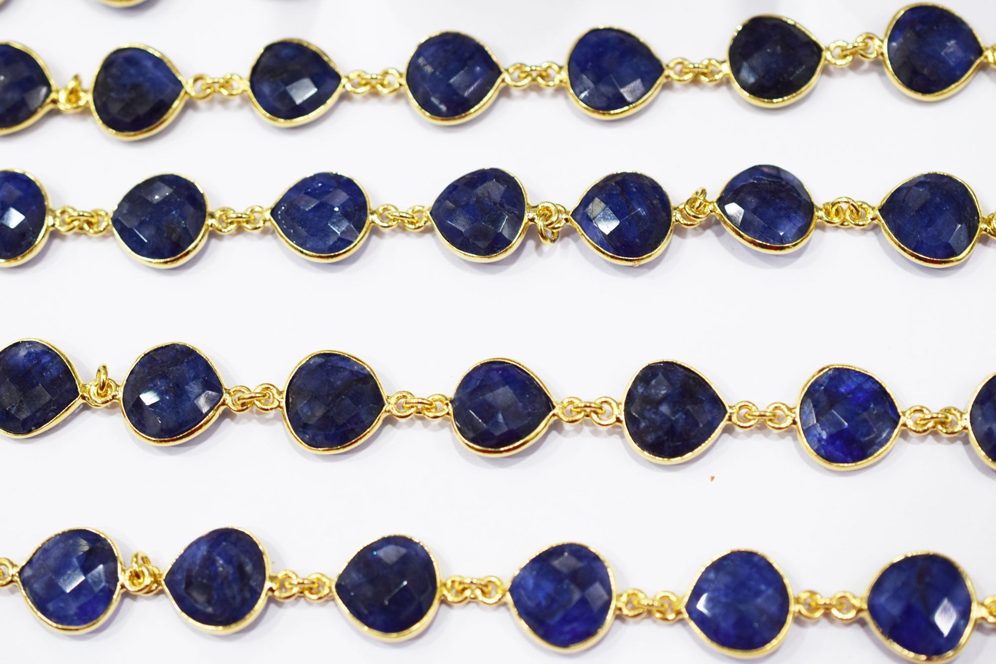 Dyed Sapphire Beryl Faceted Heart Shape Connector Chain , Dyed Sapphire Beryl Heart Shape Bezel Link Chain , 13 mm , RB-6548