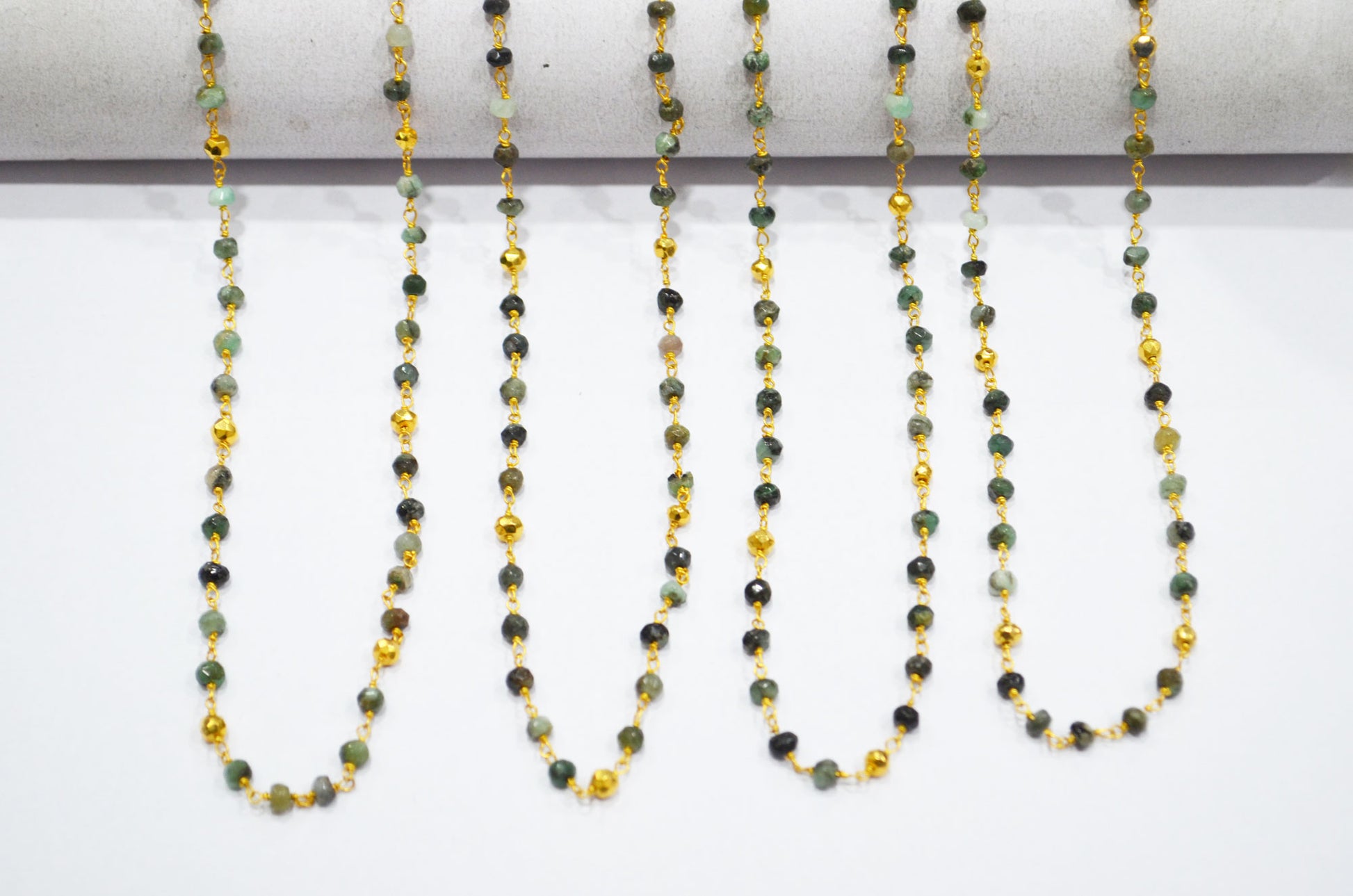 Emerald Faceted Rondelle Shape Rosary Beaded Chain , Emerald With Gold Pyrite Rondelle Shape Gold Wire Wrapped Chain , 3.50 - 4 mm ,RB-5891