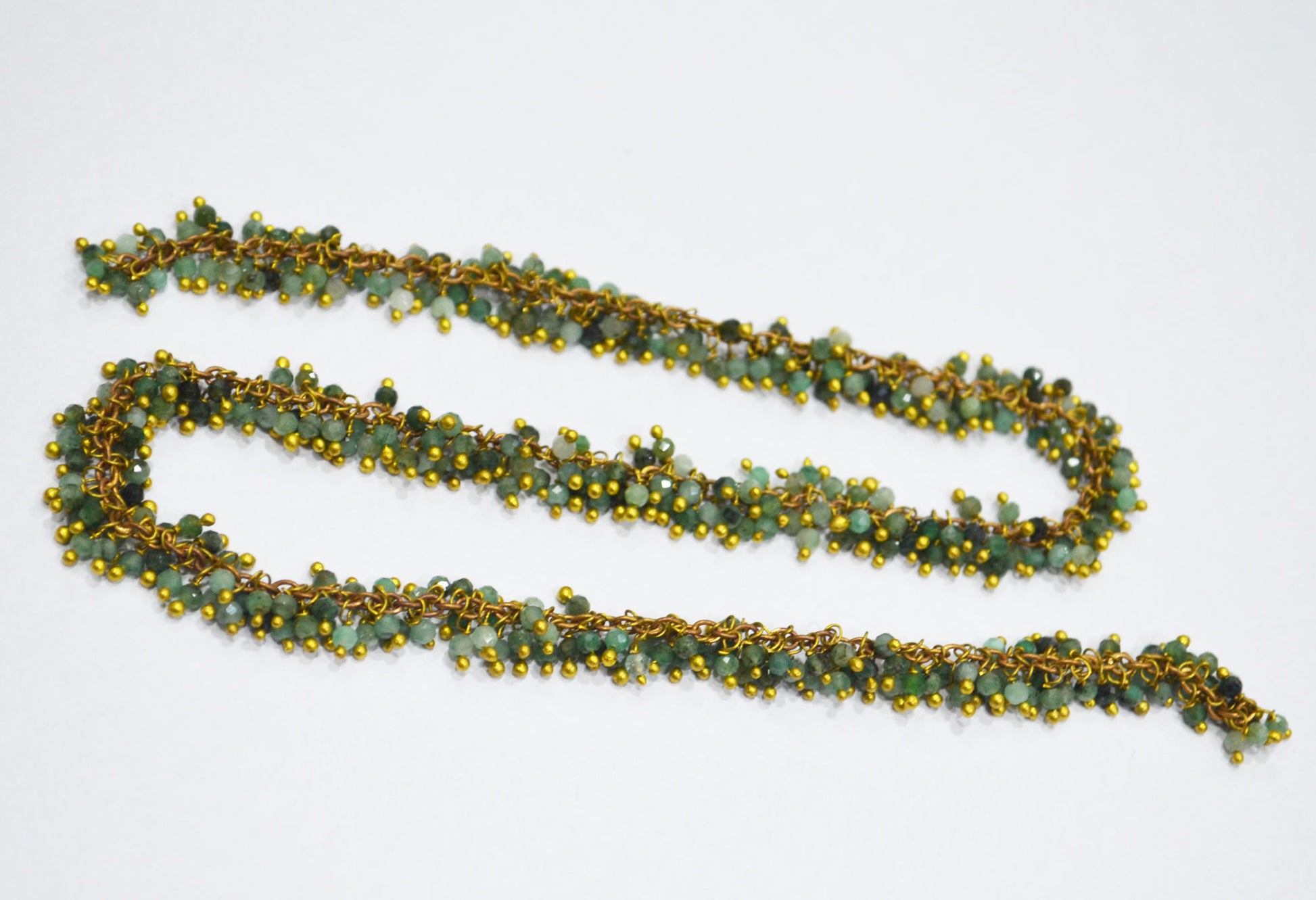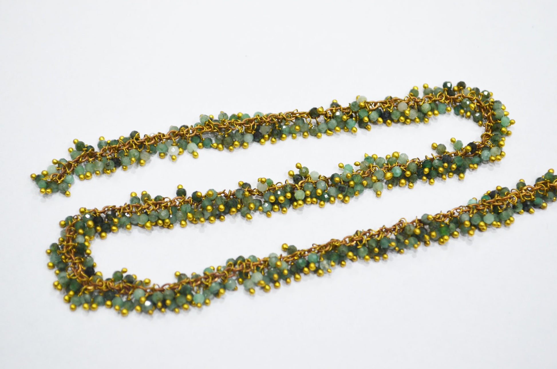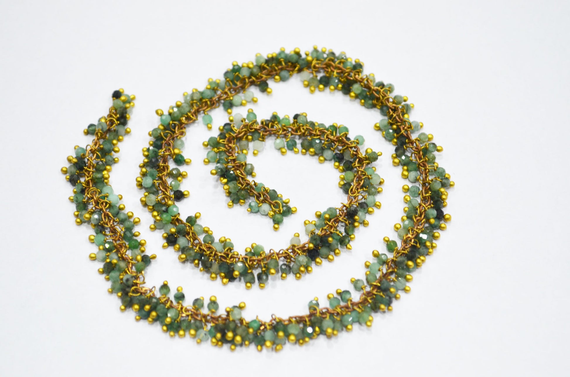 Emerald Faceted Round Shape Grape Chain , Emerald Angoori Cluster Wire Wrapped Chain , 2 mm , RB-6348