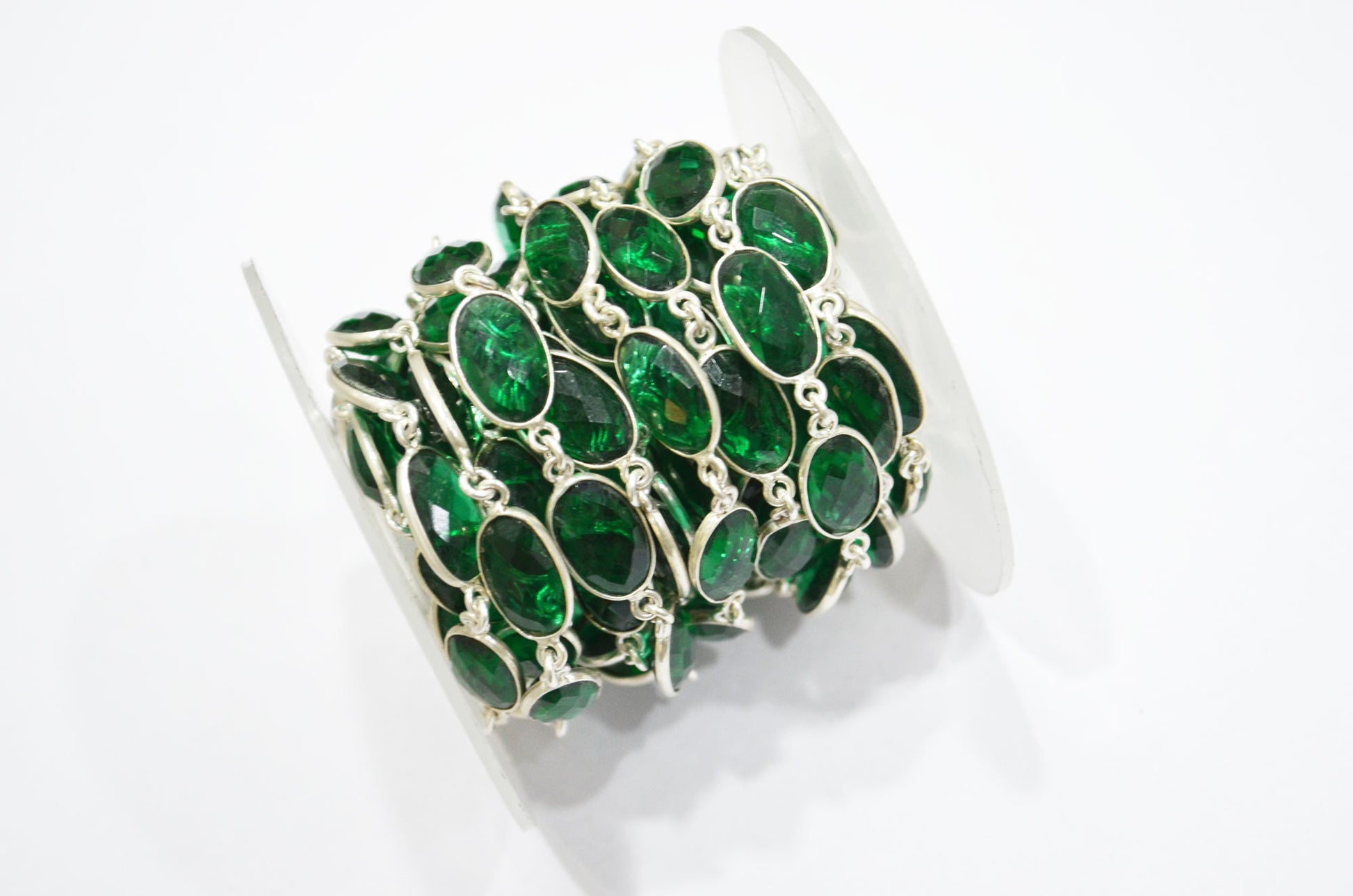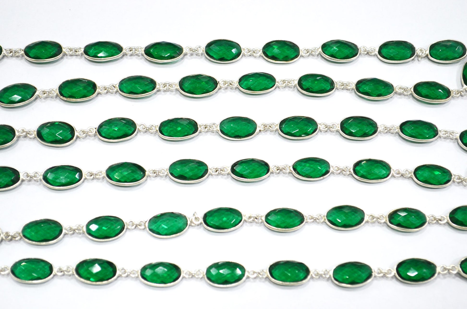 Emerald Green Hydro Quartz Faceted Oval Shape Connector Chain , Emerald Green Hydro Quartz Bezel Link Chain , 9x13 mm , RB-5709