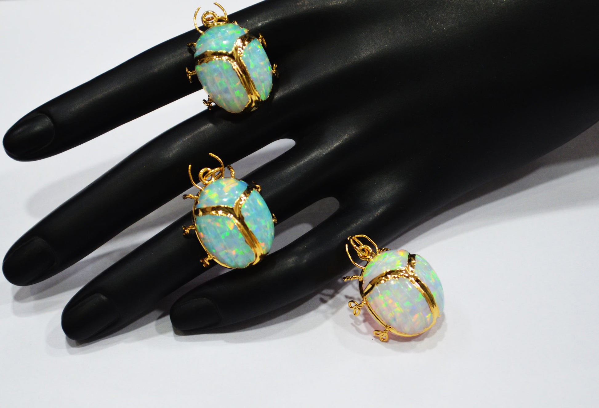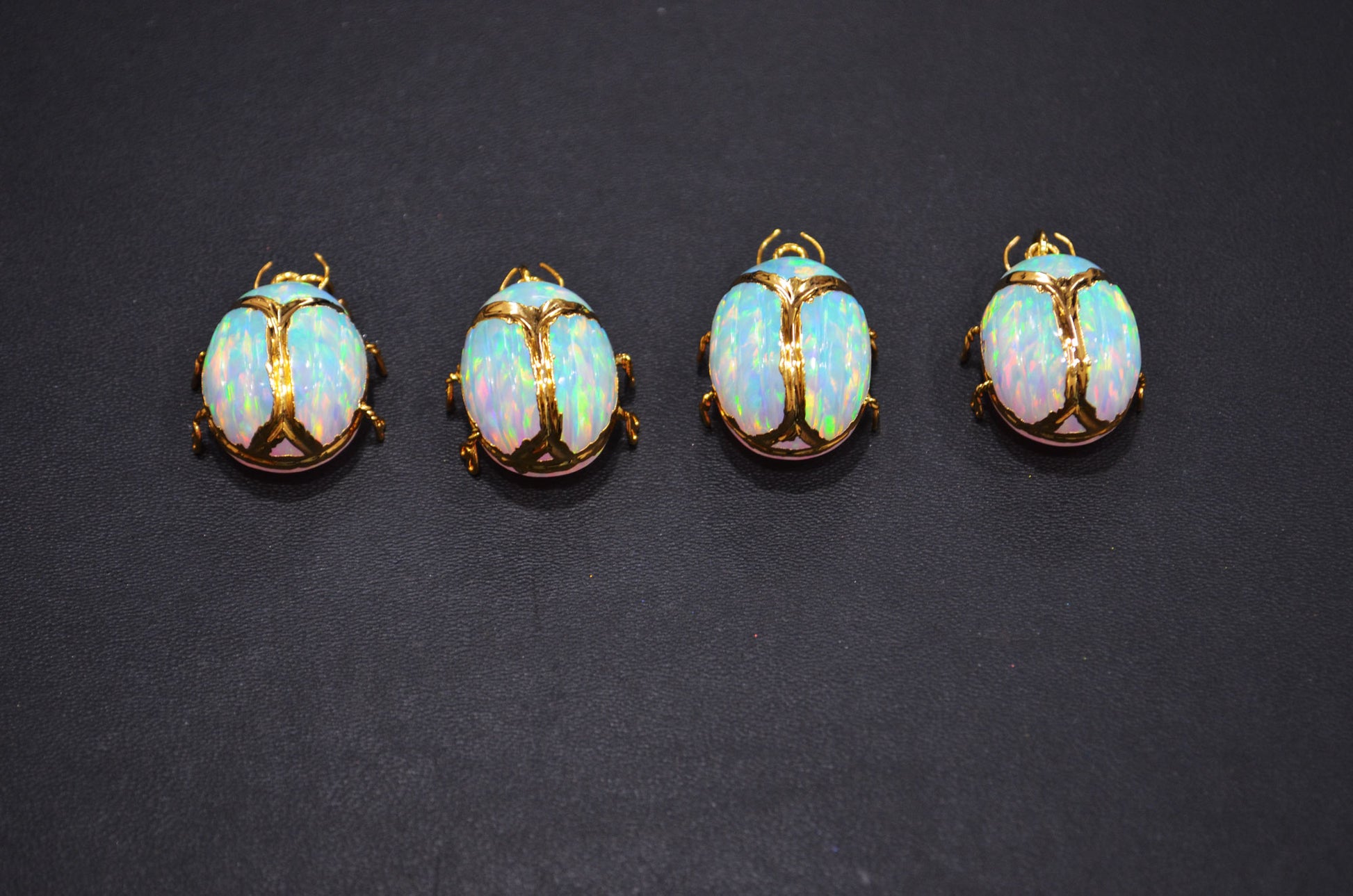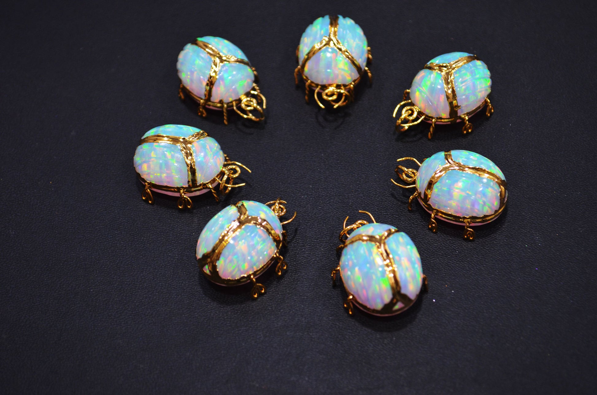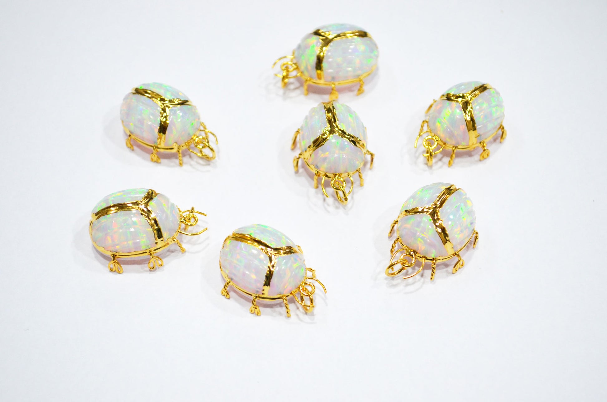Ethiopian Opal Electroplated Beetle Pendant , Egyptian Scarab Opal Charm , Sold By Piece , Use To Make Jewelry , 2.25 - 2.50 cm , 31347A