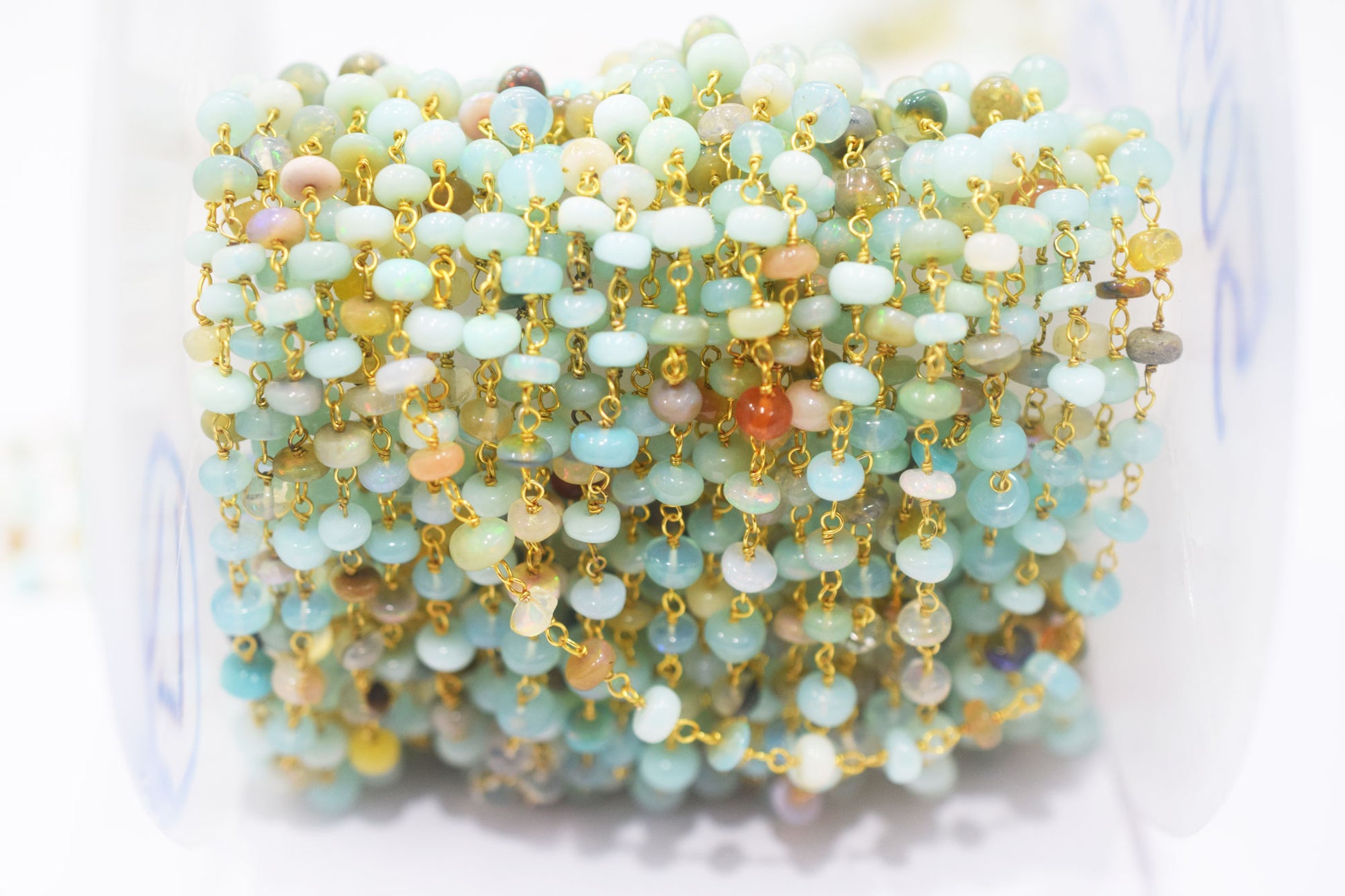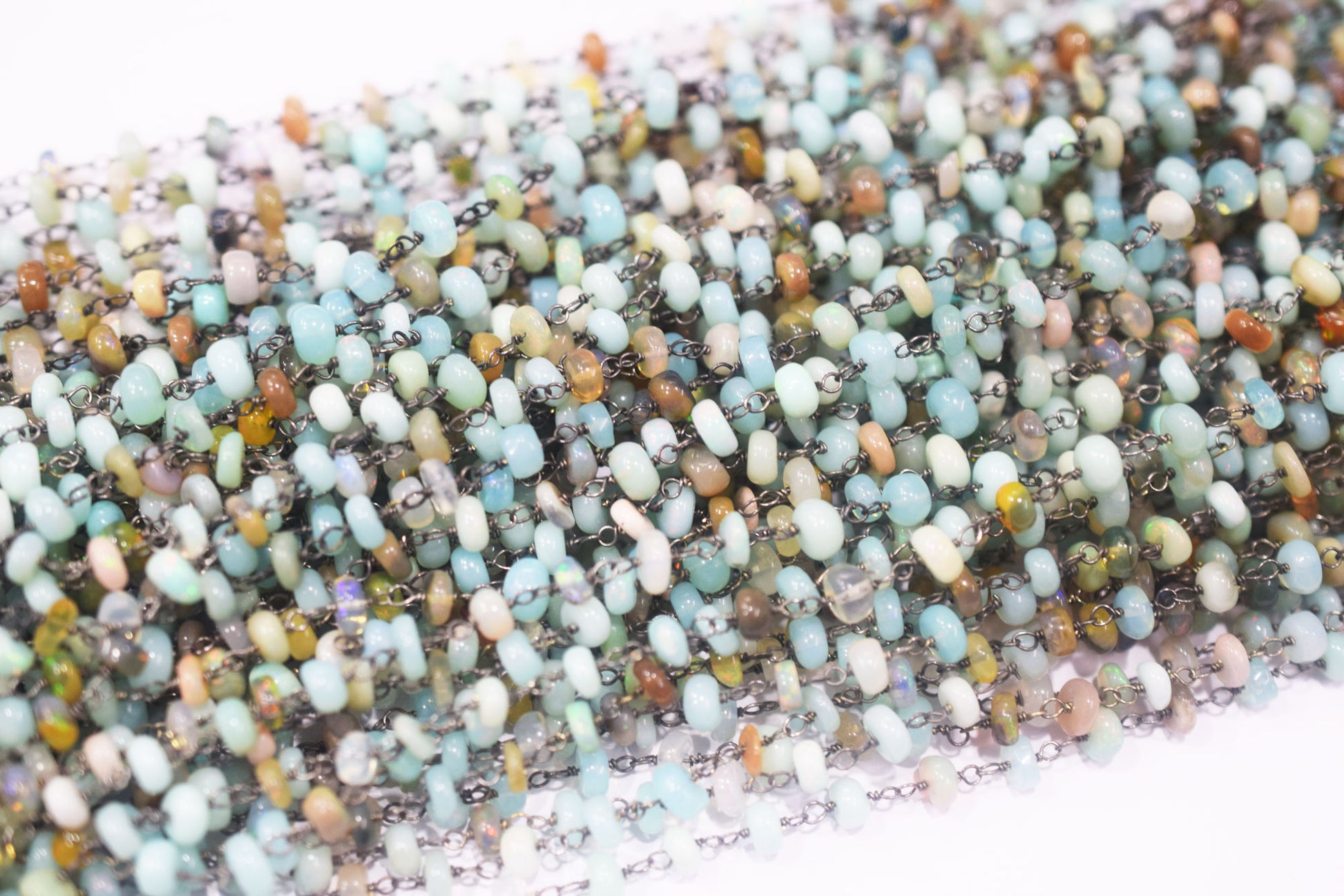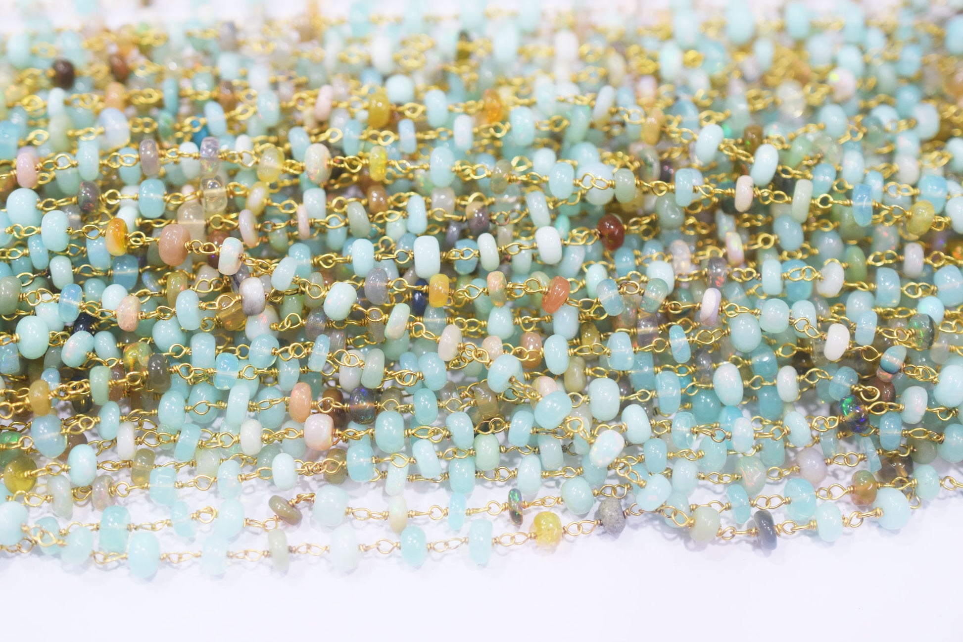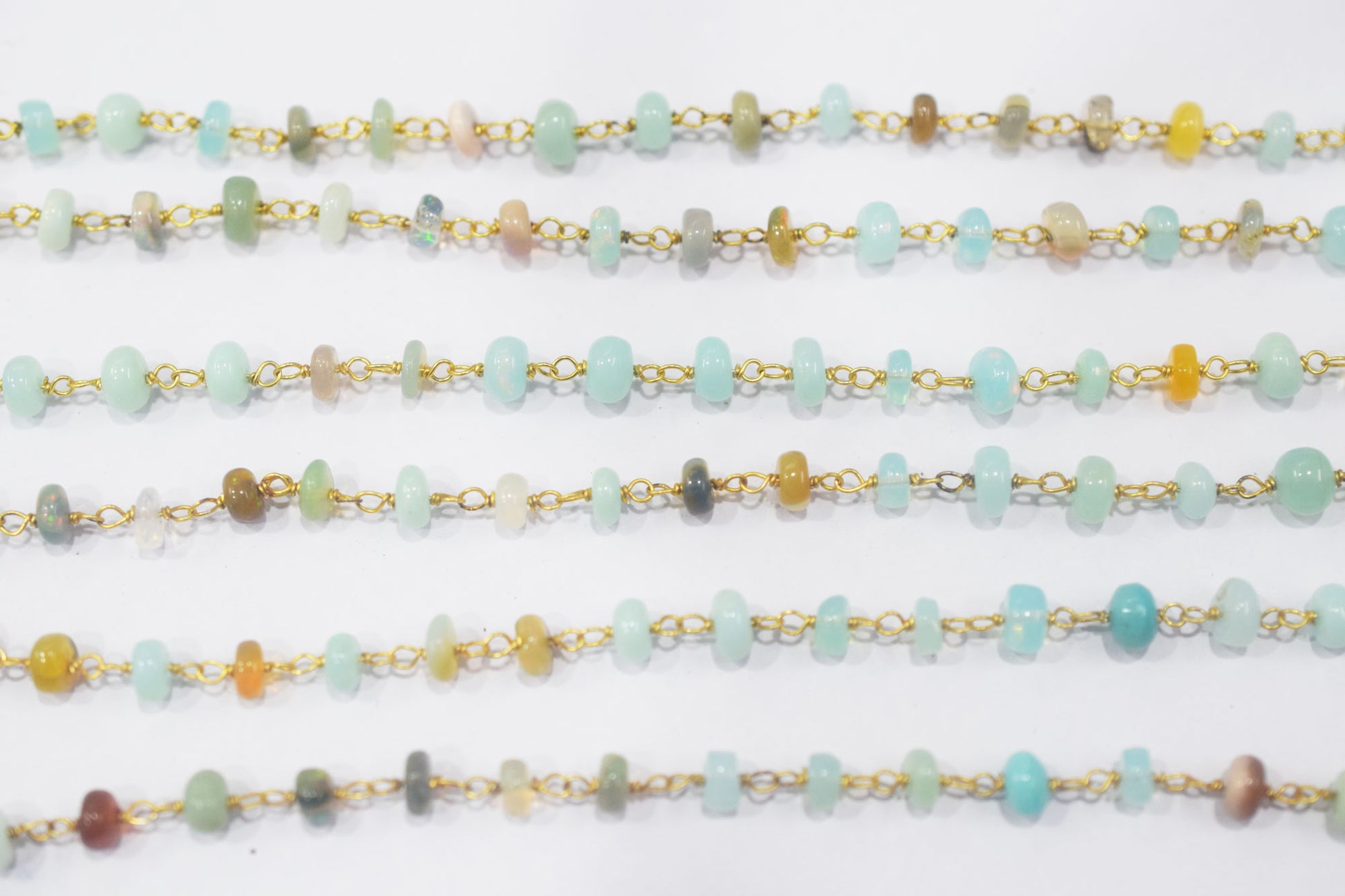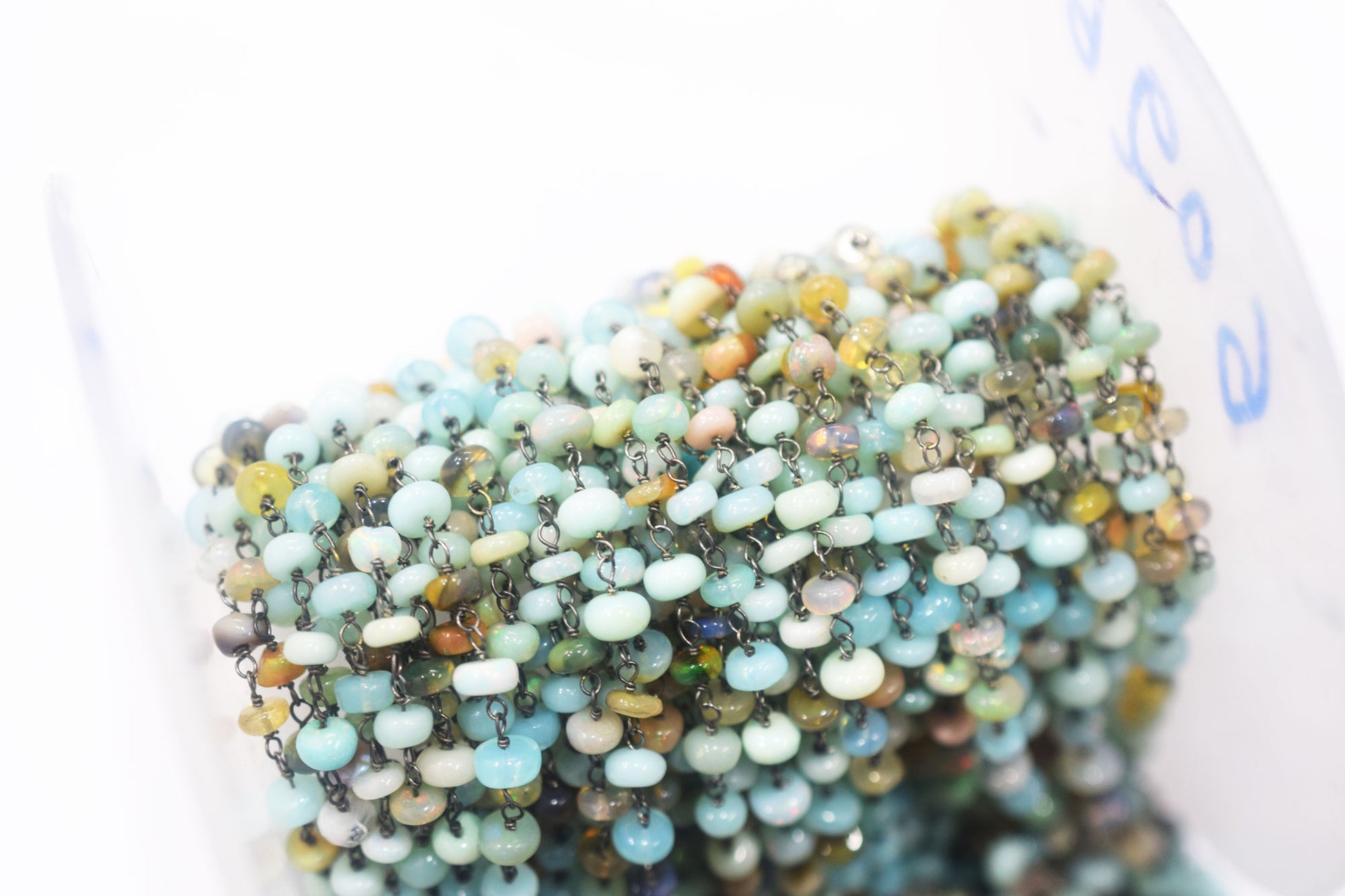 Ethiopian Opal Smooth Rondelle Shape Rosary Beaded Chain , Ethiopian Opal Wire Wrapped Chain , 3 - 5 mm , RB-6477