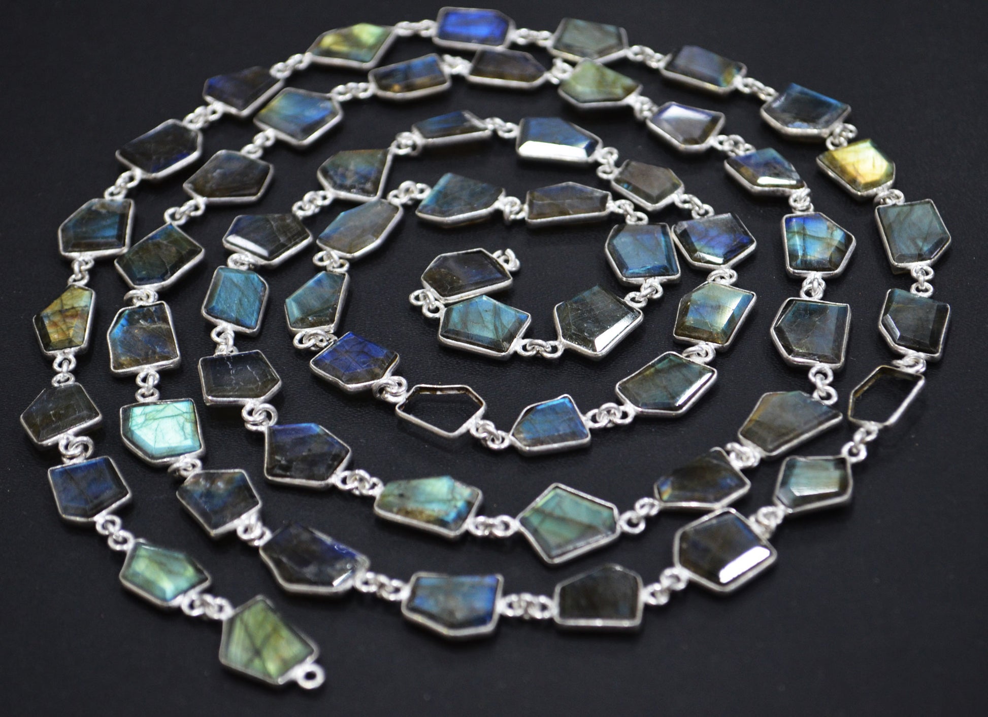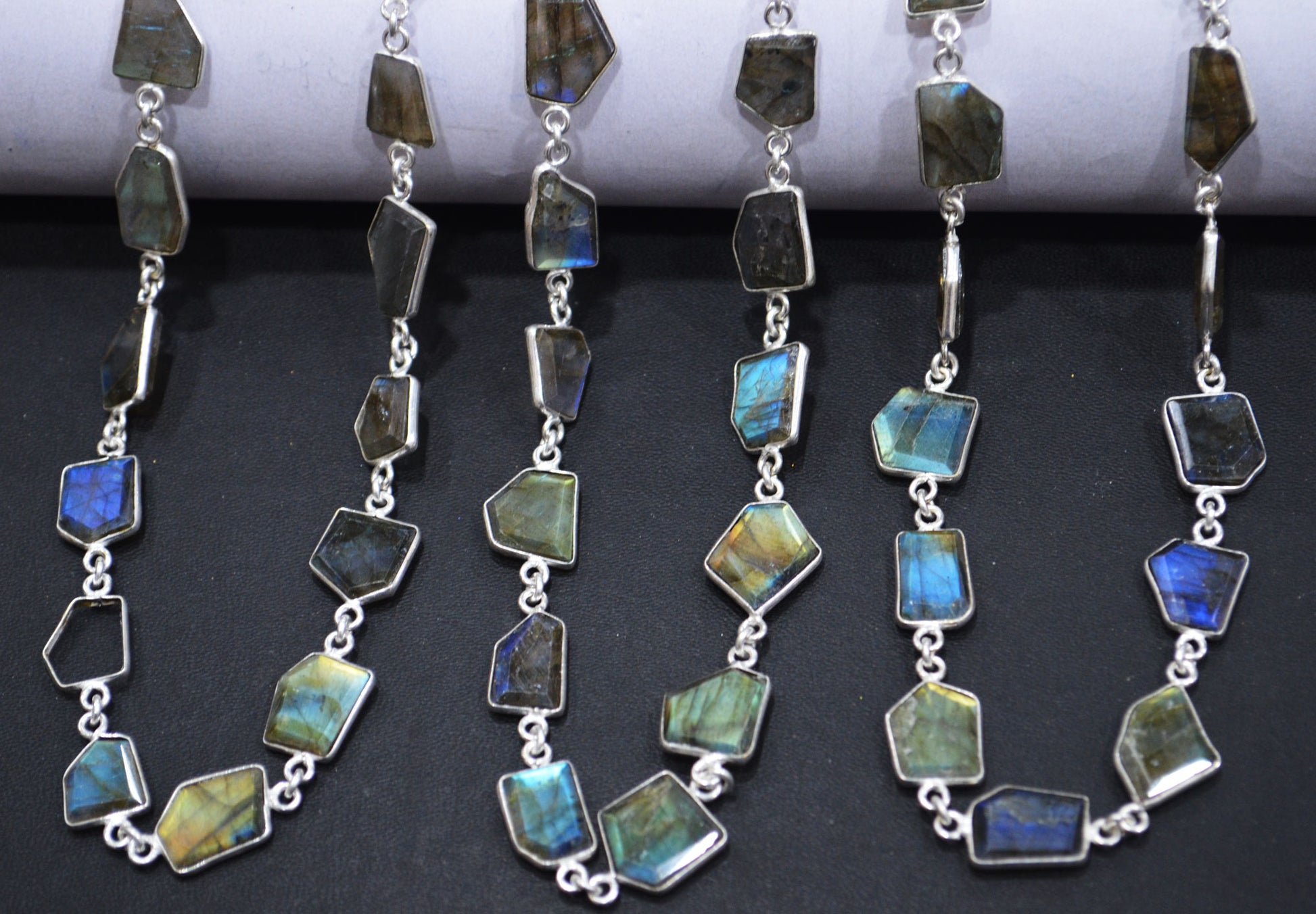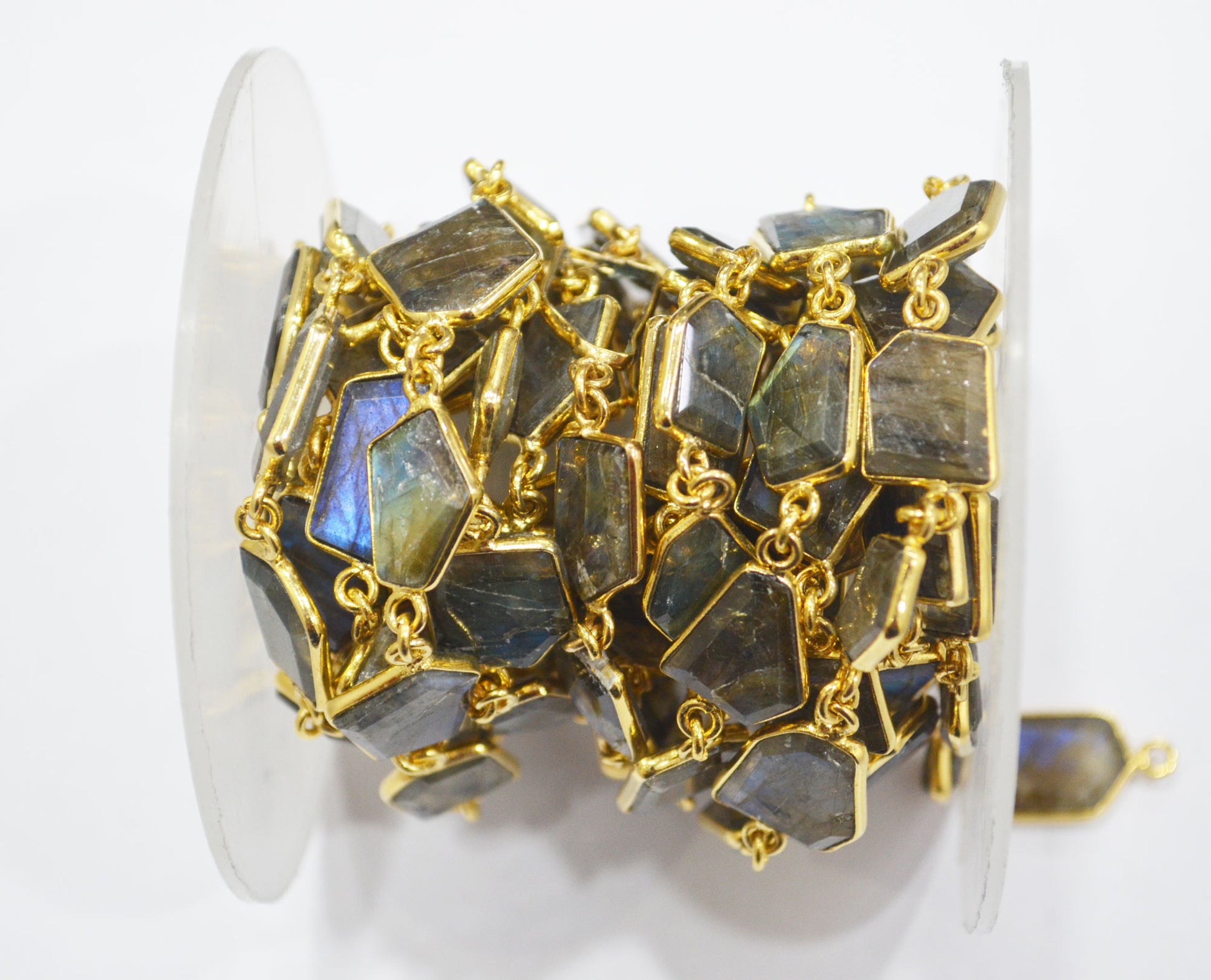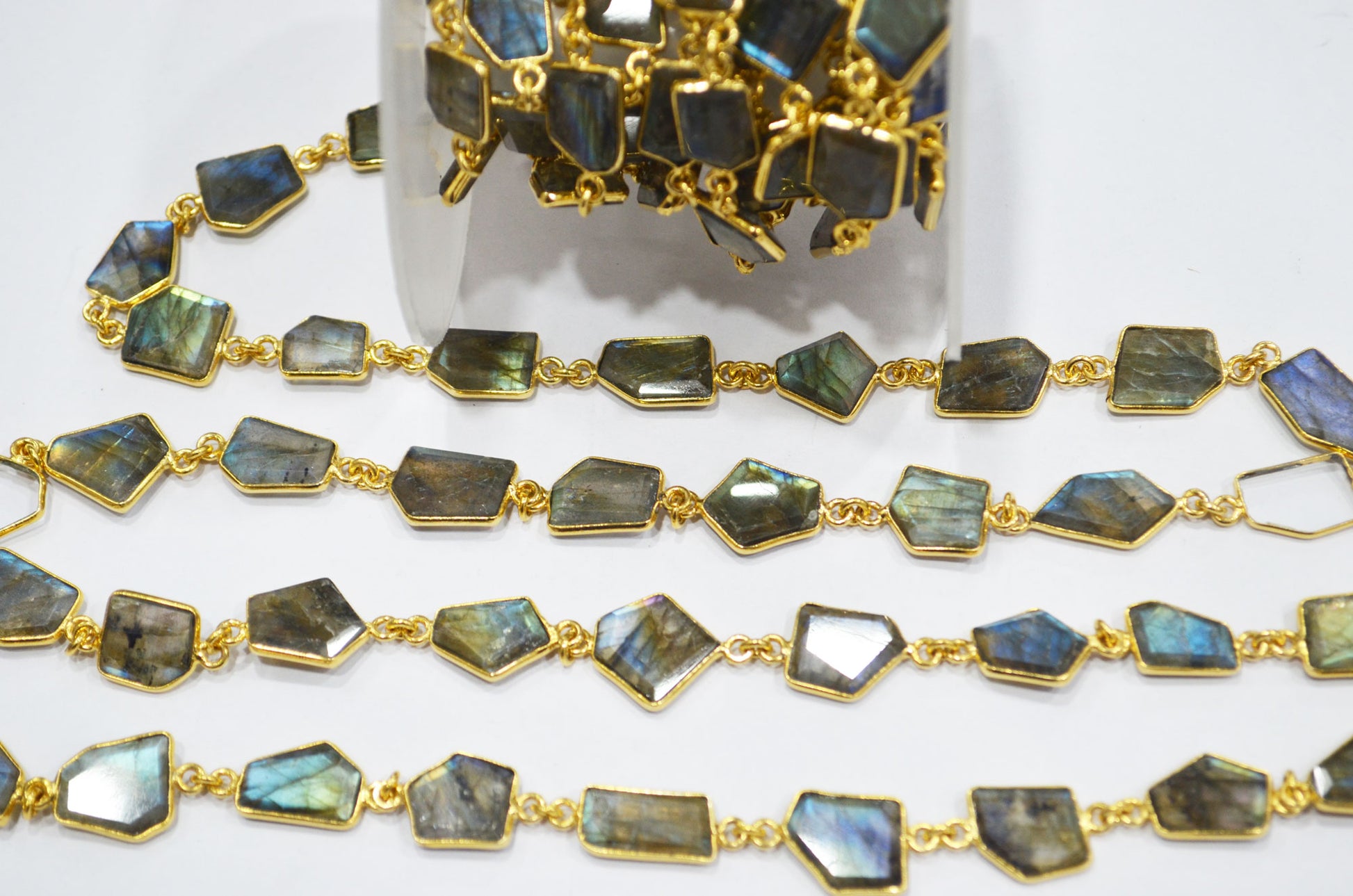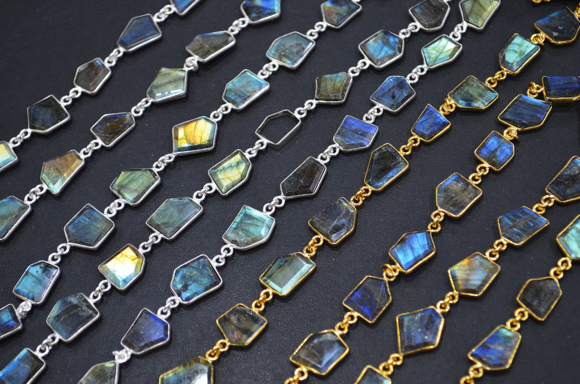 Flashy Labradorite Crown Cut Fancy Shape Connector Chain , Flashy Labradorite Bezel Link Chain , 10 - 15 mm , RB-6497