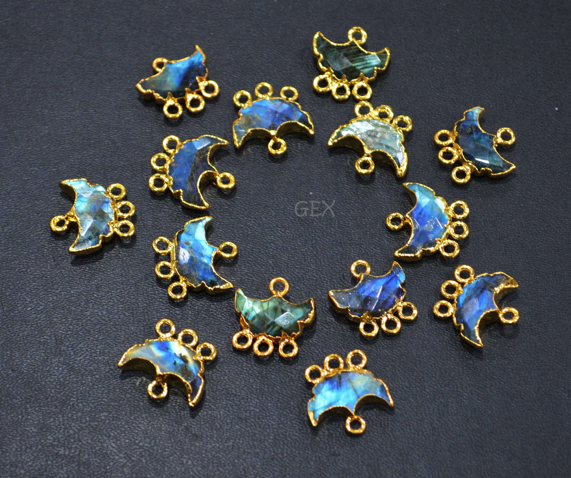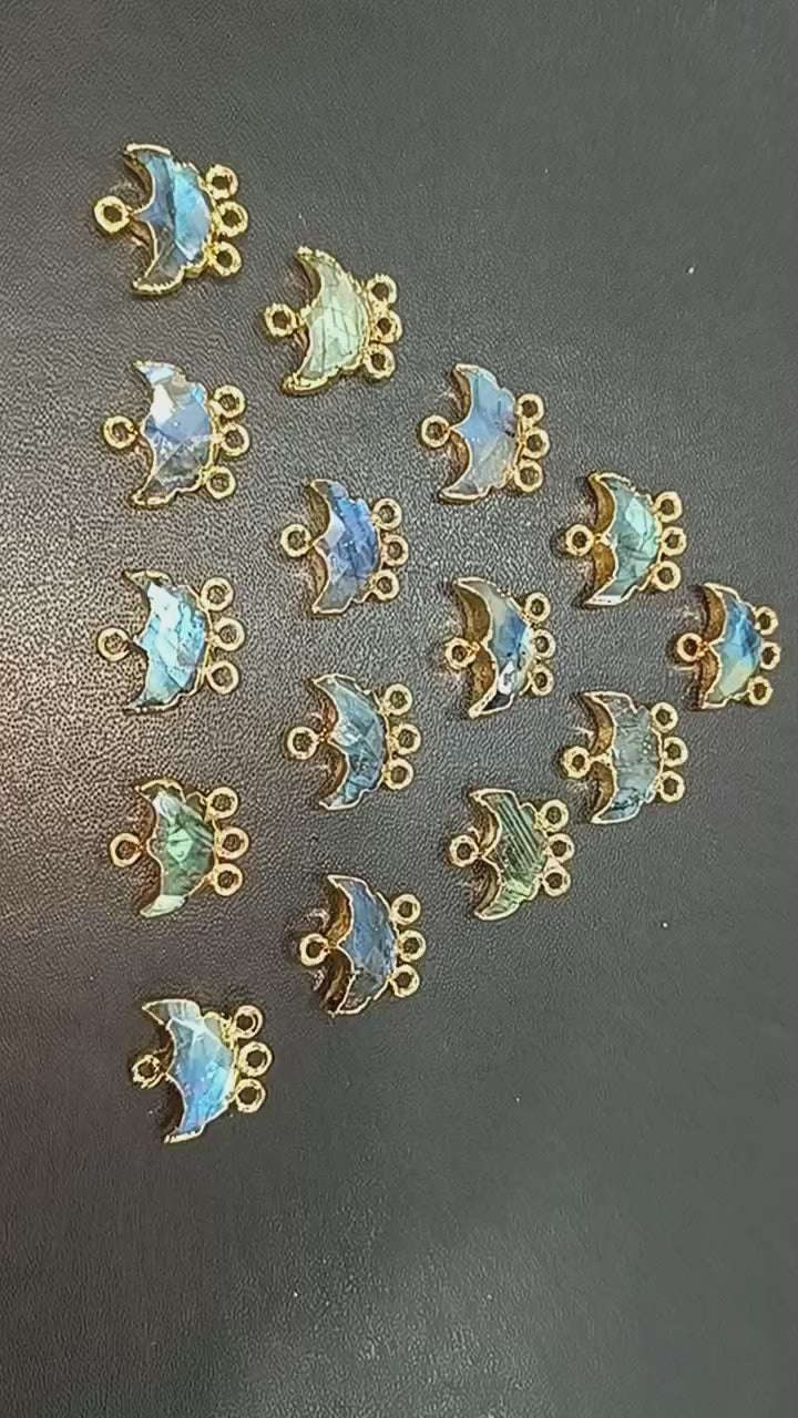 Flashy Labradorite Electroplated Half Moon Shape Connector , Labradorite Four Bail Faceted Connector Charm , Sold By Piece , 15 - 16 mm , 31904