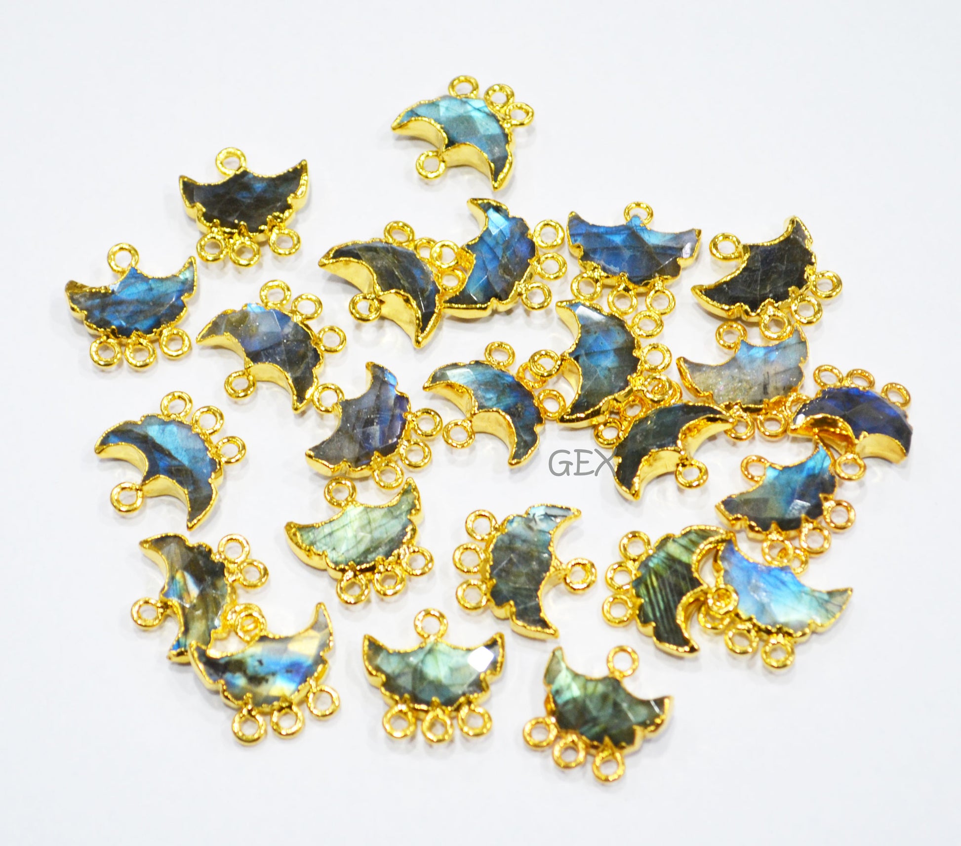 Flashy Labradorite Electroplated Half Moon Shape Connector , Labradorite Four Bail Faceted Connector Charm Β , Sold By Piece , 15 - 16 mm , 31904
