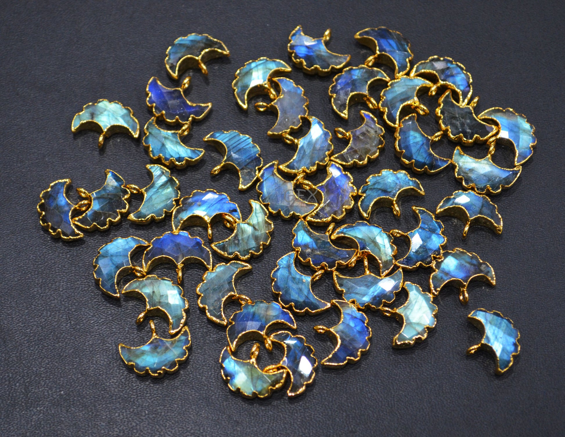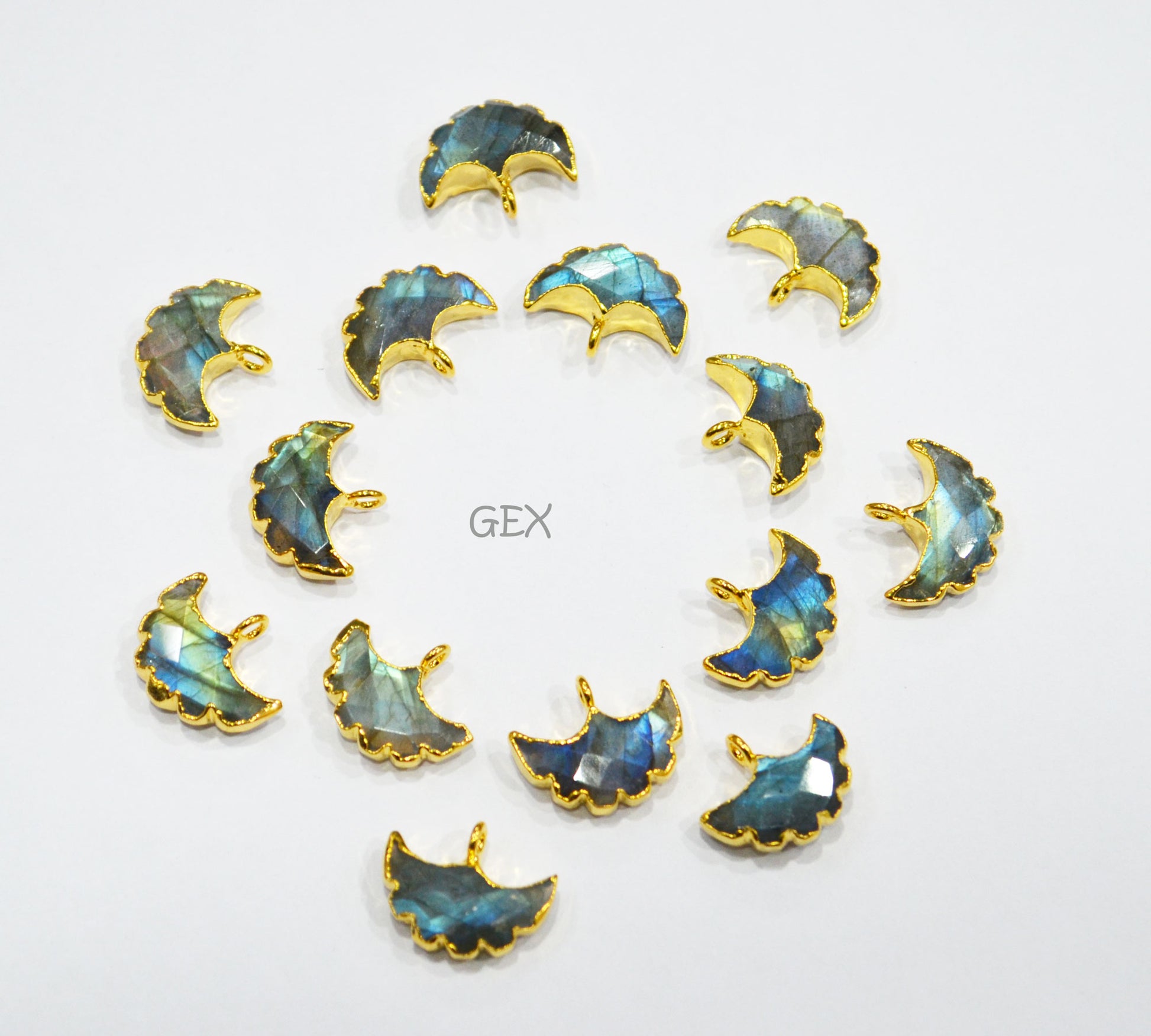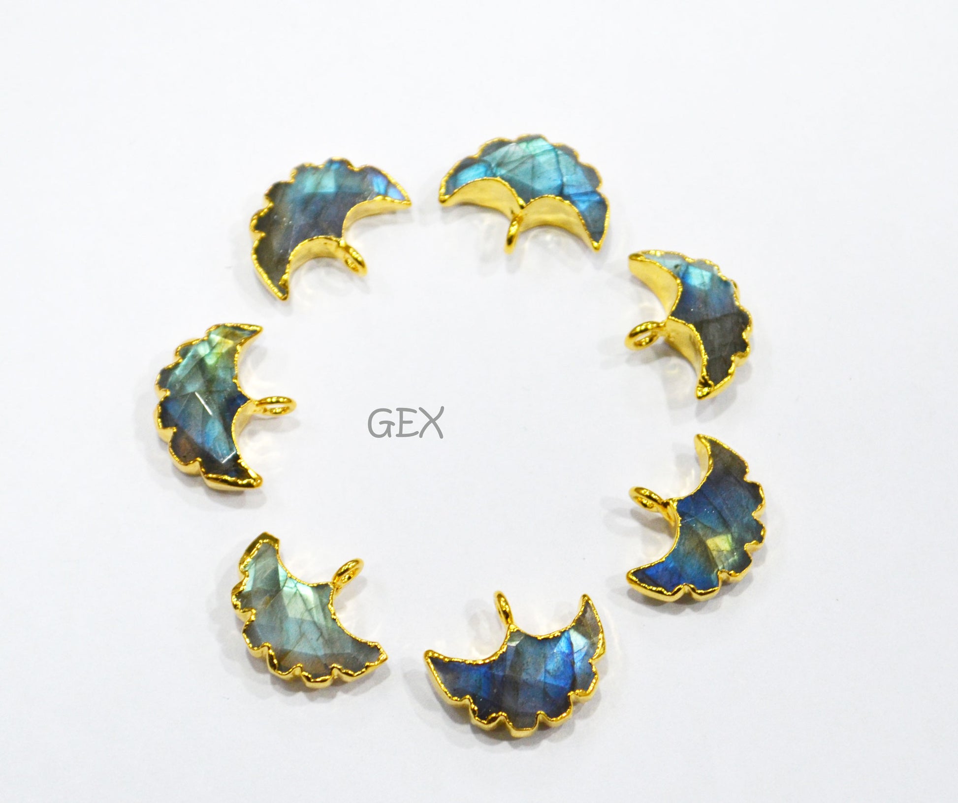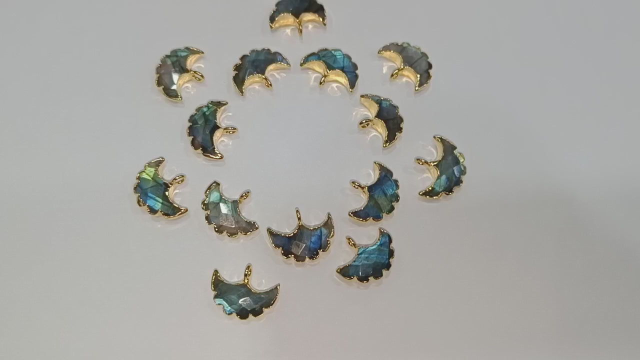 Flashy Labradorite Electroplated Half Moon Shape Connector , Labradorite Single Bail Faceted Connector Charm Β , Sold By Piece , 15 - 16 mm , 31933