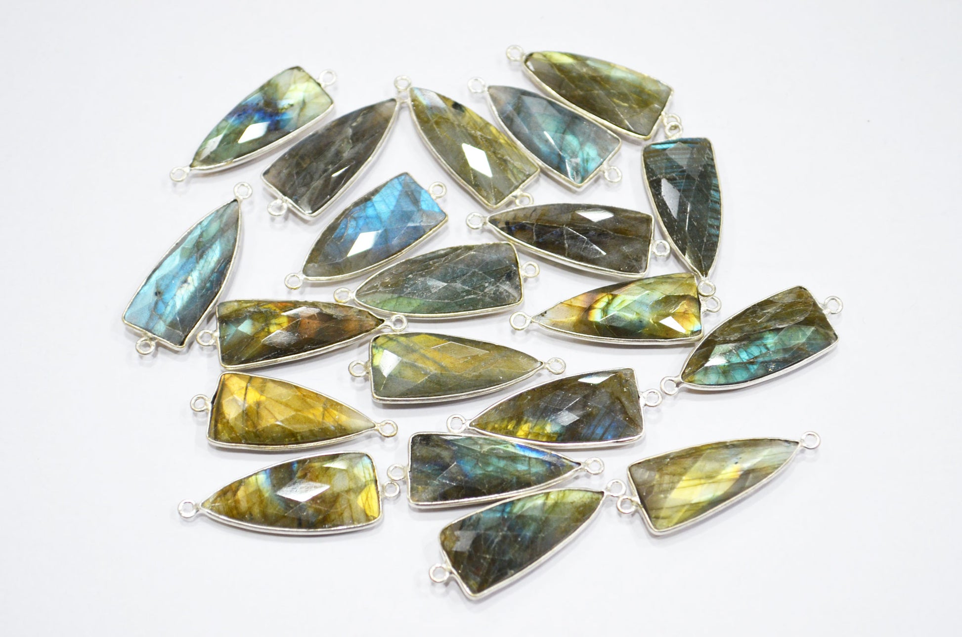 Flashy Labradorite Faceted Arrowhead Shape Double Bail Connector , Flashy Labradorite Arrowhead Shape Bezel Connector , Sold By Piece , 13x35 mm , RB-5865