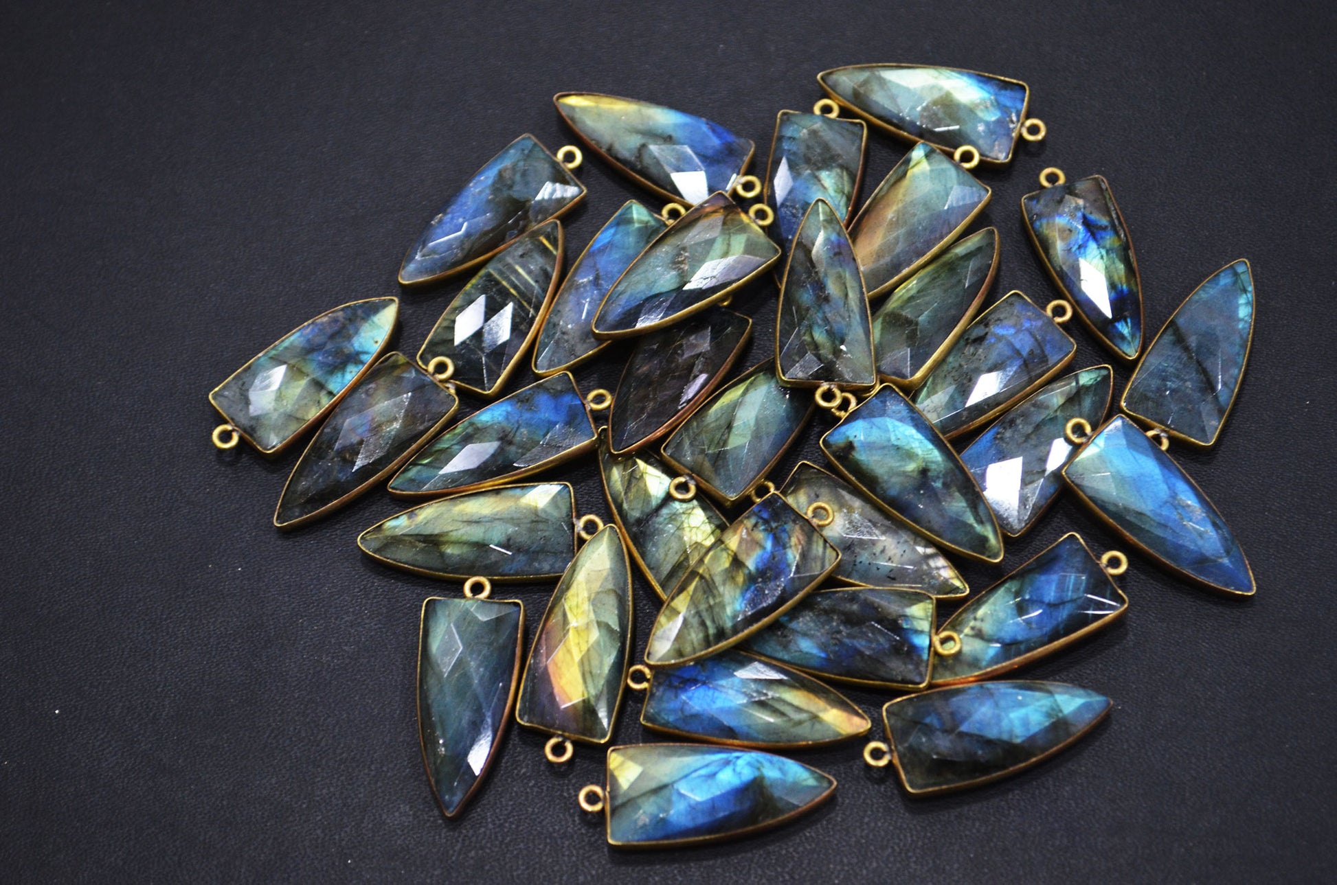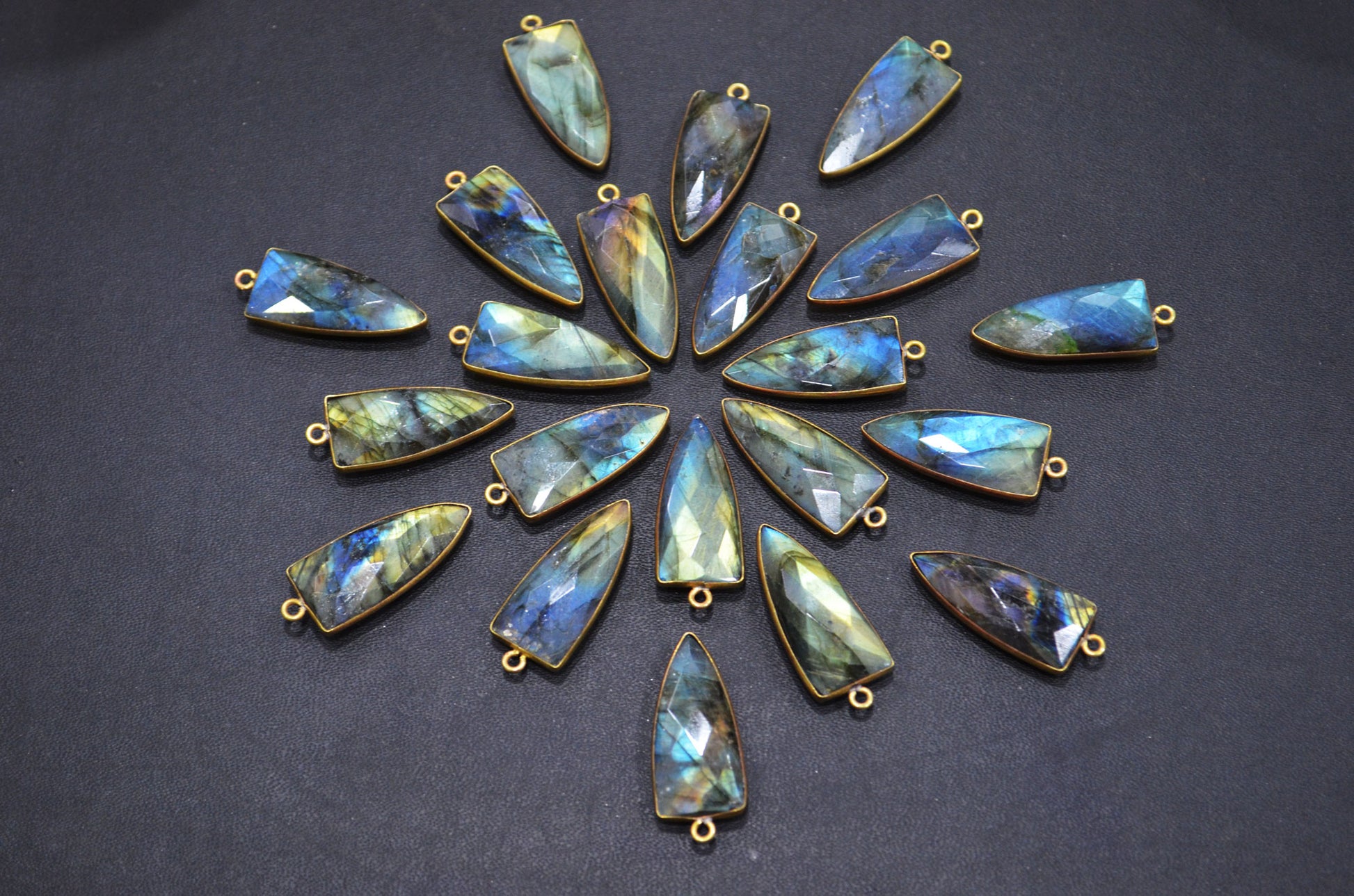 Flashy Labradorite Faceted Arrowhead Shape Single Bail Connector , Sold By Piece , 13x32 mm , RB-5866