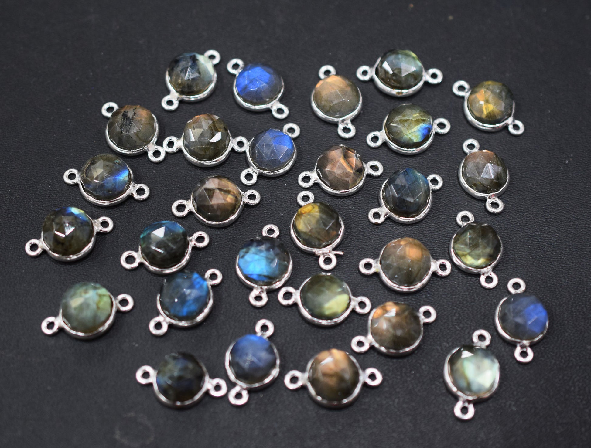 Flashy Labradorite Faceted Coin Shape Connector , Sold By Piece , 10 mm , RB-6624