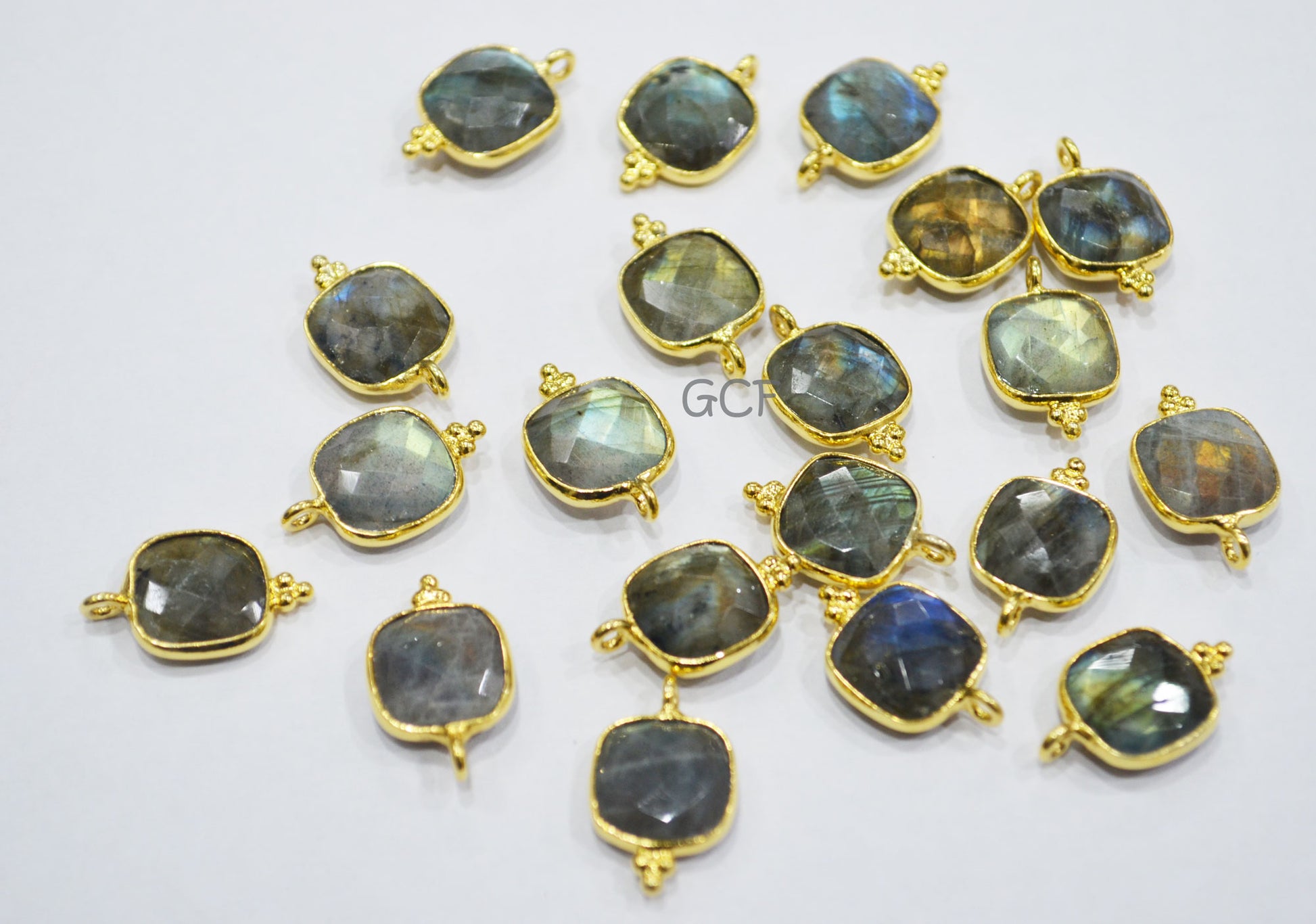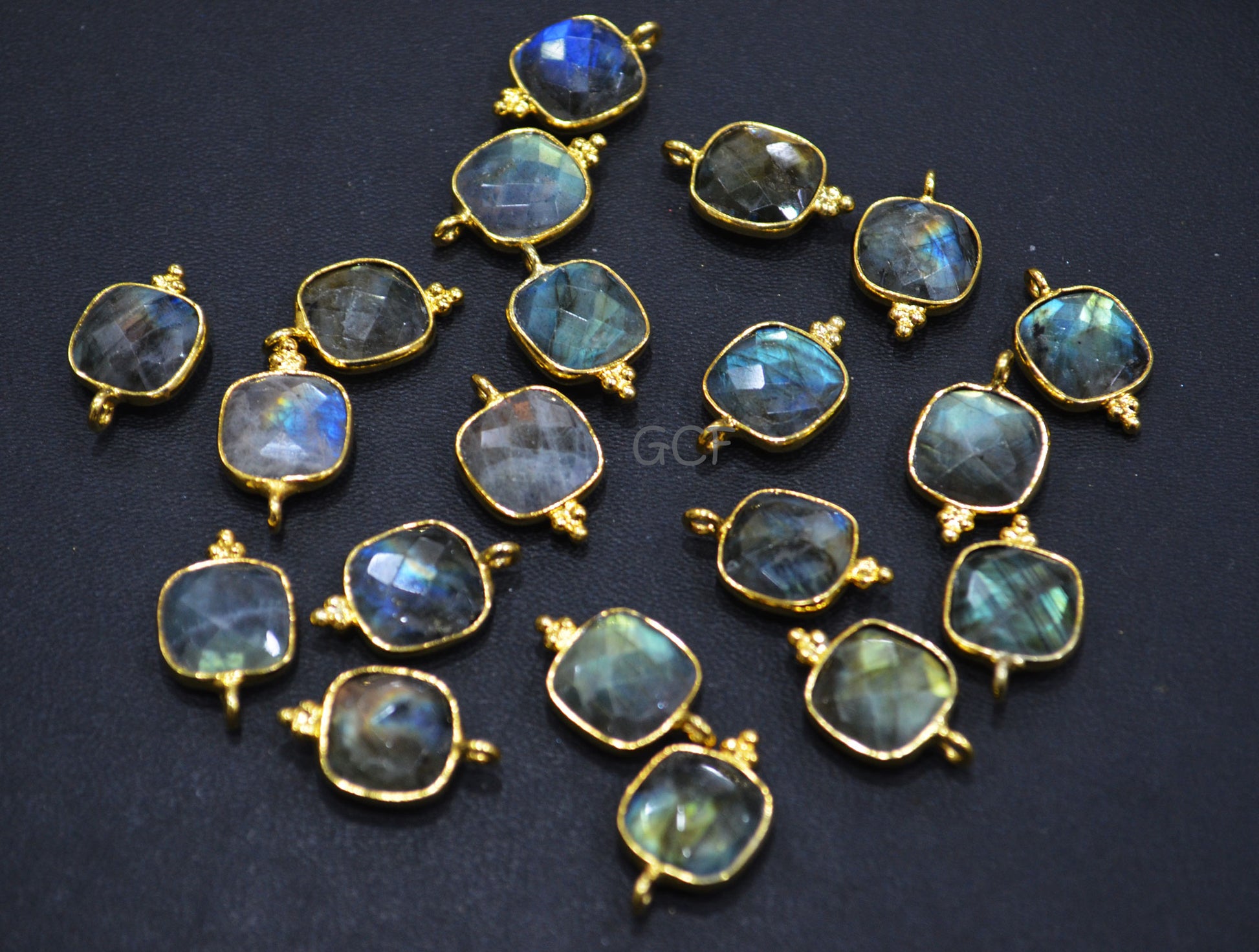 Flashy Labradorite Faceted Cushion Shape Connector , Labradorite Single Bail Bezel Connector , Sold By Piece , 11 mm , RB-6911