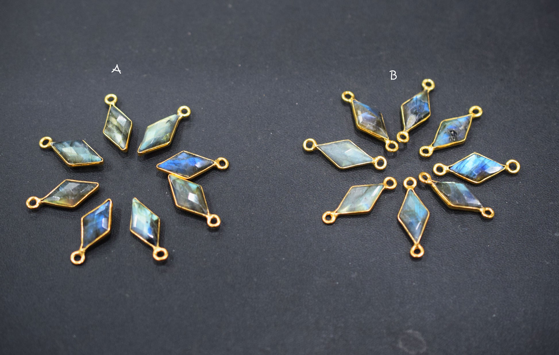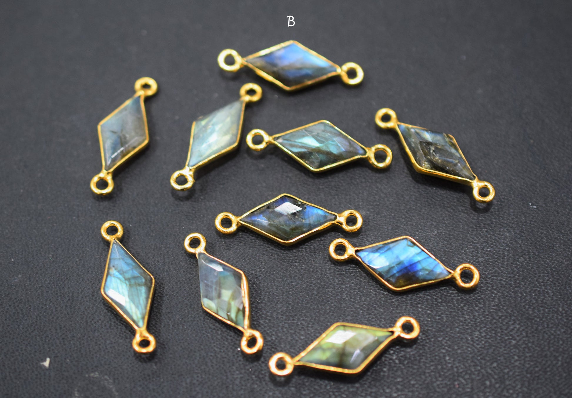 Labradorite Faceted Diamond Shape Double Bail Connector , Labradorite Single Bail Bezel Connector , Sold By Piece , 17 mm , RB-6644