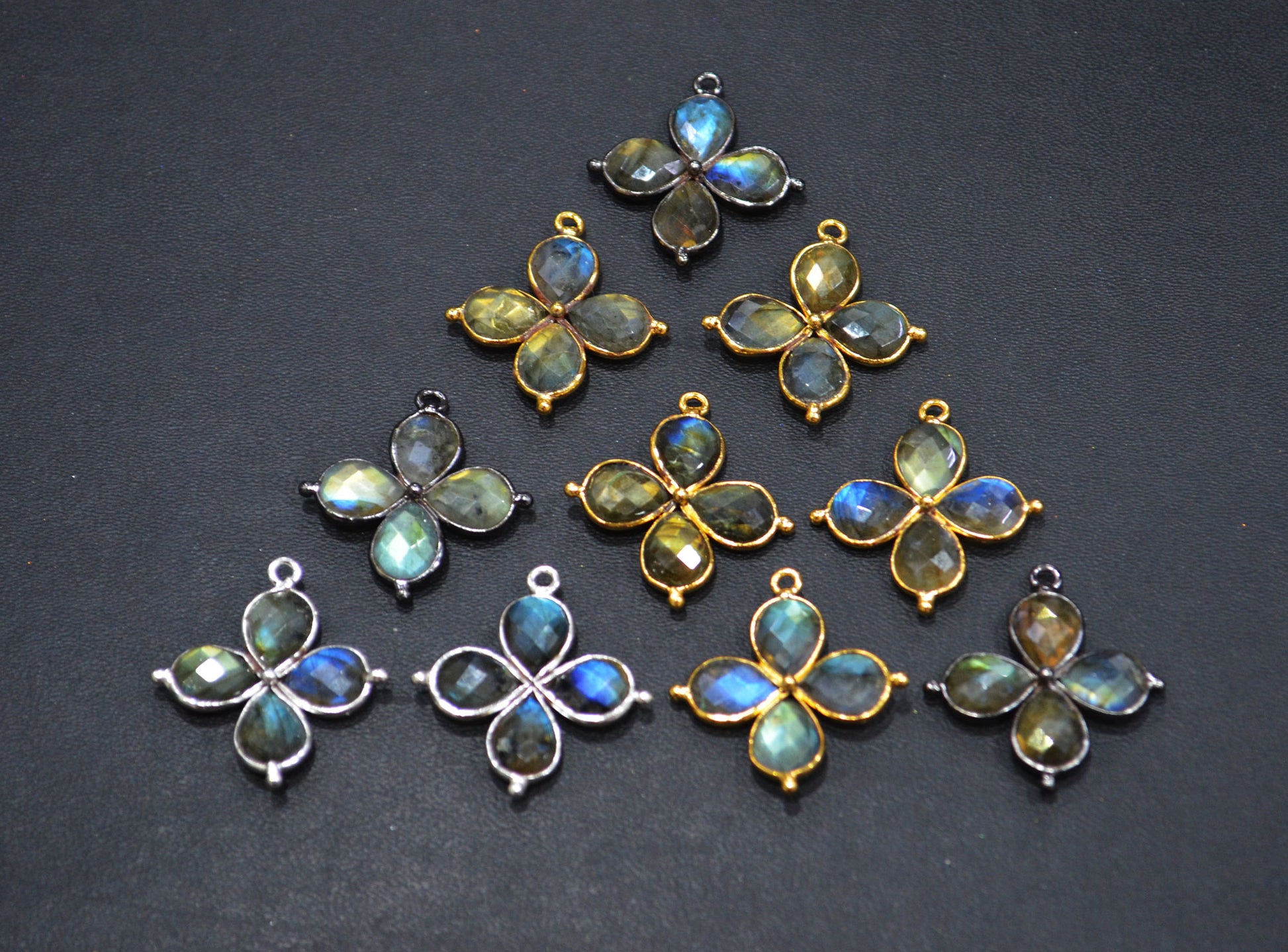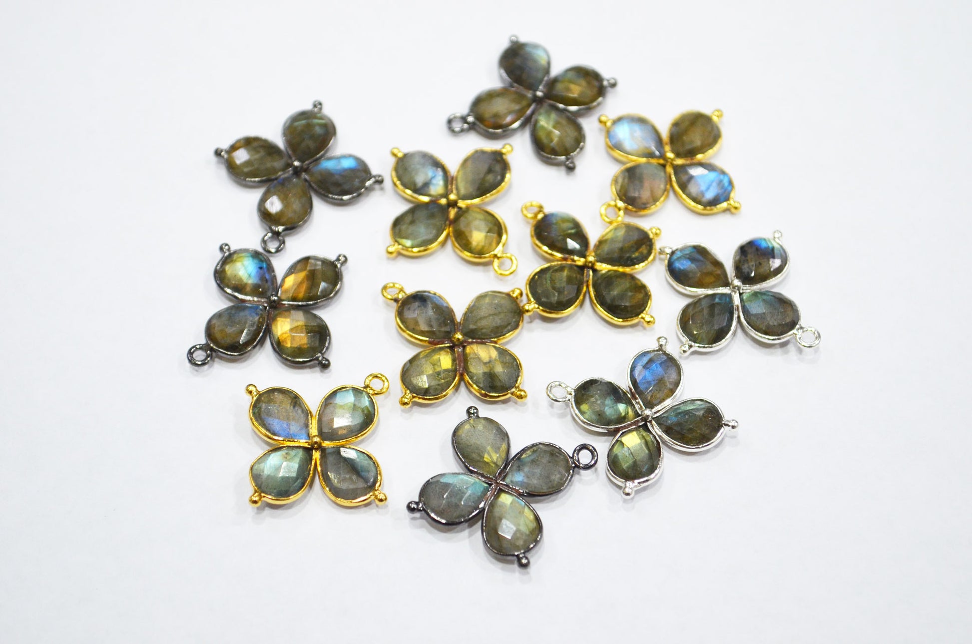 Flashy Labradorite Faceted Fancy Butterfly Shape Single Bail Connector , Sold By Piece , 25x27 mm , R-035