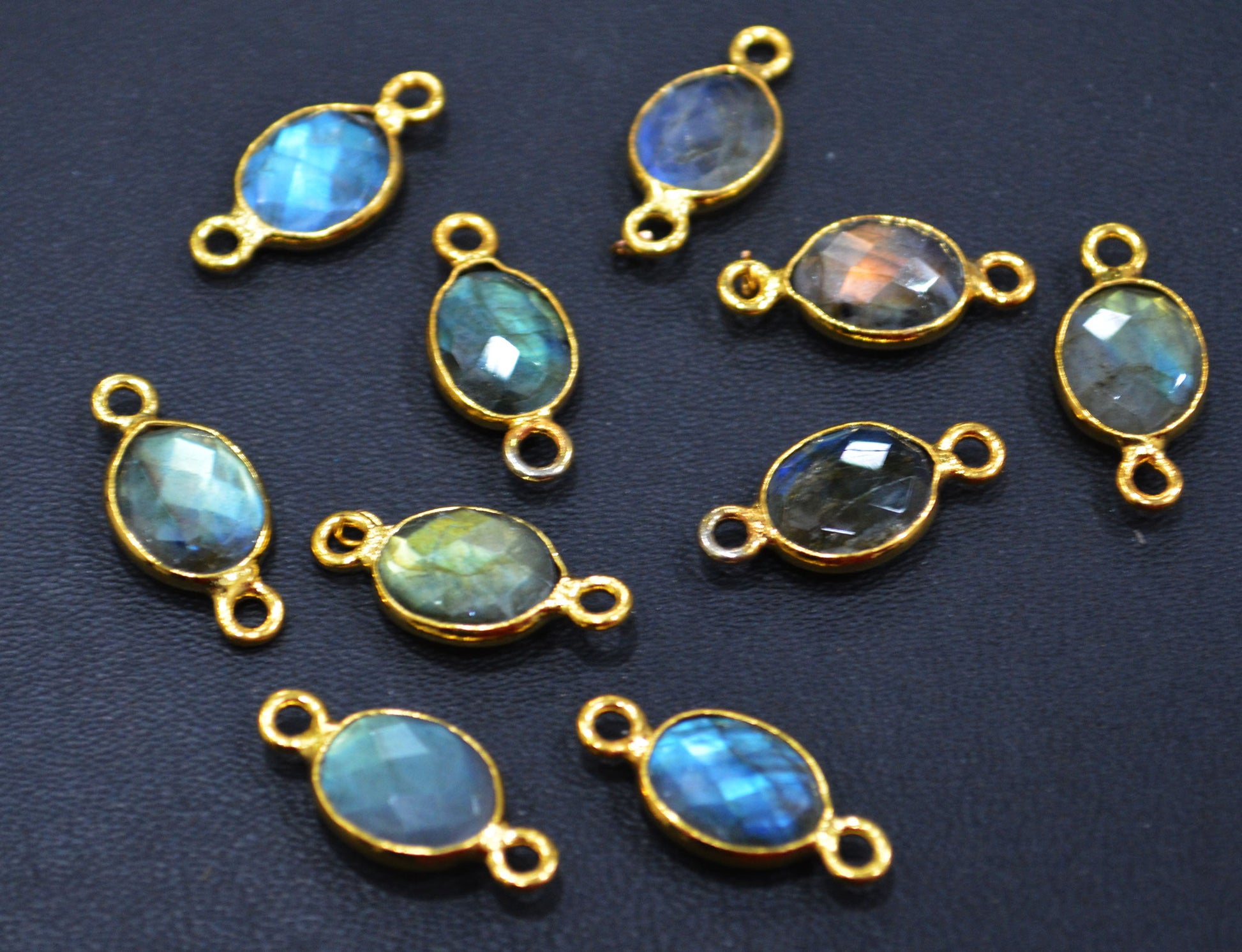 Flashy Labradorite Faceted Oval Shape Double Bail Connector With 1 Gm Gold Plating Charm ,Sold By PieceΒ ,Ready Component ,10x9 mm , RB-6791