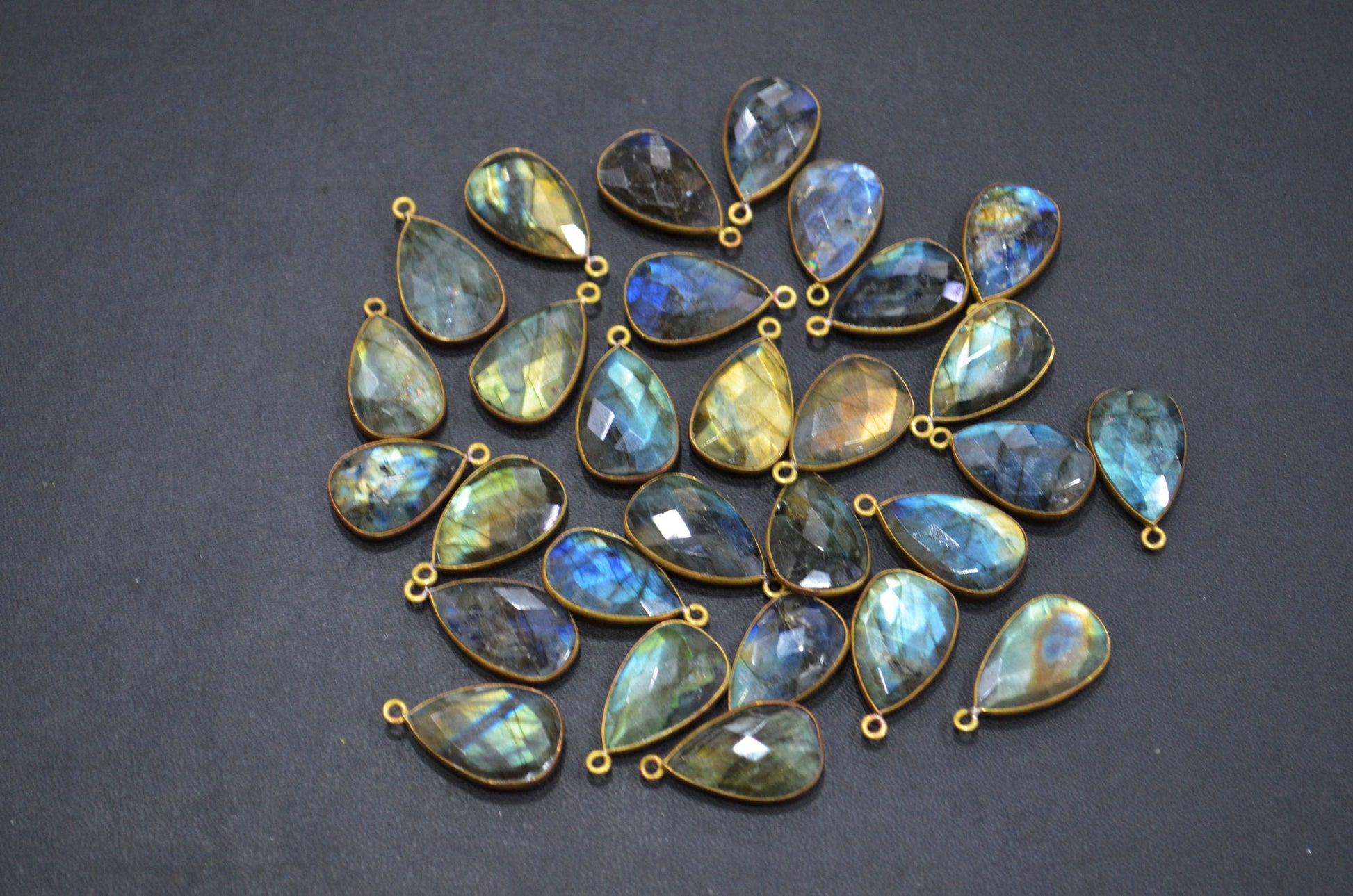 Flashy Labradorite Faceted Pear Shape Connector , Labradorite Single Bail Bezel Connector , Sold By Piece ,13x20 mm , RB-5407
