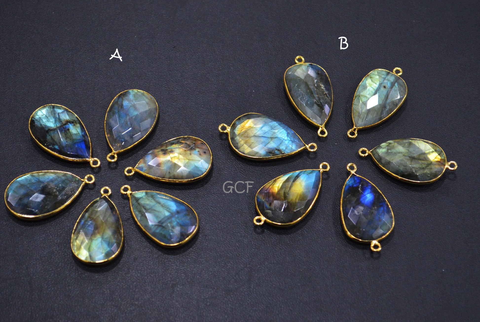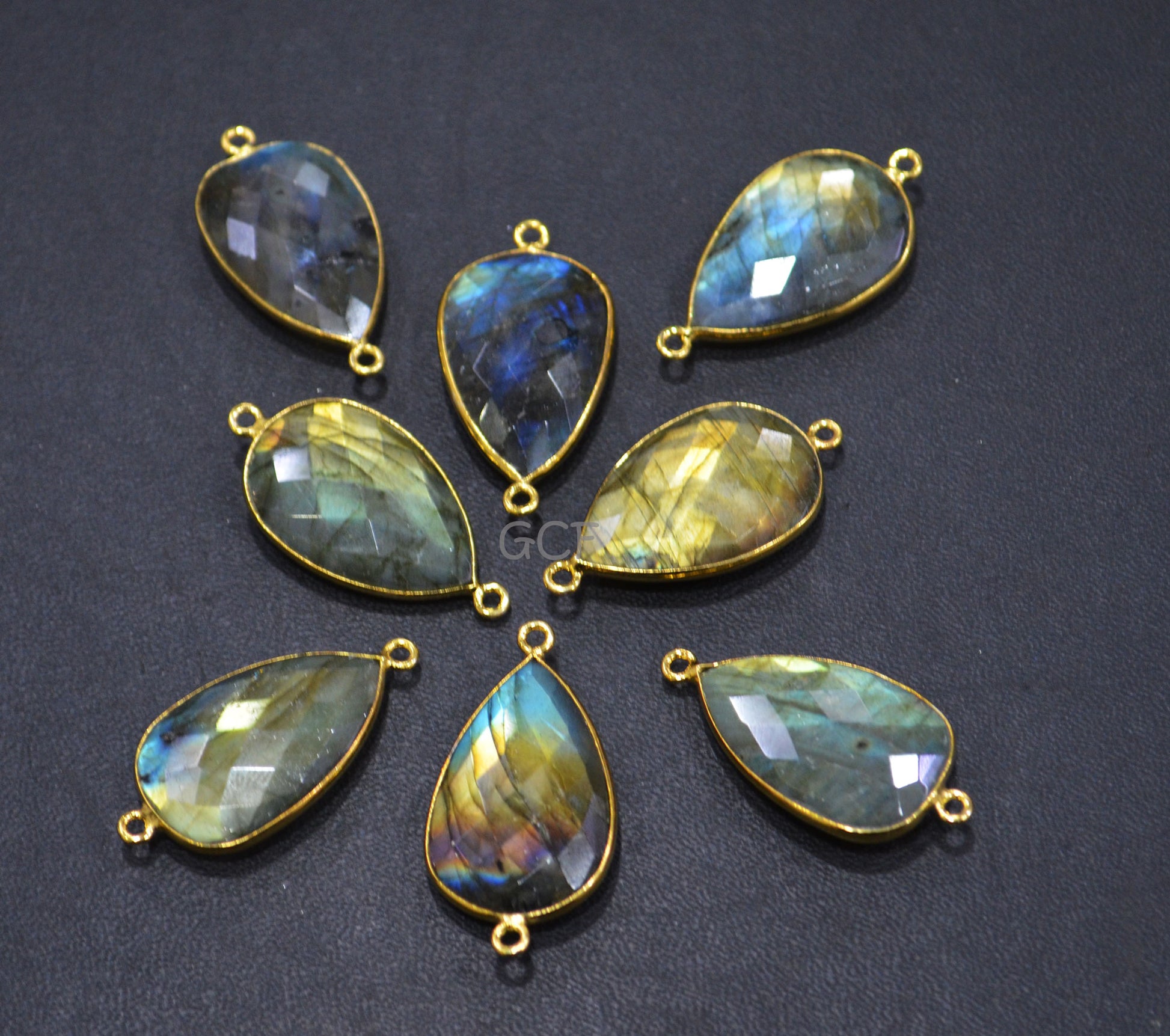 Flashy Labradorite Faceted Pear Shape Double Bail Connector , Labradorite Single Bail Bezel Connector , Sold By Piece , 18x21 mm , RB-7148