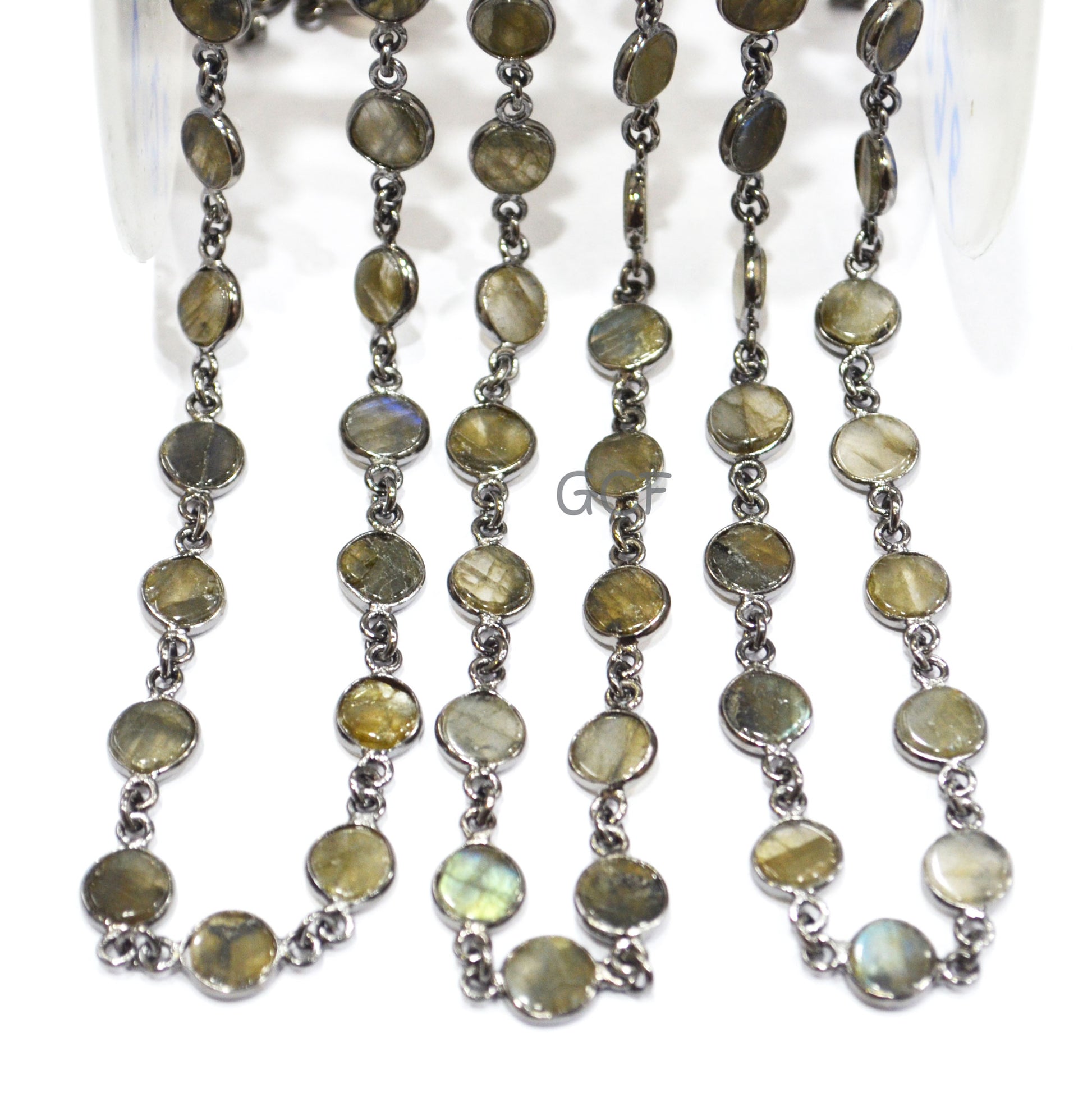 Flashy Labradorite Smooth Coin Shape Connector Chain , Labradorite Coin Shape Bezel Link Chain , 8 - 9 mm , 6866