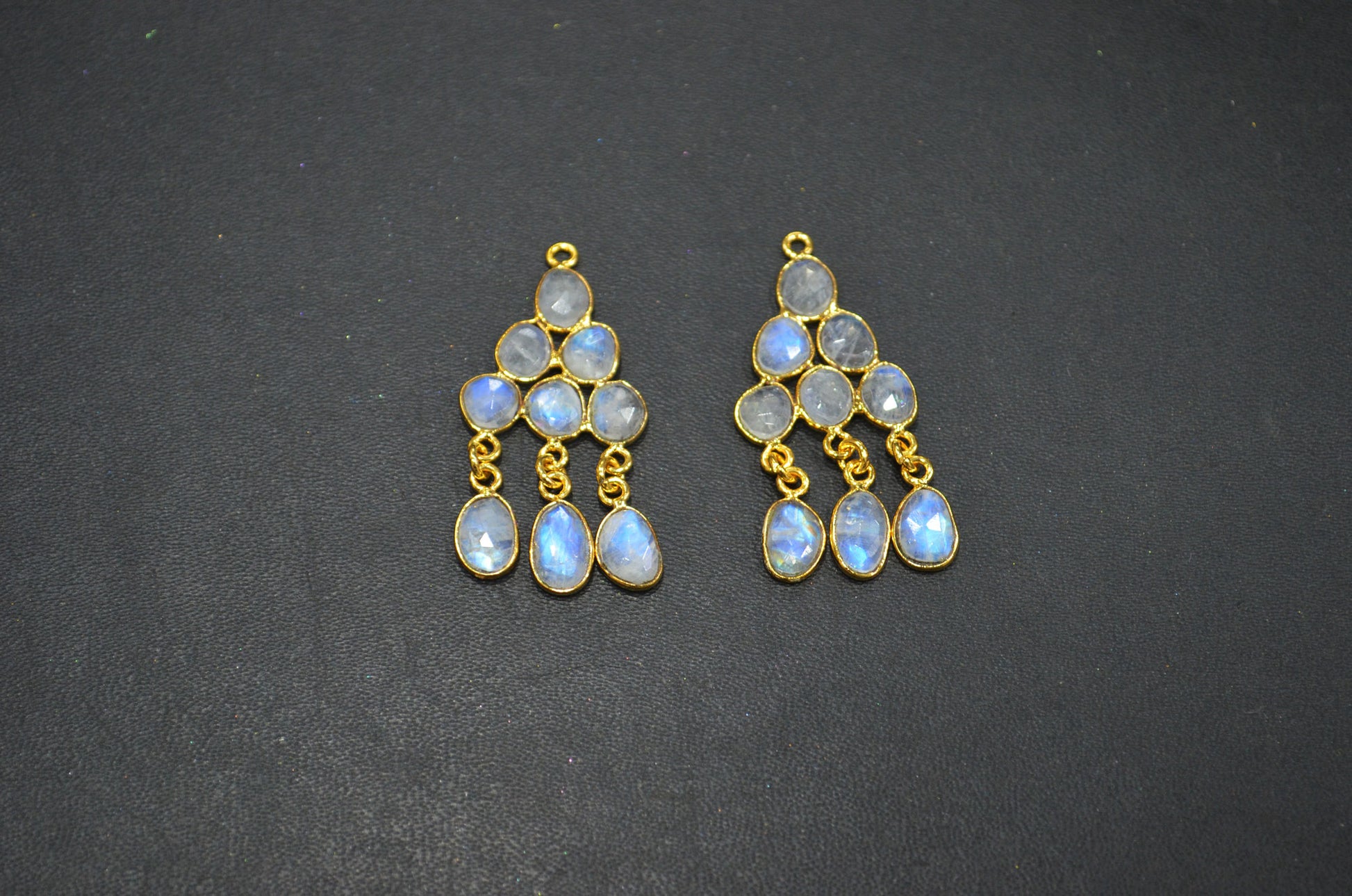 Flashy Rainbow Moonstone Faceted Slice Shape Fancy Connector , Flashy Rainbow Moonstone Single Bail Bezel Charm Connector , Sold By Pair Β , 40 - 43 mm , R-033