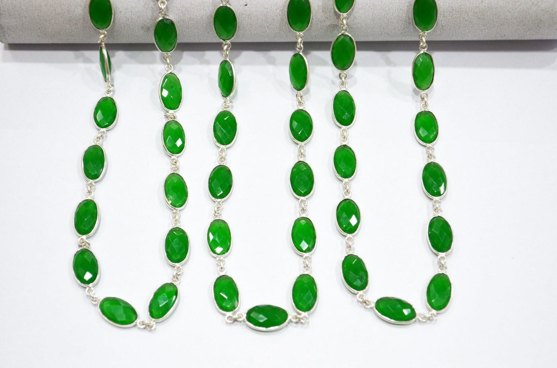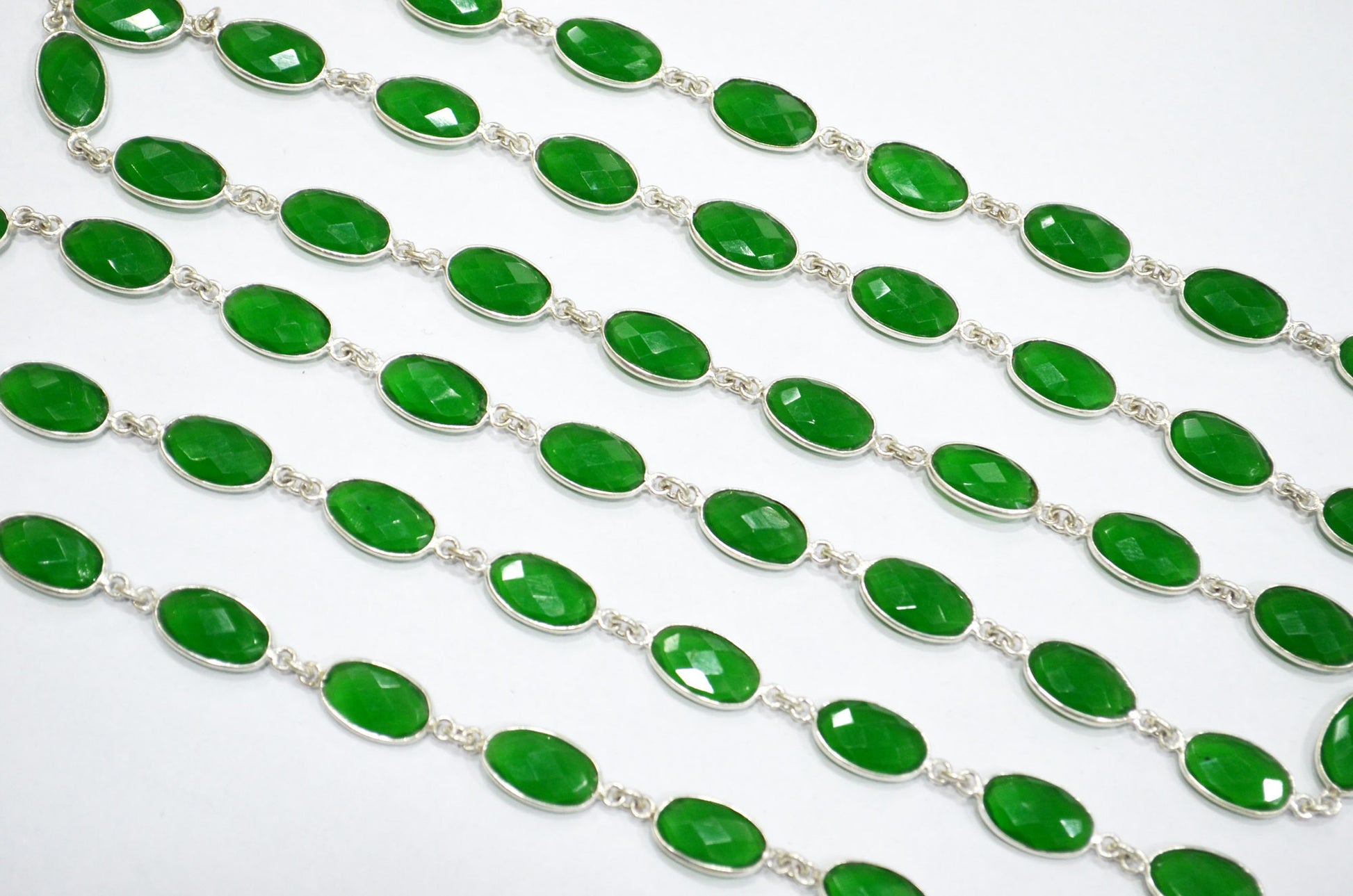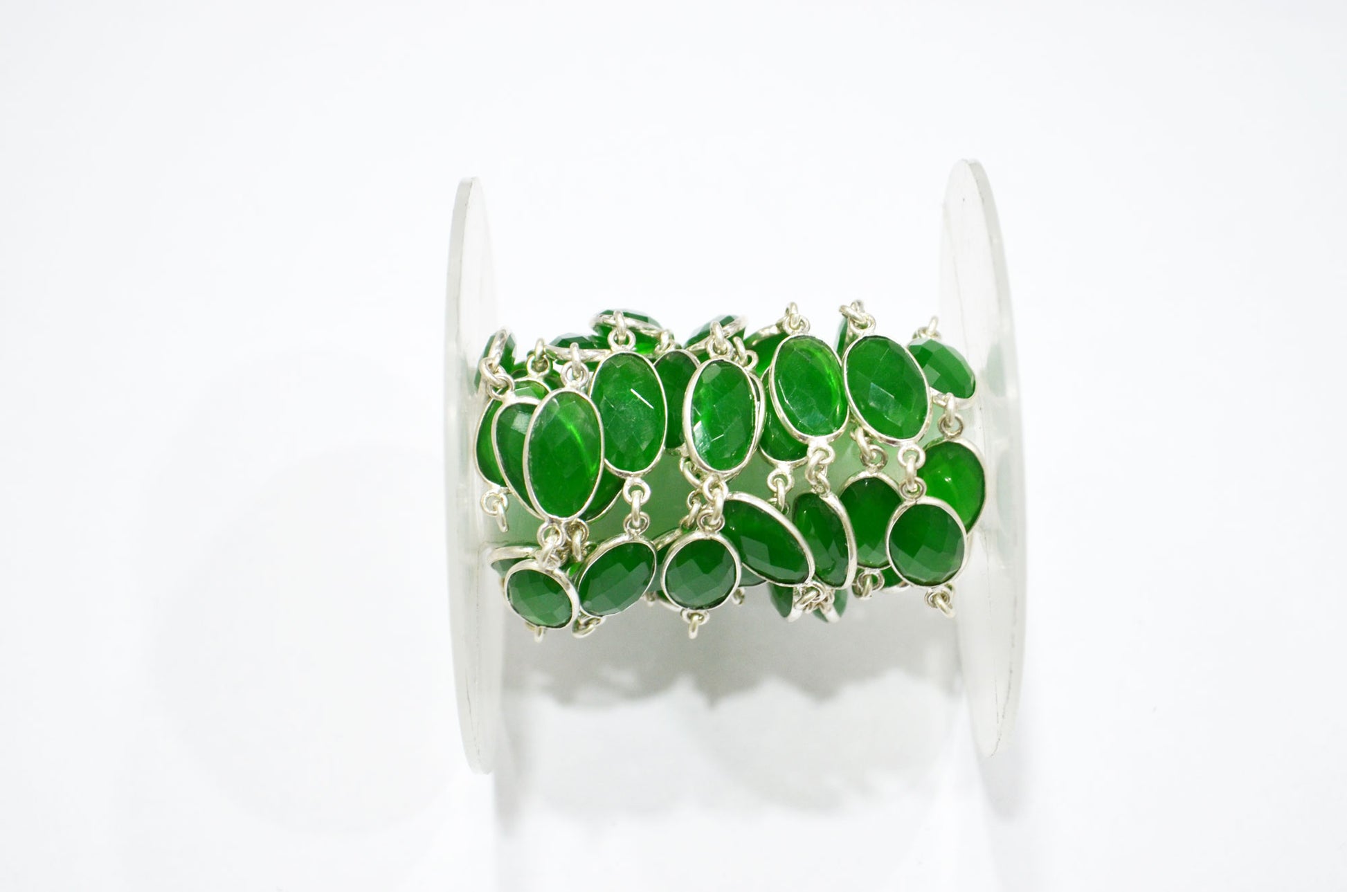 Forest Green Hydro Quartz Faceted Oval Shape Connector Chain , Forest Green Hydro Quartz Bezel Link Chain , 9x13 mm , RB-5707