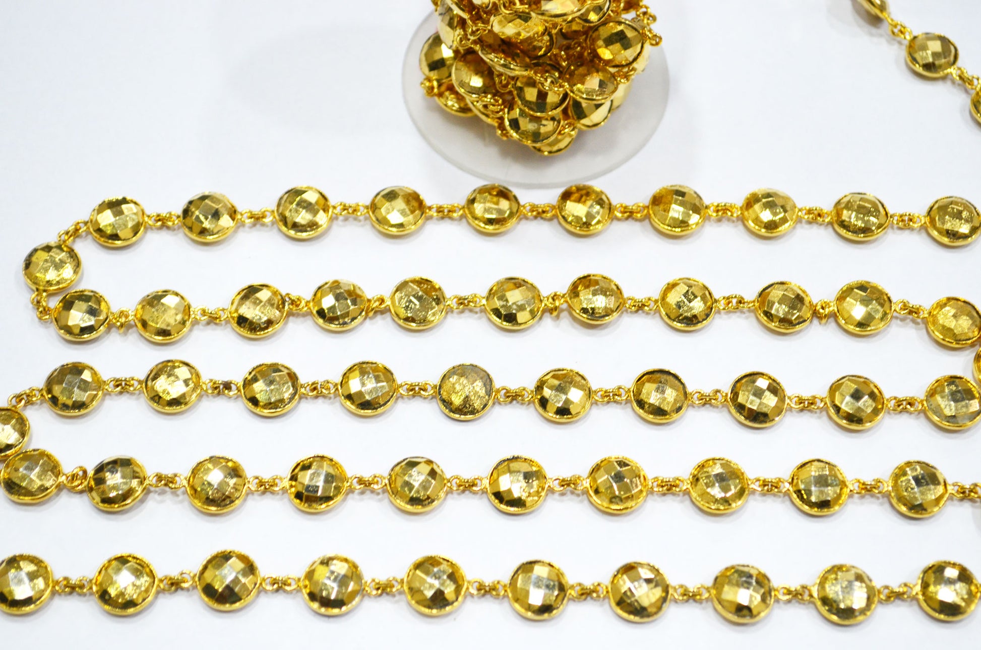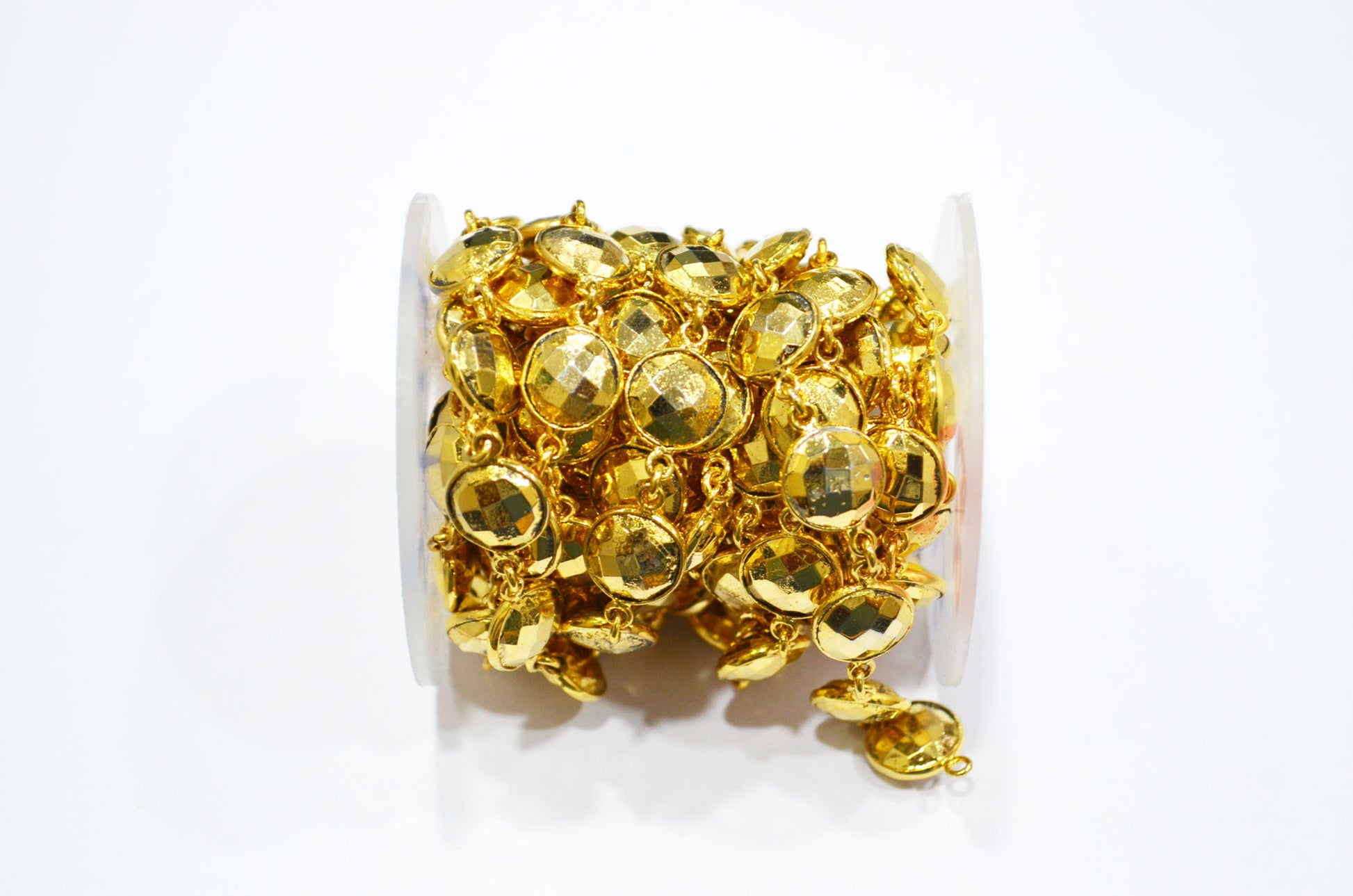 Gold Pyrite Faceted Coin Shape Connector Chain , 11 mm , RB-5779