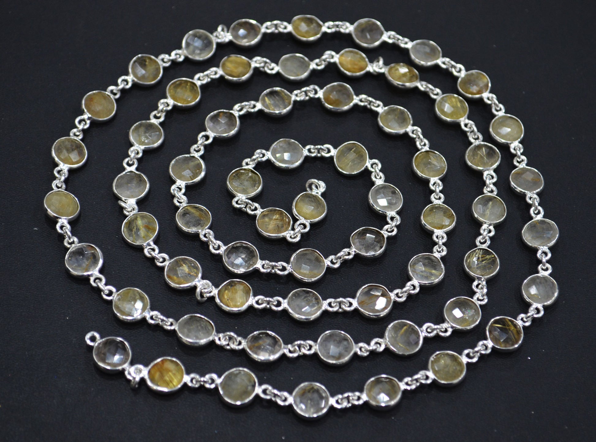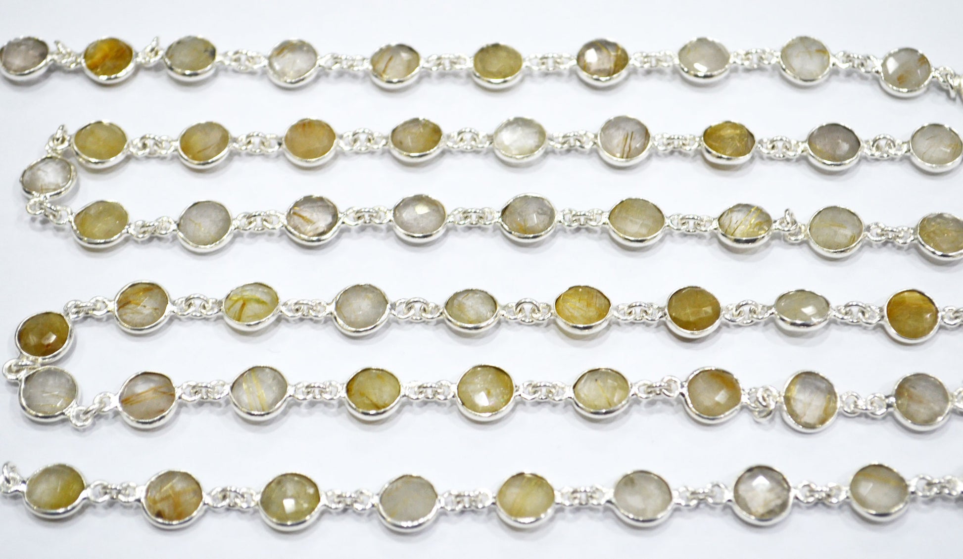 Golden Rutile Faceted Coin Shape Connector Chain , Golden Rutile Coin Shape Bezel Link Chain , 8 mm , RB-6591