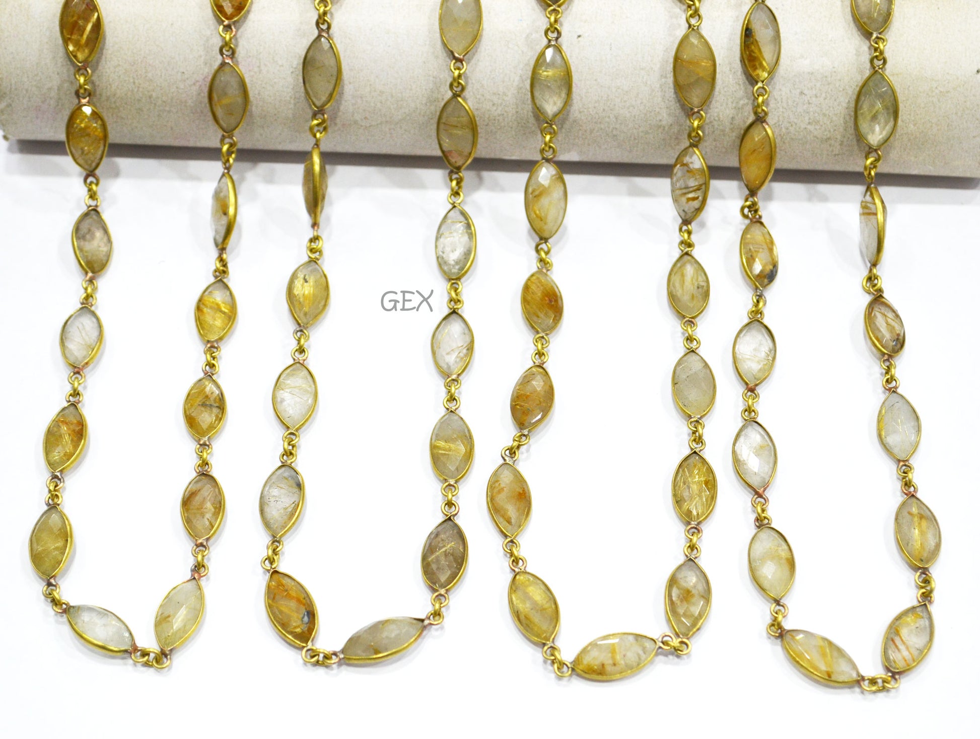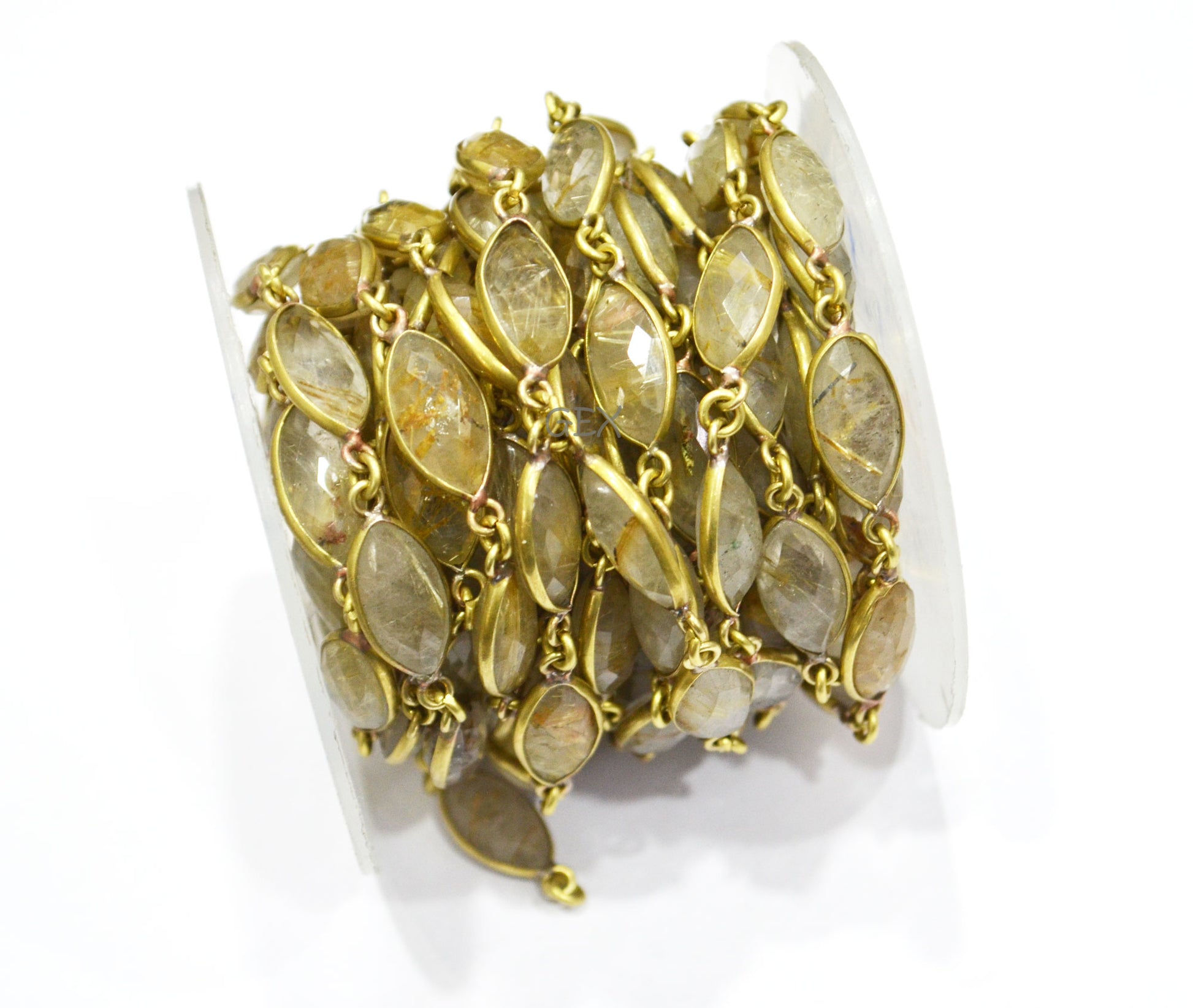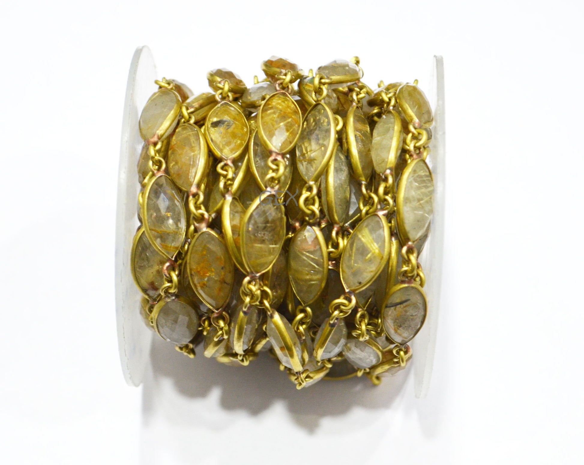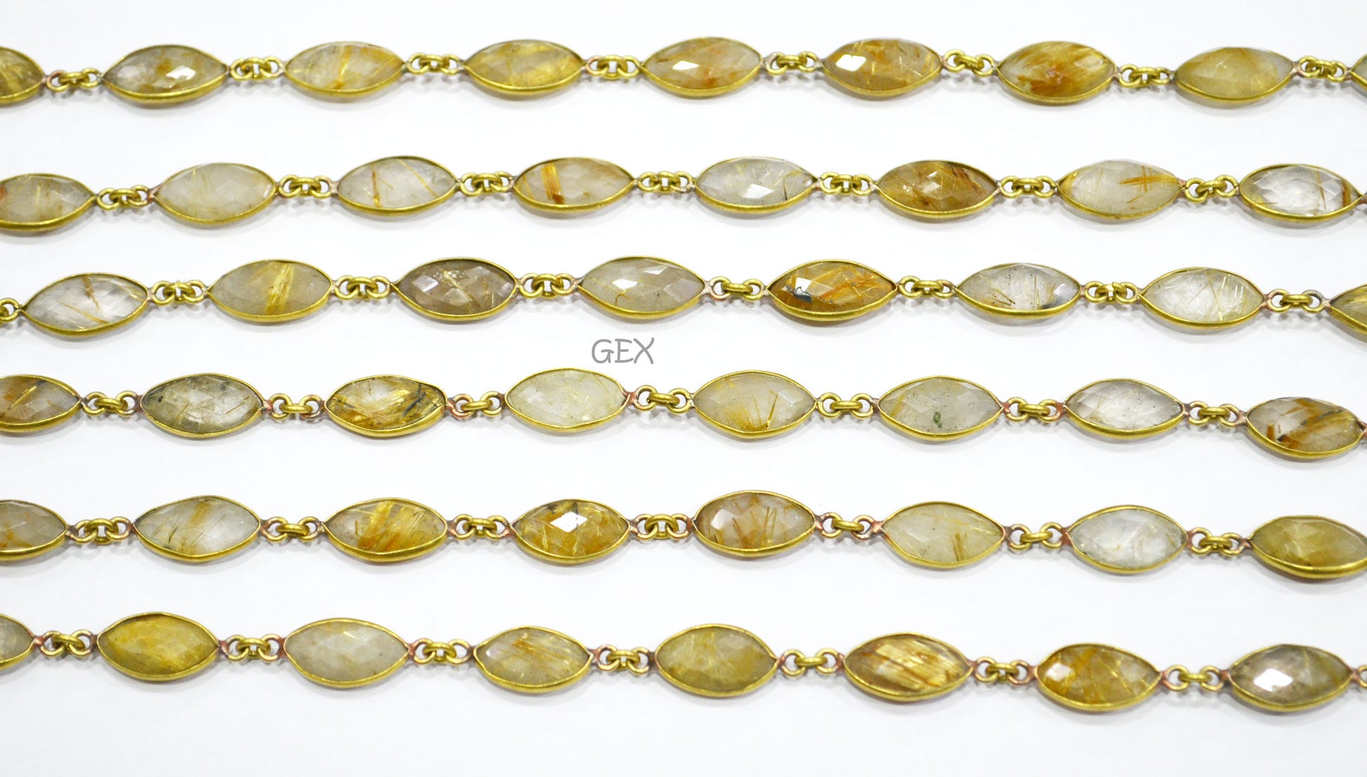 Golden Rutile Faceted Marquise Shape Connector Chain , Golden Rutile Marquise Shape Bezel Link Chain , 8x15 mm , RB-5936