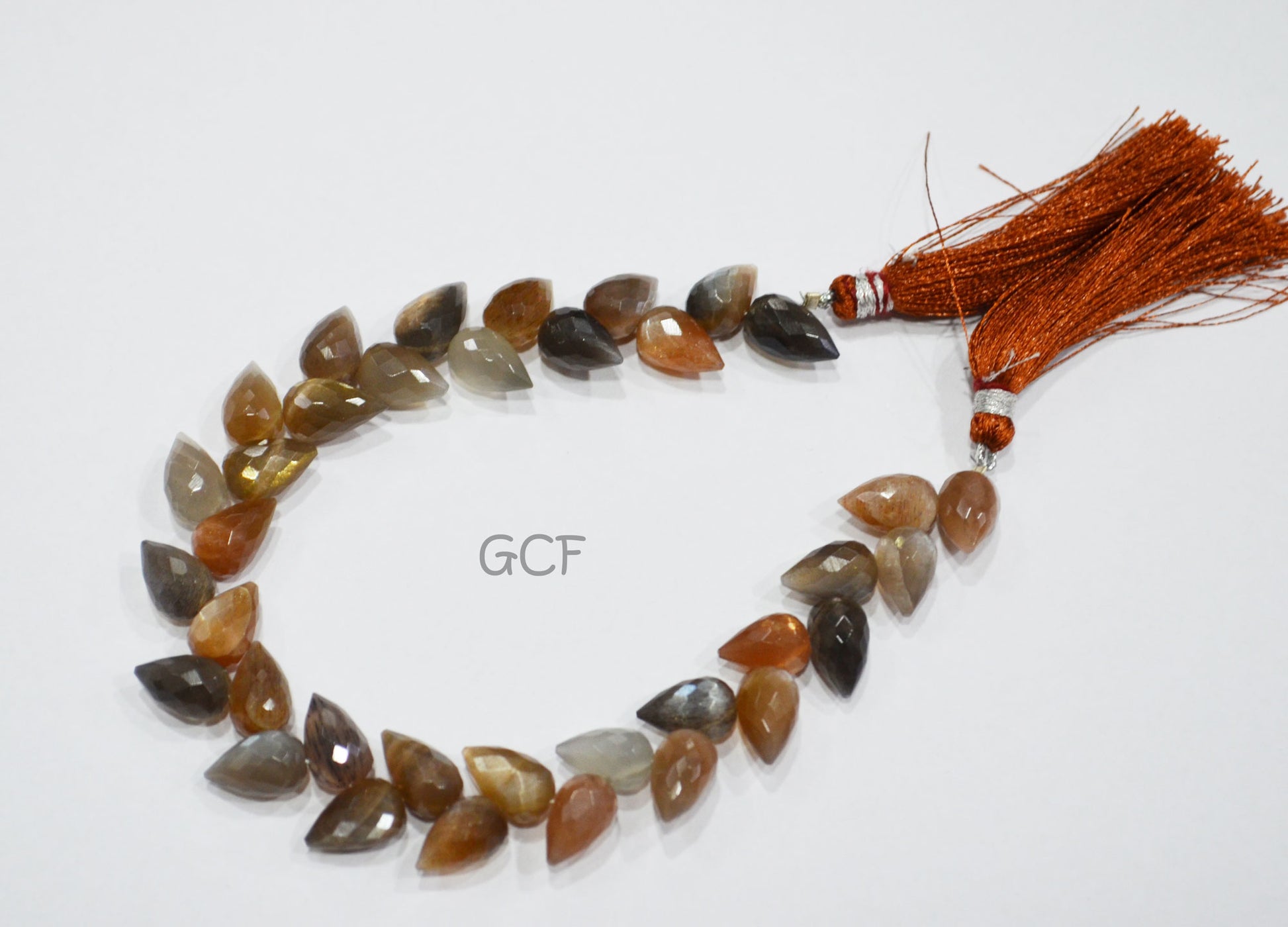 Golden Shine Moonstone Diagonal Drill Tear Drops Shape Beads , Golden Shine Moonstone Faceted Briolettes , 7.5 Inches , 7x10-7x11 mm , 31276